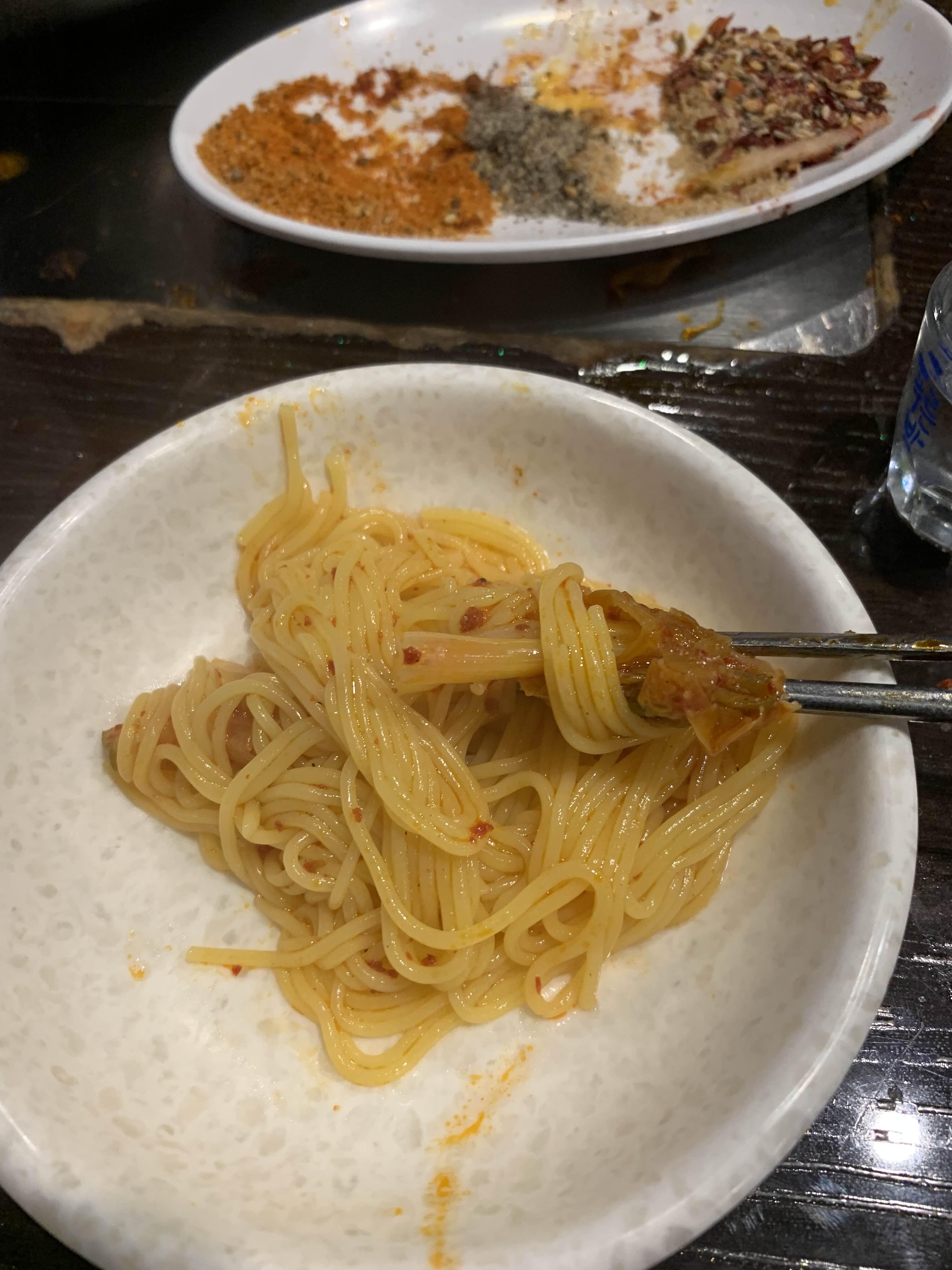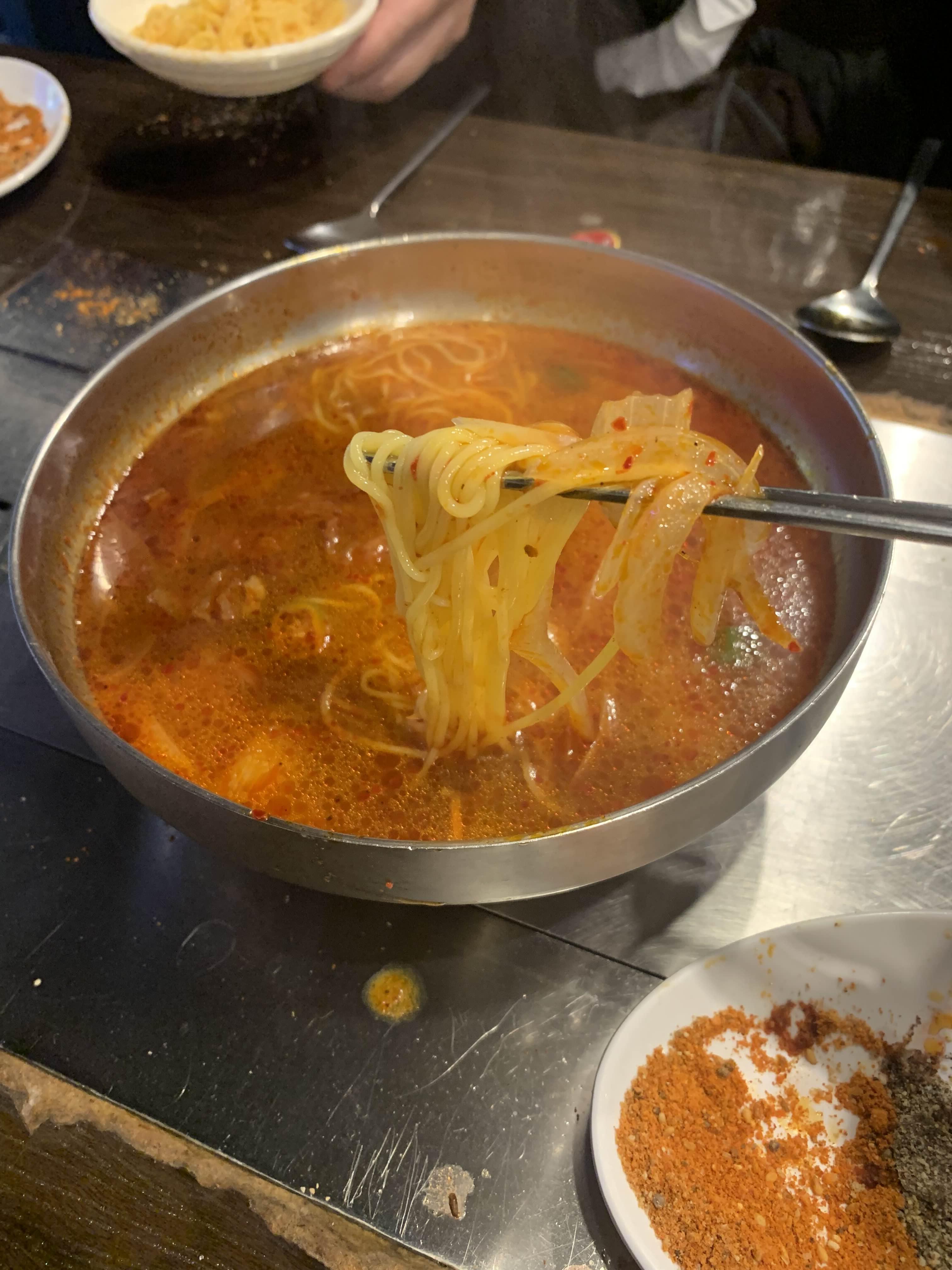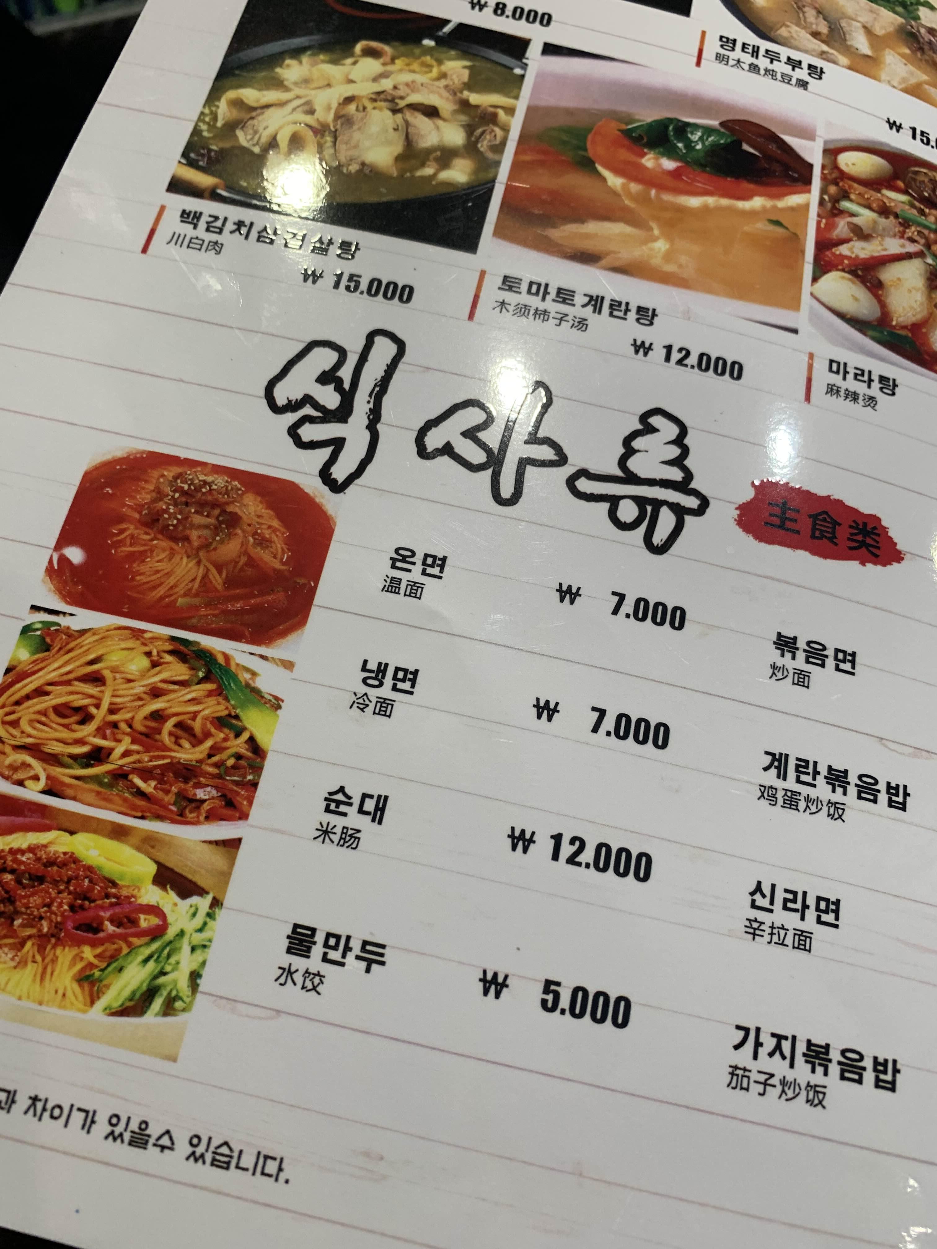 양꼬치 식당을 방문할 때 항상 아쉬운 점이 바로 국물이 없다는 점!!! 술 마실 때 항상 국물이 있어서 술 마시기 좋은데... 꼬치 전문점에는 기본으로 제공되는 국물이 없어.... 그래서 꼬치 전문점에 방문 시 국물!!! 온면을 주문합니다. 평소 온면을 자주 먹는데, 좋아하는 온면 스타일은 걸쭉한 온면인데... 맑은 국물의 온면이더군요. 국물은 칼칼하고, 매콤해서 나쁘지는 않더군요.