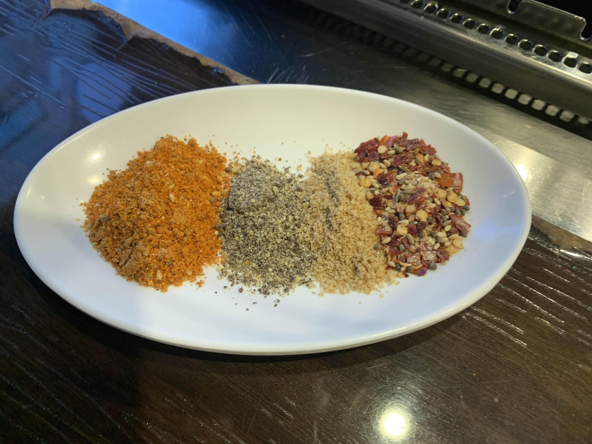 양갈비살 꼬치를 잘 구워서 맛보는데.... 상당히 쫄깃한 식감이 느껴지더군요. 꼬치 소스로 나온 4가지 향신료를 고루 찍어먹으니(특히 콩가루?) 친숙함과 담백함이 있어서 좋더군요.