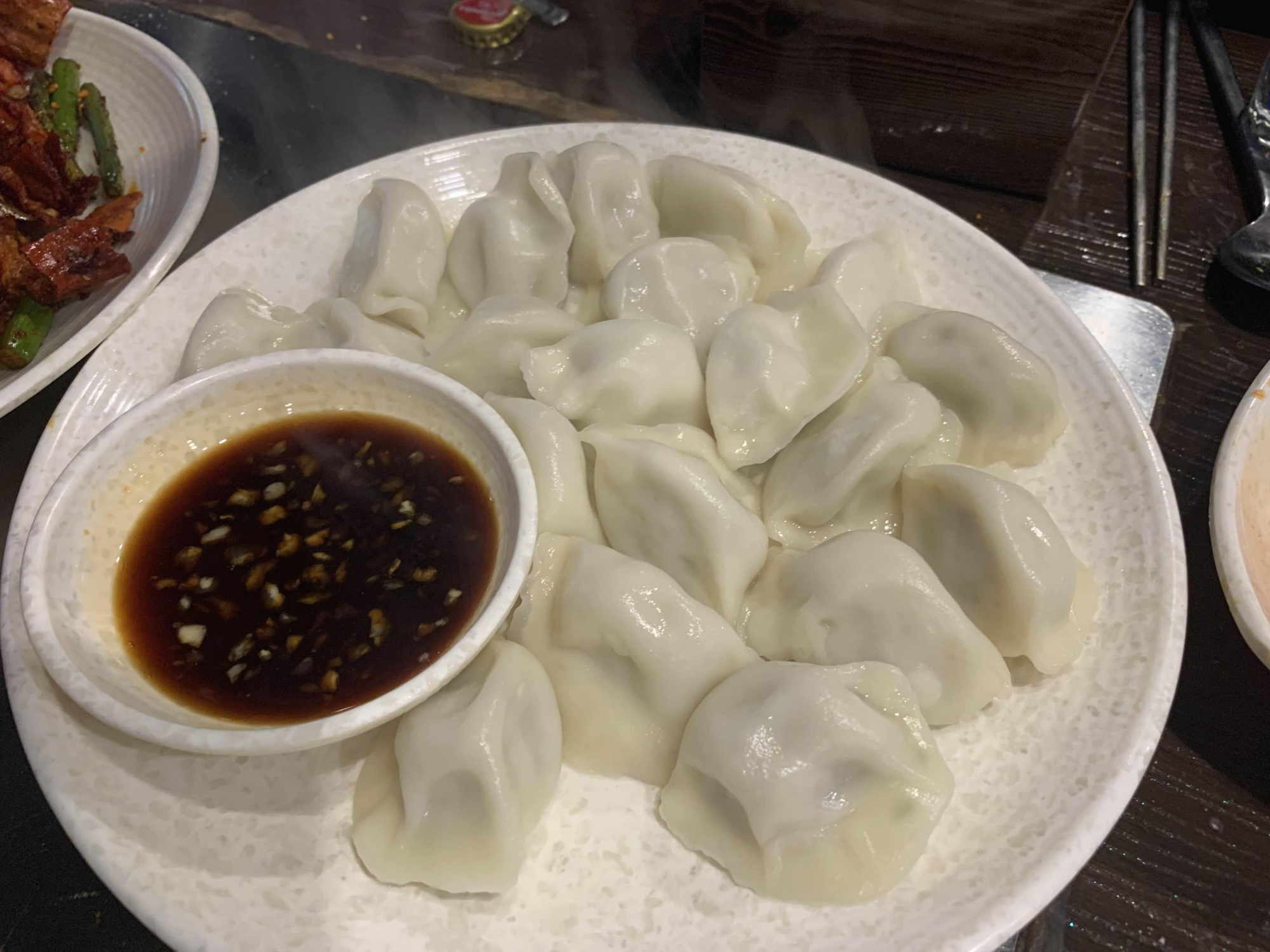 음식 주문을 많이 해서 그런지, 서비스로 만두를 주셨습니다. 만두 모양과 색감이 평소 먹어본 만주의 느낌이 아니더군요. 만두를 양념장에 찍어 한입 먹어보니!!! 향신료 향이 확 느껴지더군요. 그 향신료 향이 나쁘게 느껴지는 게 아니라 계속 입맛을 당겨주더군요.ㅎㅎ