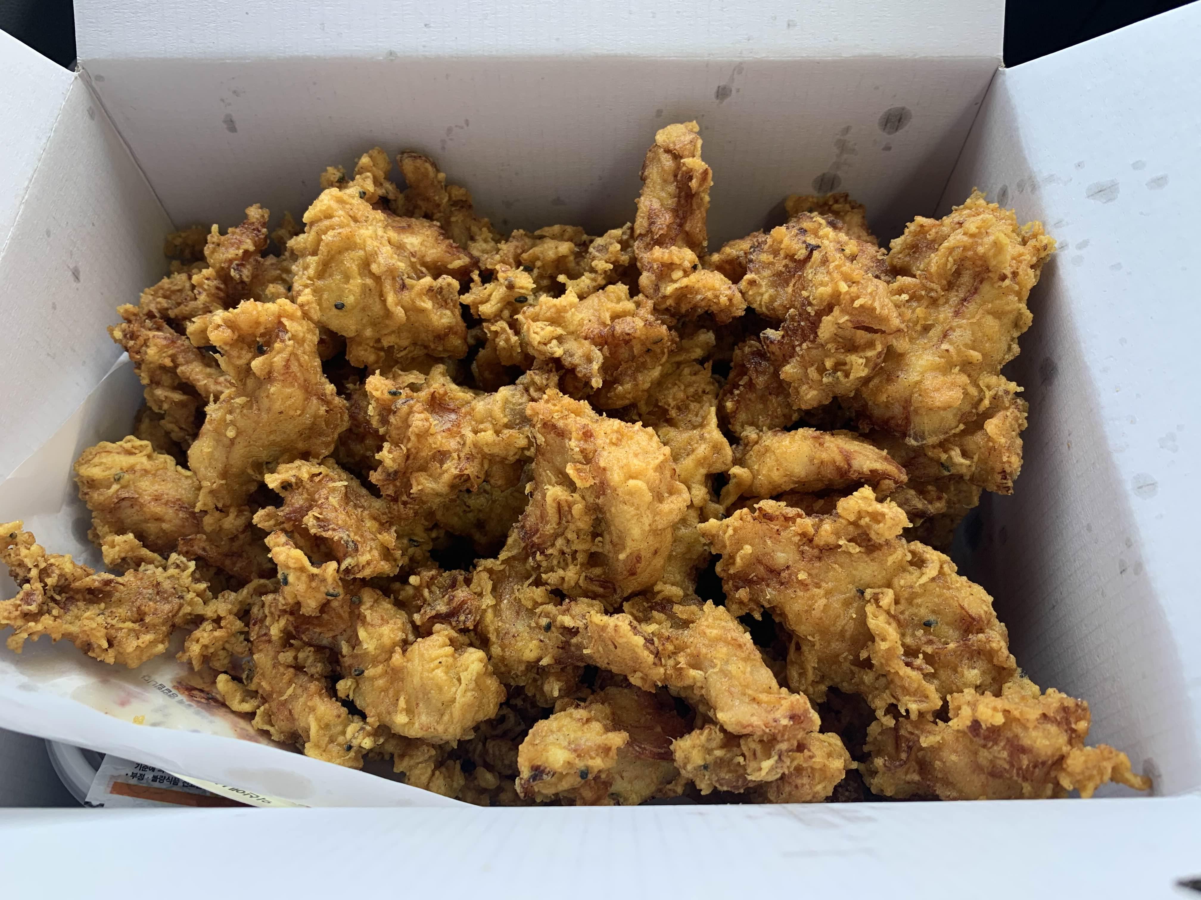 아이들과 무난하게 먹을 수 있는 순살치킨입니다. 가격 대비 양이 많습니다. 양념장은 강하지 않고, 옛날 생각나게 하는 맛이었습니다.