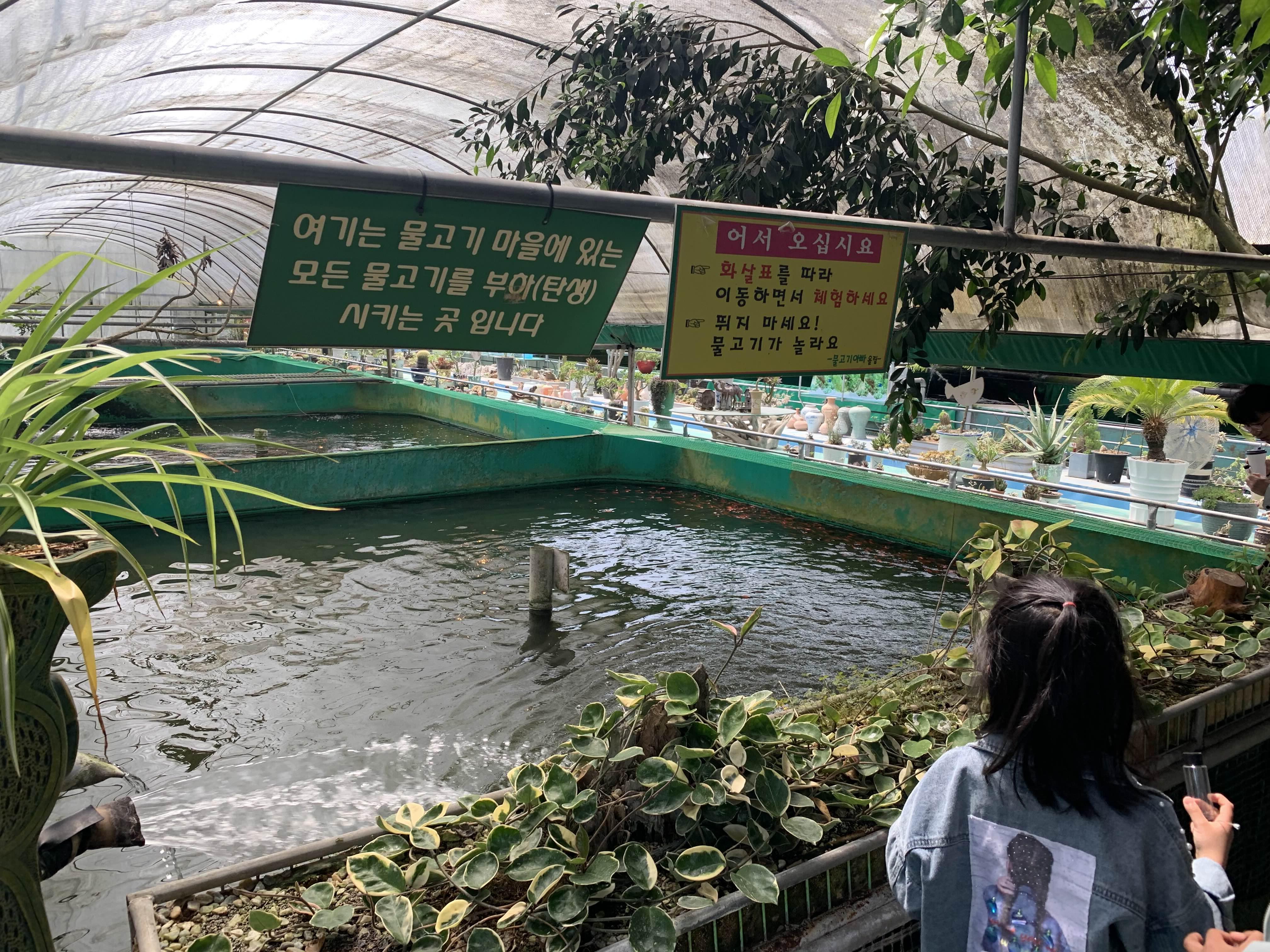 물고기 마을 입구에는 물고기 외 동물을 구경할 수 있는 체험공간도 마련되어 있습니다. 동물 구경은 마지막 코스로 하고 물고기 먹이 주는 중앙 지역으로 향했습니다.