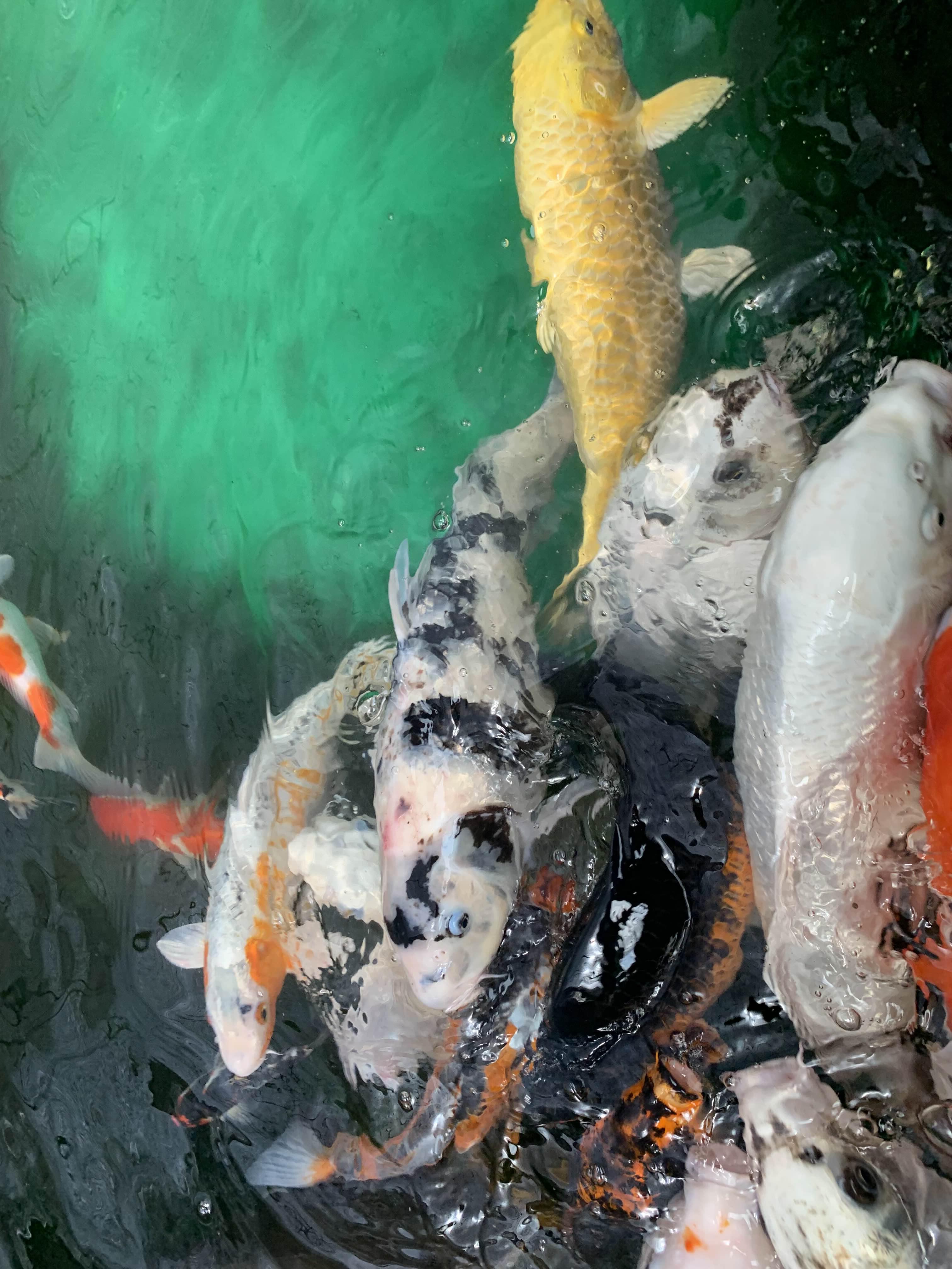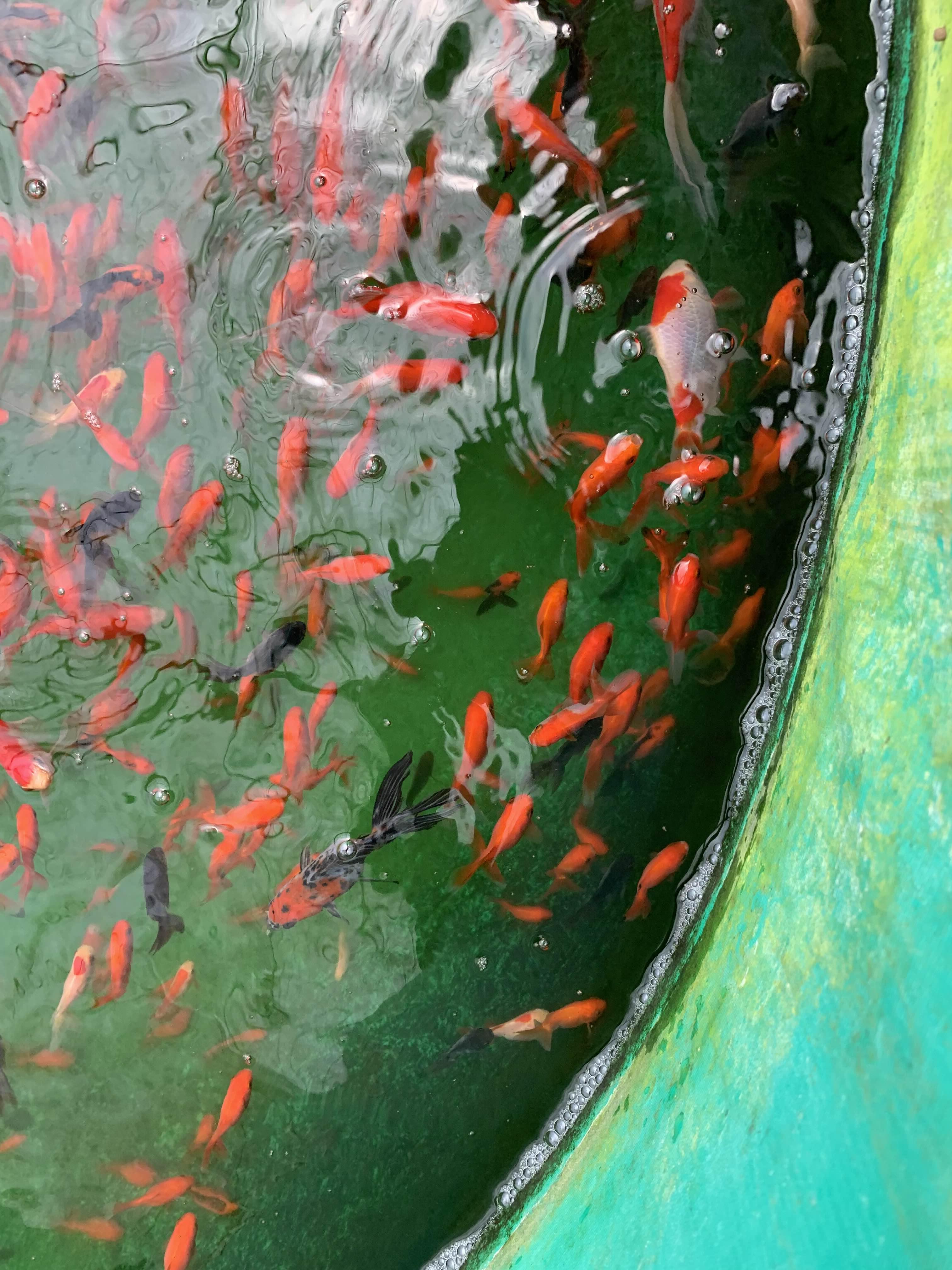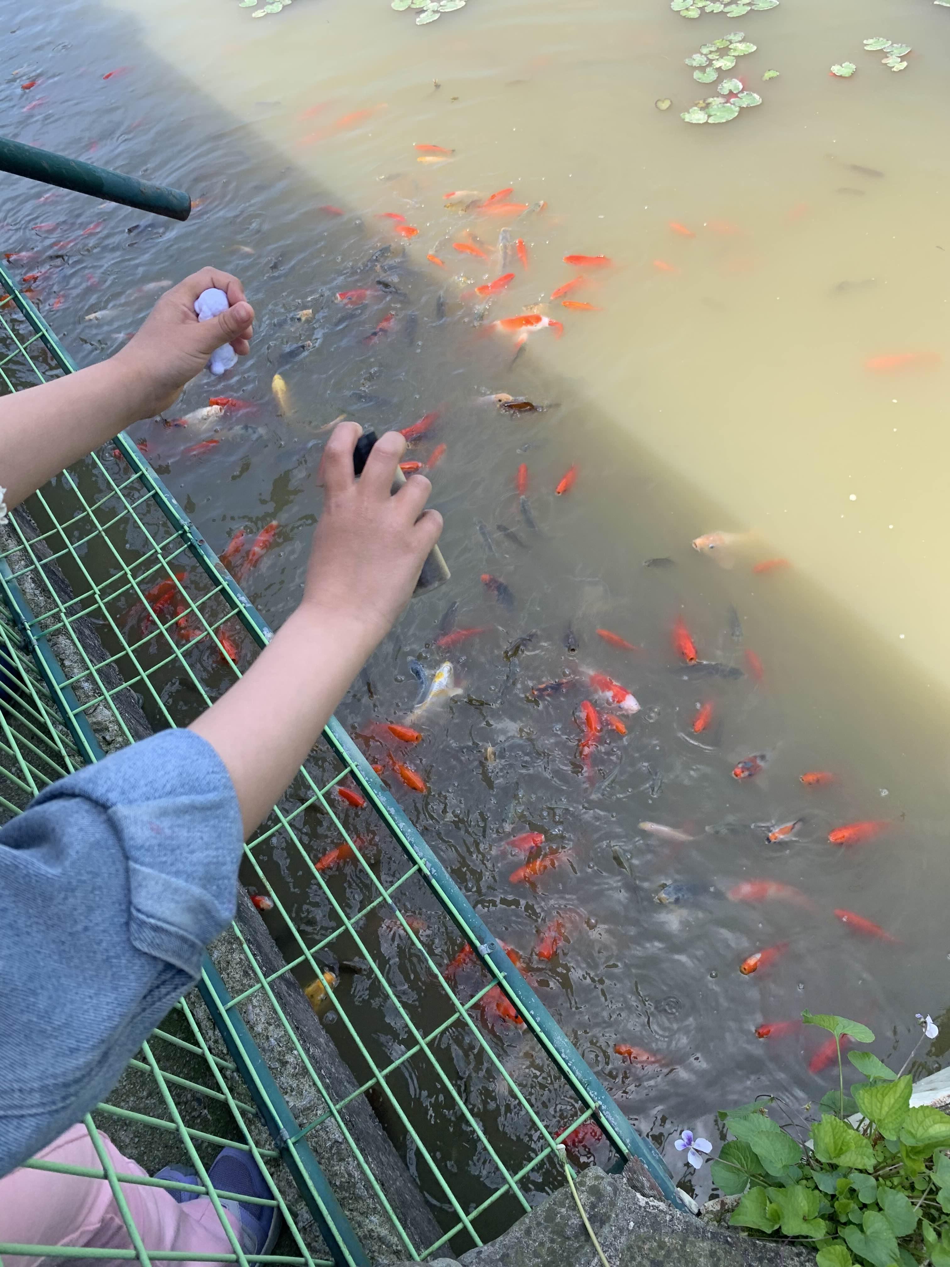 먹이를 뿌리자마자, 금붕어들이 우르르!!! 너무 우르르 몰려들어서, 좀 징그럽더군요.ㅎㅎ