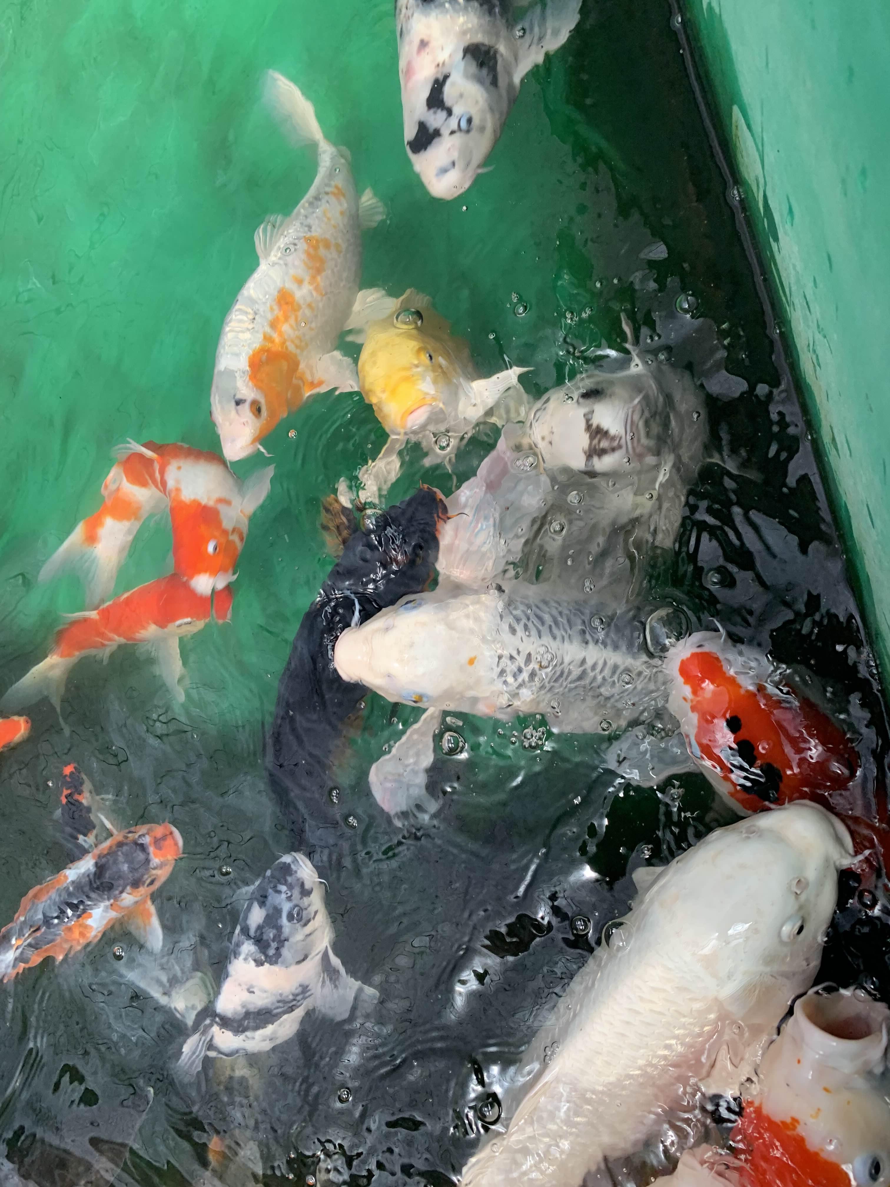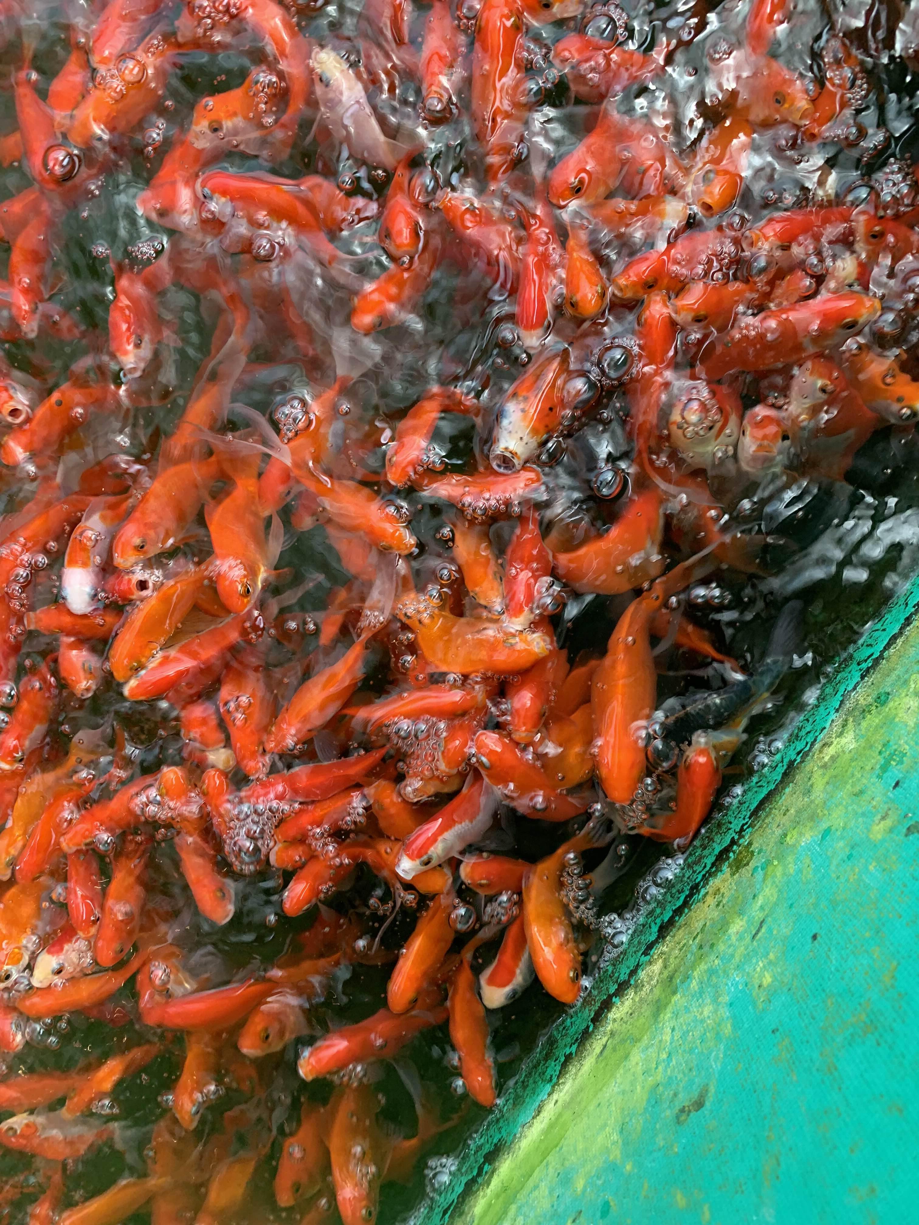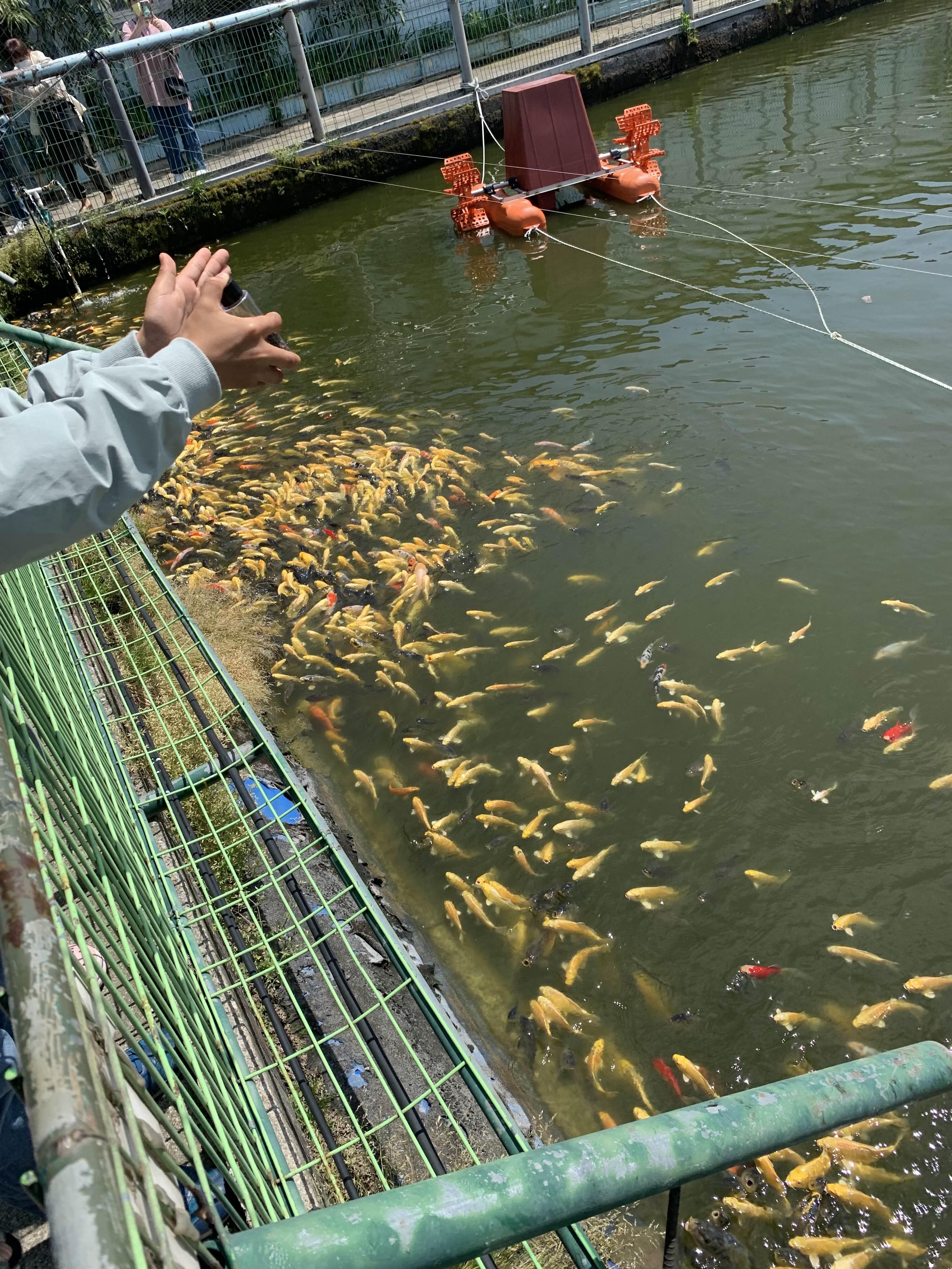 먹이를 뿌리자마자, 금붕어들이 우르르!!! 너무 우르르 몰려들어서, 좀 징그럽더군요.ㅎㅎ