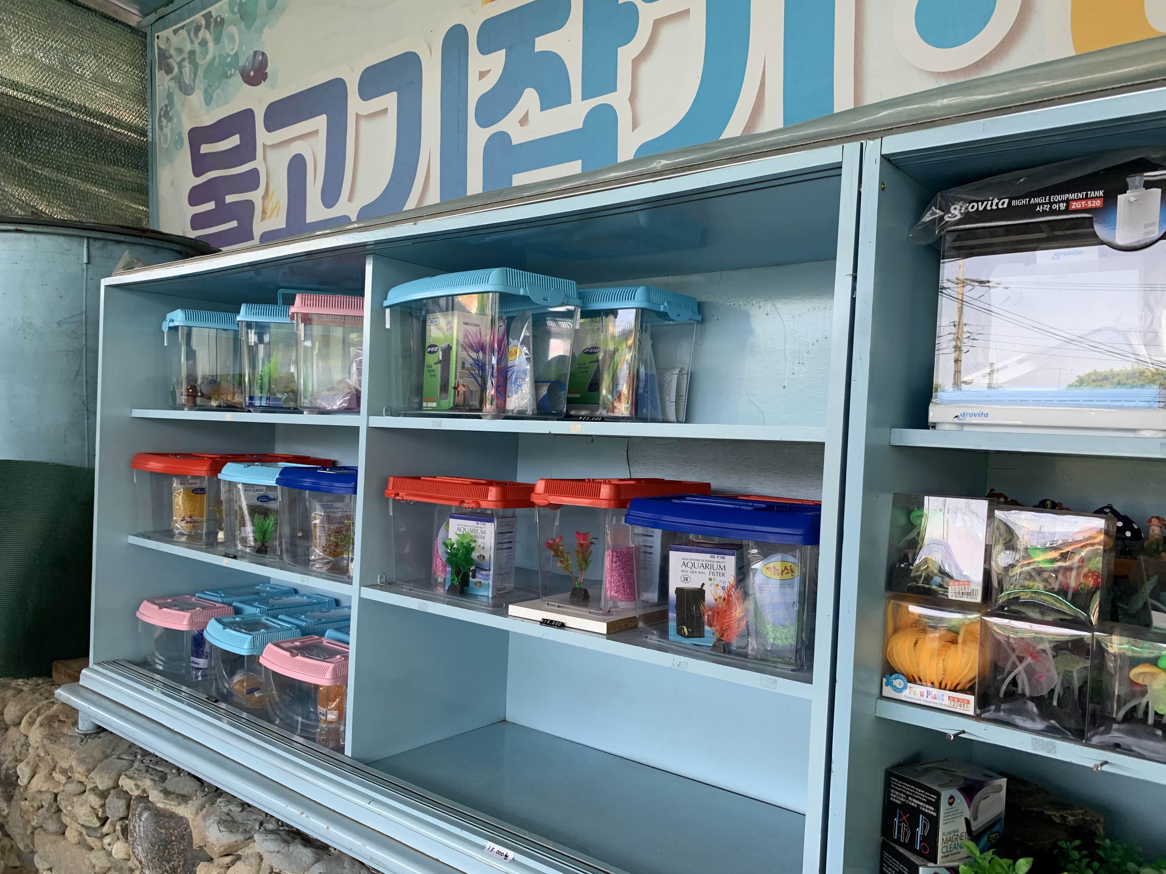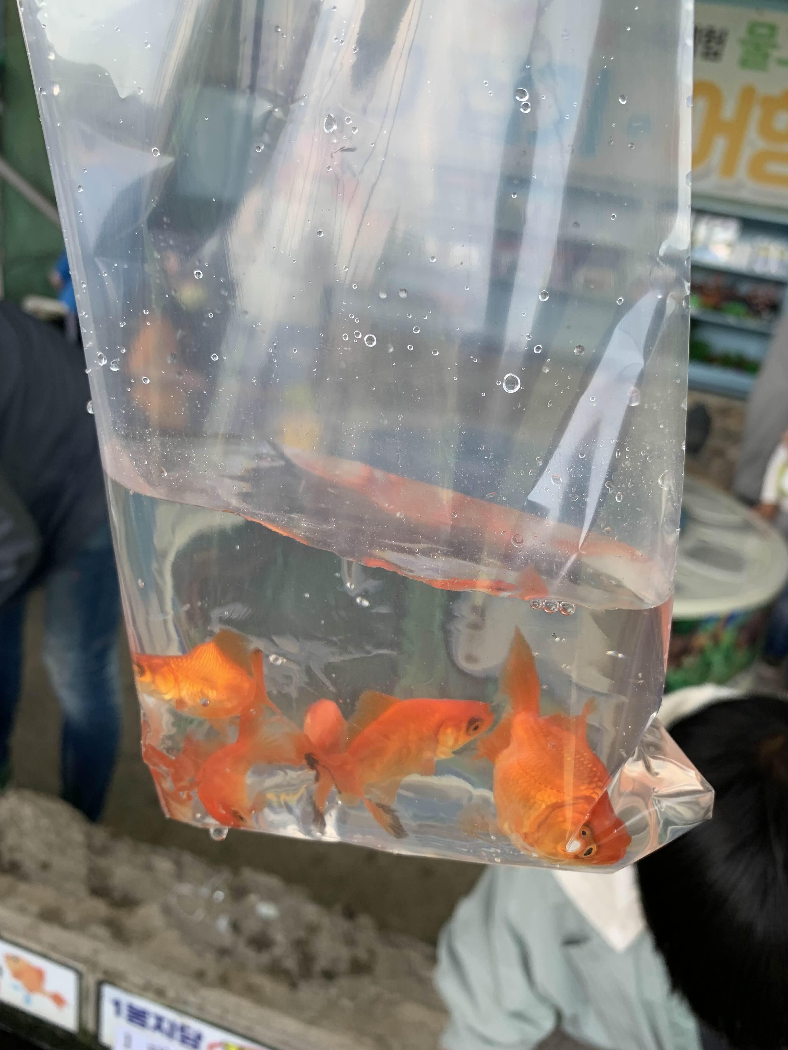 물고기 잡기 체험 한편에서는 수족관 판매!! 집에 수족관은 아니지만, 투명 통과 산소공급 장치가 있어서 구입하지는 않았네요.