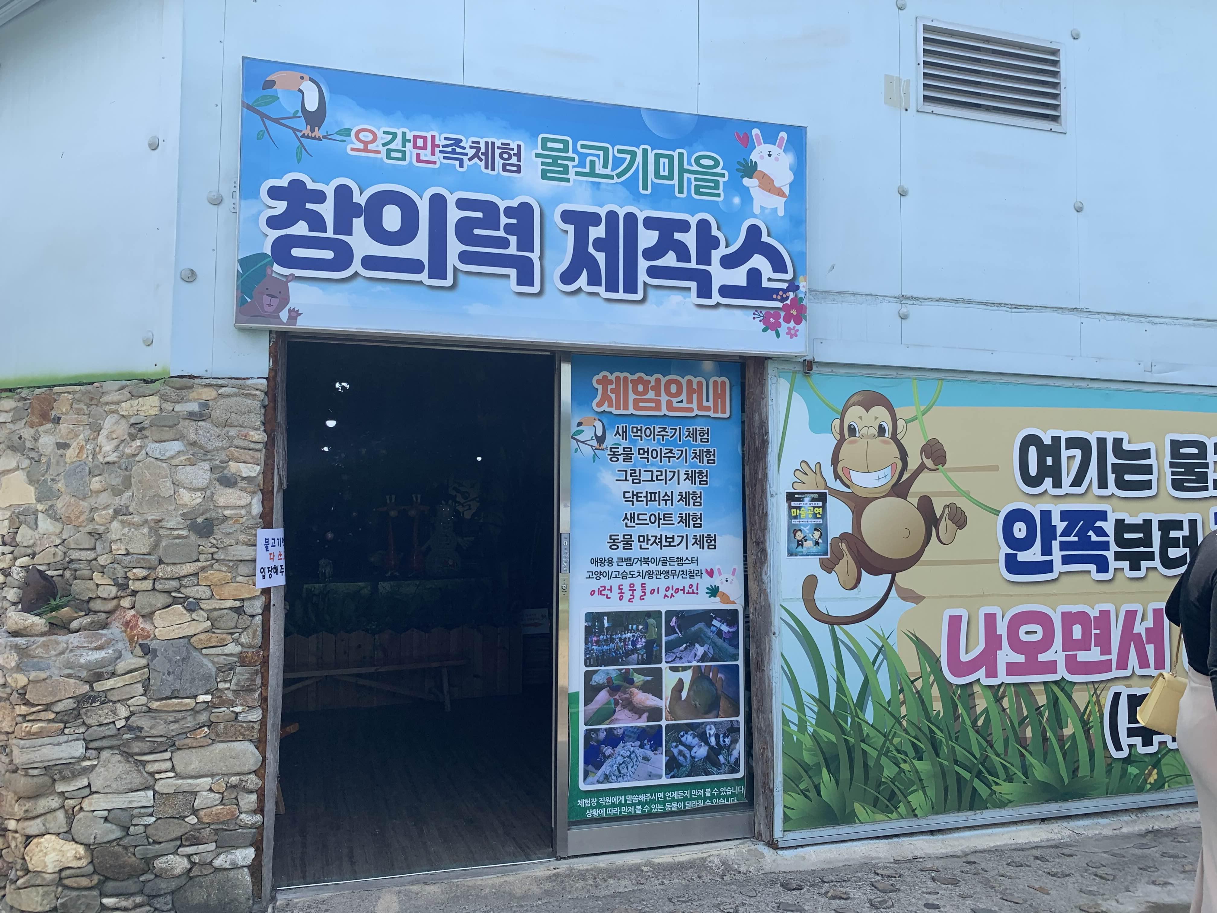 물고기 마을 입구에는 물고기 외 동물을 구경할 수 있는 체험공간도 마련되어 있습니다. 동물 구경은 마지막 코스로 하고 물고기 먹이 주는 중앙 지역으로 향했습니다.