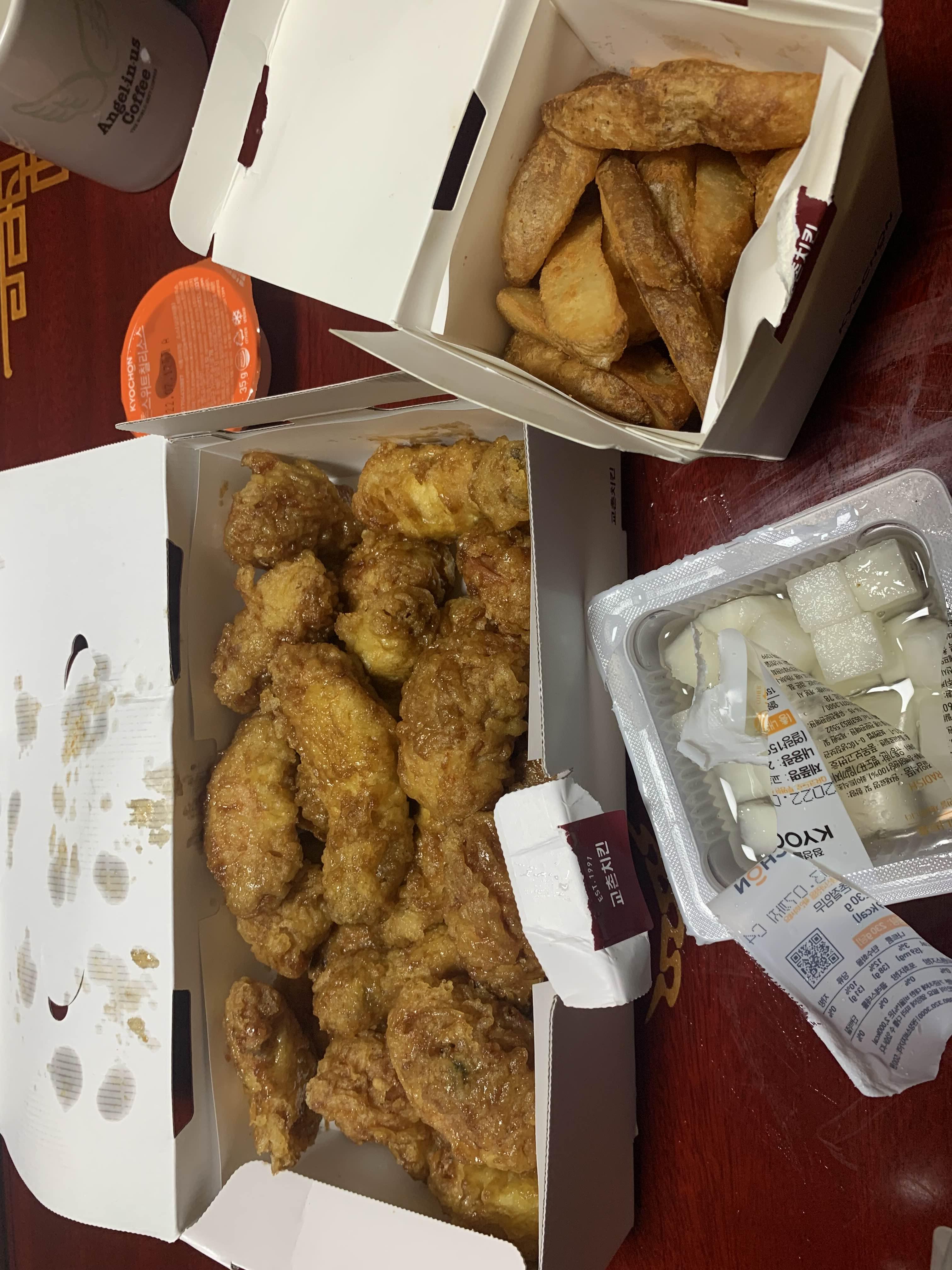평소 교촌치킨을 자주 먹어보지 않아서.... 오랜만에 맛보는 교촌치킨입니다. 대략 10년 전 교촌치킨 간장? 맛을 자주 맛보았는데.... 최근에 다양한 프랜차이즈와 시장 통닭에 푹 빠져서, 오랜만에 맛보게 되었네요.ㅎㅎ