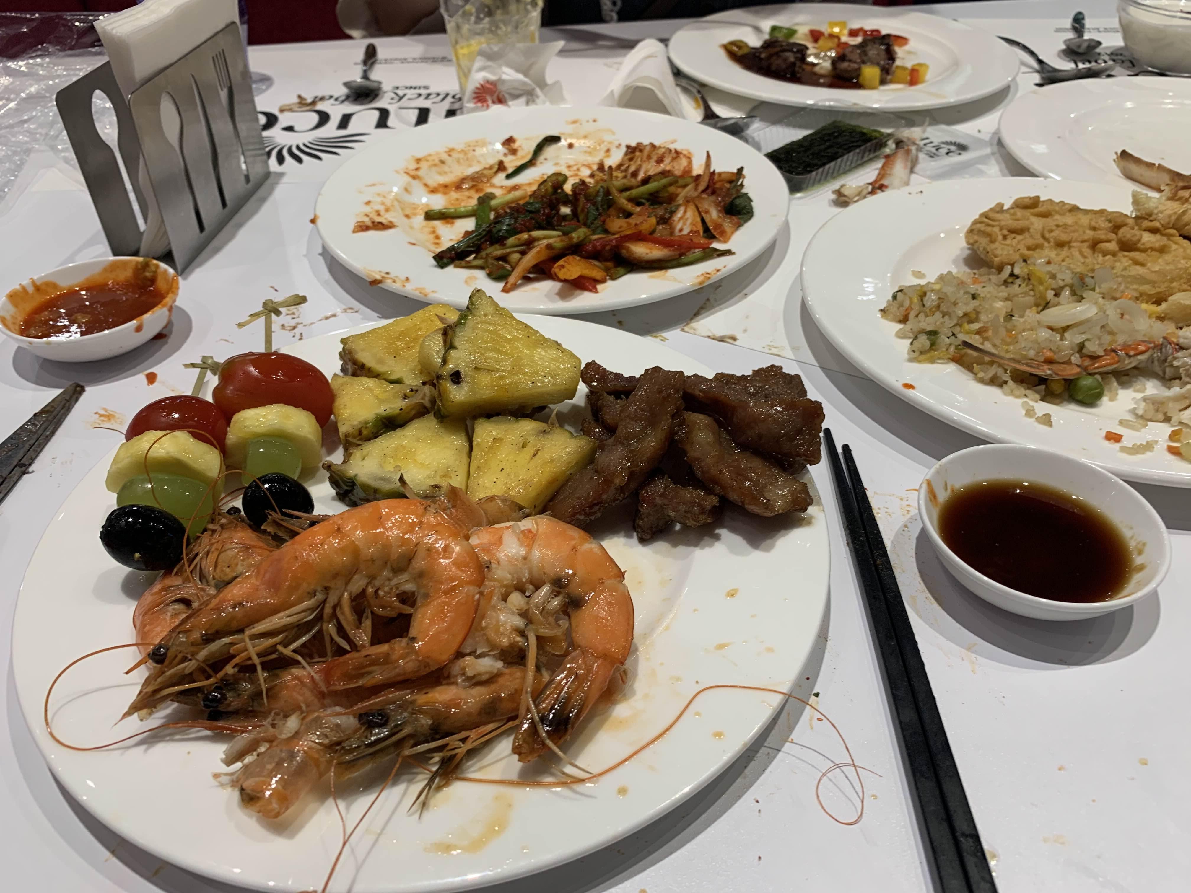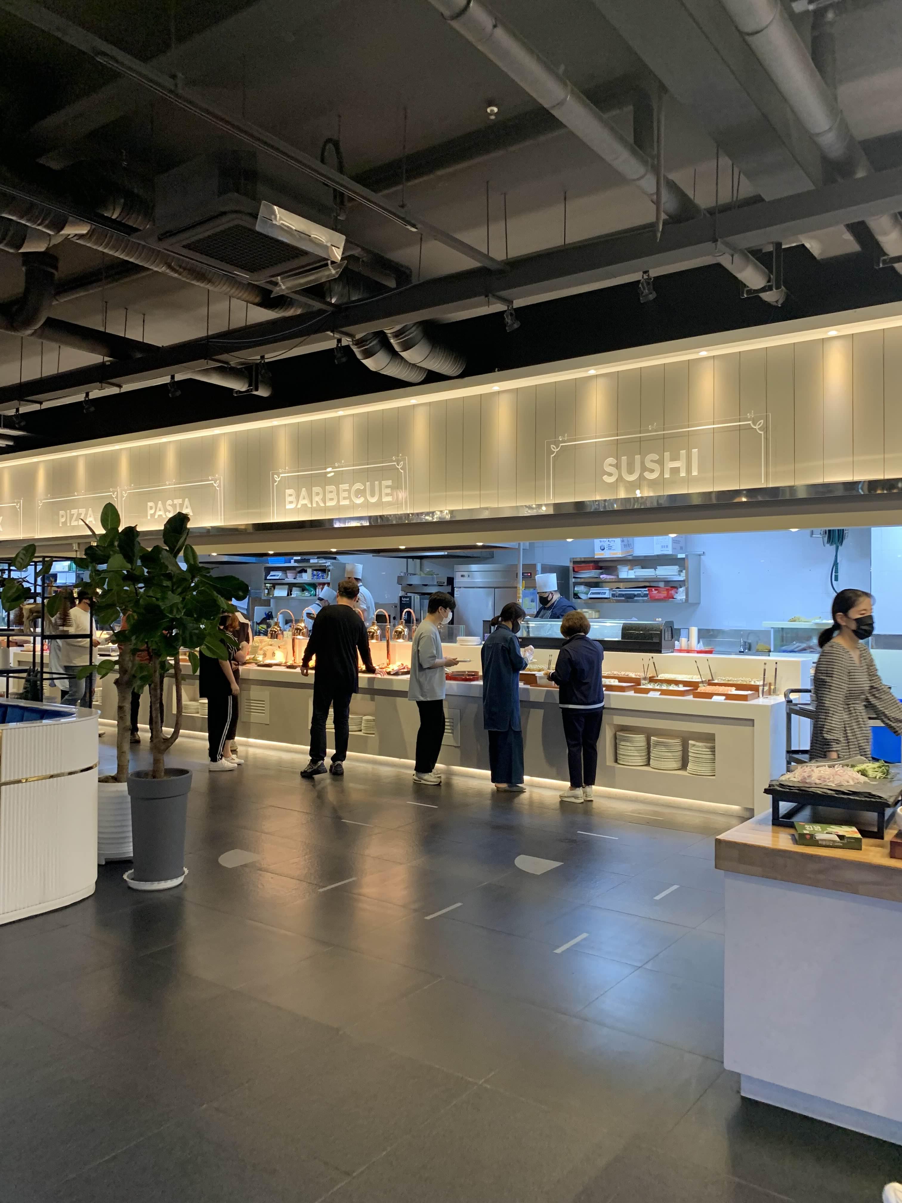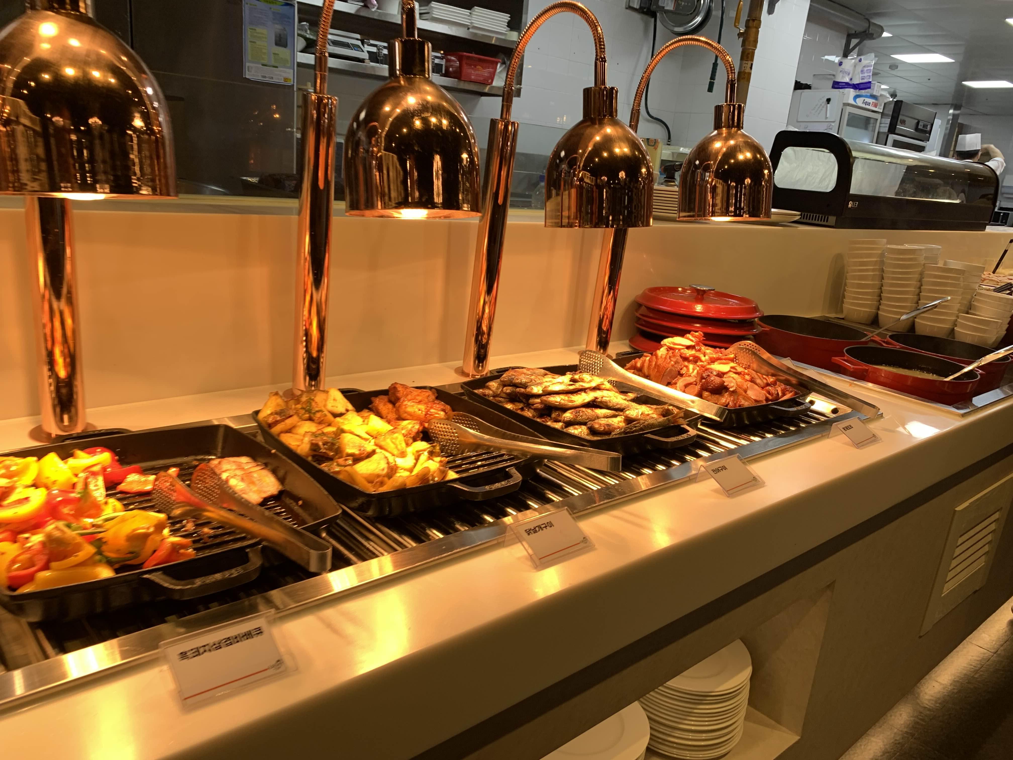 준비된 음식을 가져다 먹기도 하지만, 음식을 주문해서 먹는 코스로 스테이크, 짬뽕, 파스타는 주문하면 나오는 스타일입니다. 그중 스테이크는 주문이라기보다... 대기줄에서 기다렸다, 음식이 나오면 가져가는 스타일!! 다른 사람들 입맛에도 스테이크가 맛있었나 봅니다.