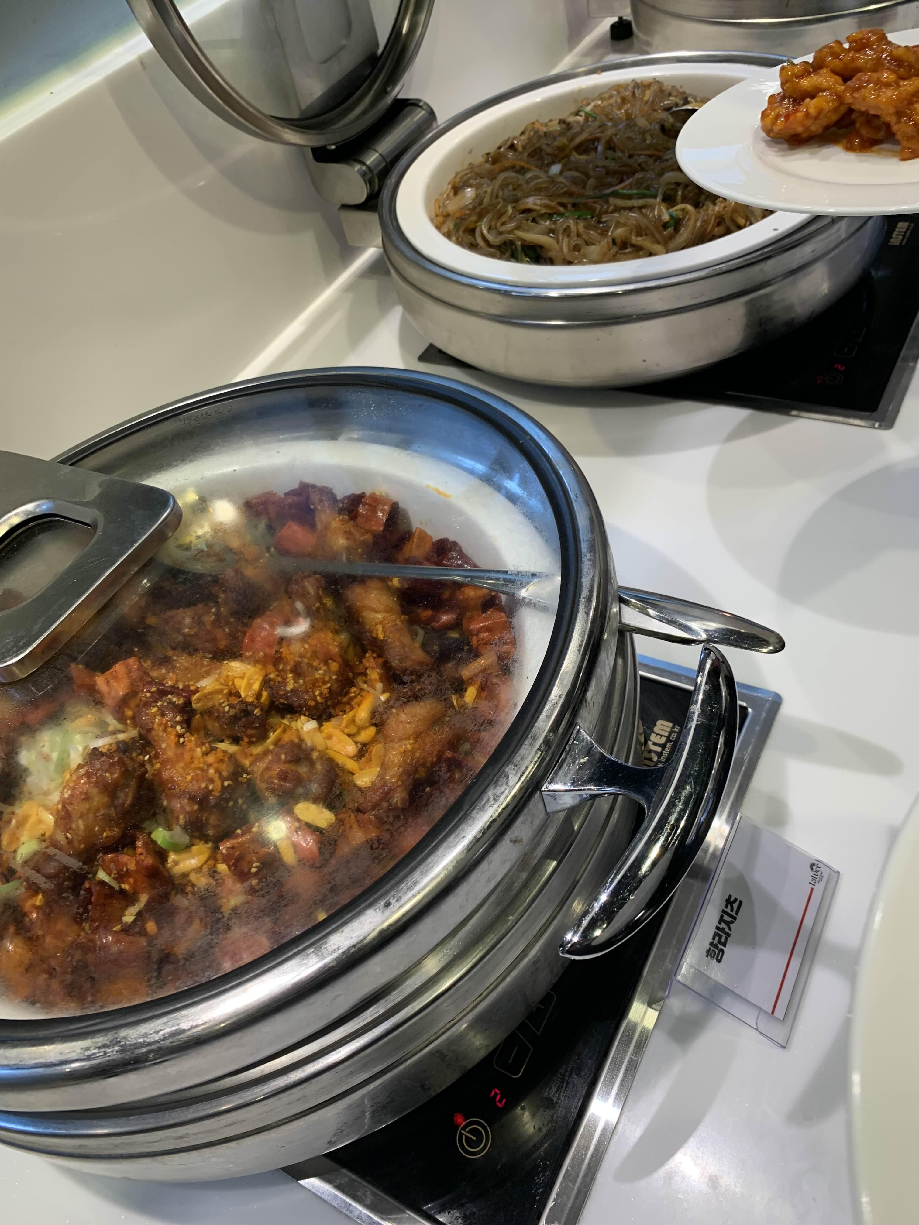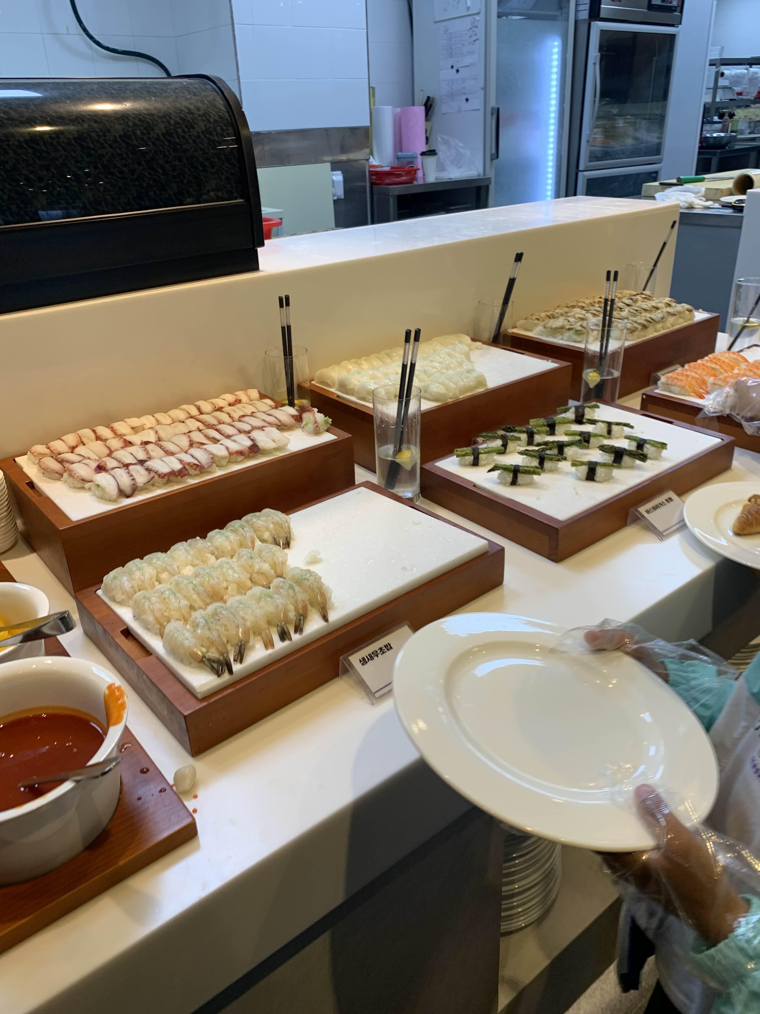 음식을 줄었지만, 딱 먹을만한 음식으로 준비되어 있더군요. 음식을 먹기 전!!! 세팅이 필요하겠죠. 뷔페식당에 방문하면, 기본 세팅으로 김치 종류를 세팅해 줍니다. 그리고, 그 반찬을 가져와서 맛보아야겠죠?^^
