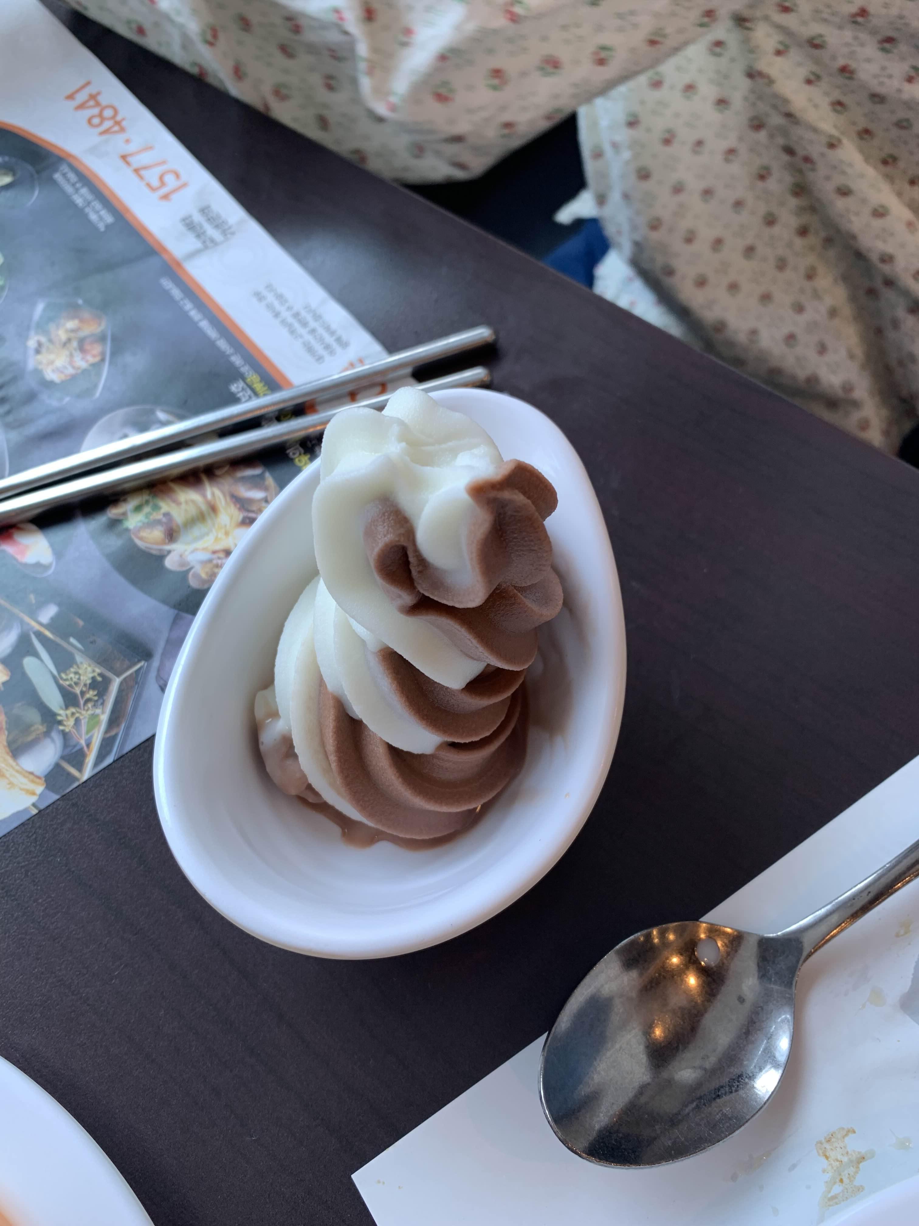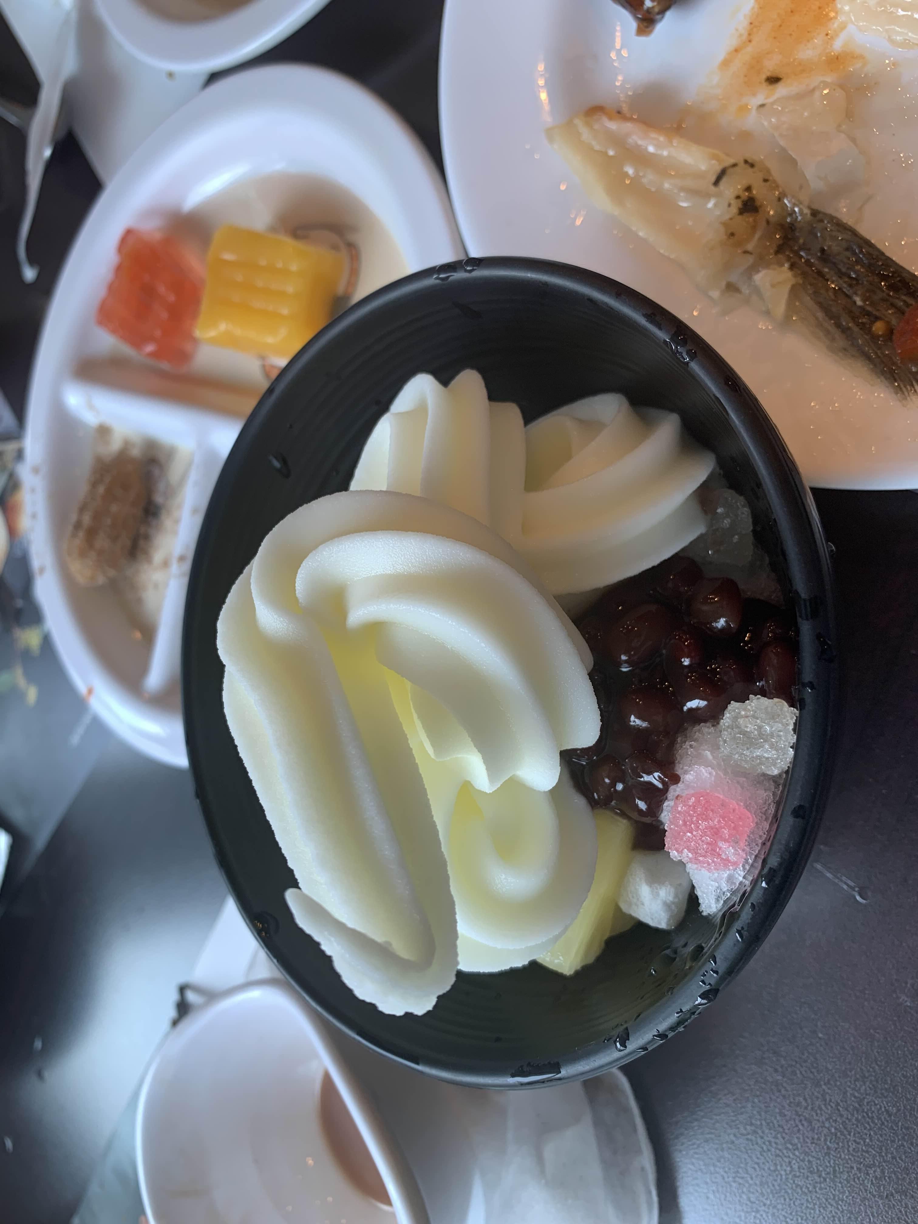 다시 후식으로 케이크와 팥빙수로 입을 개운하게 만들어 주었습니다.
