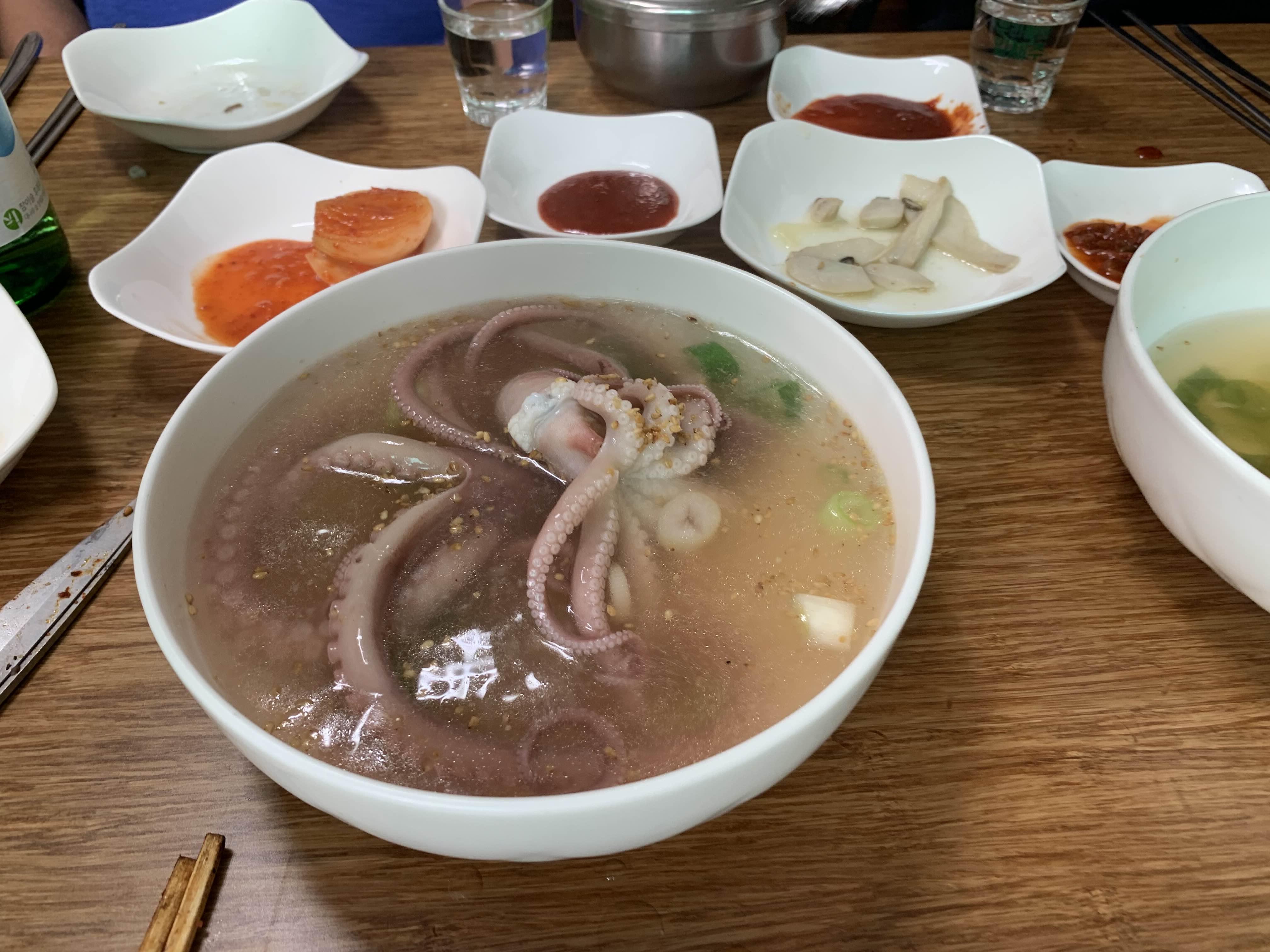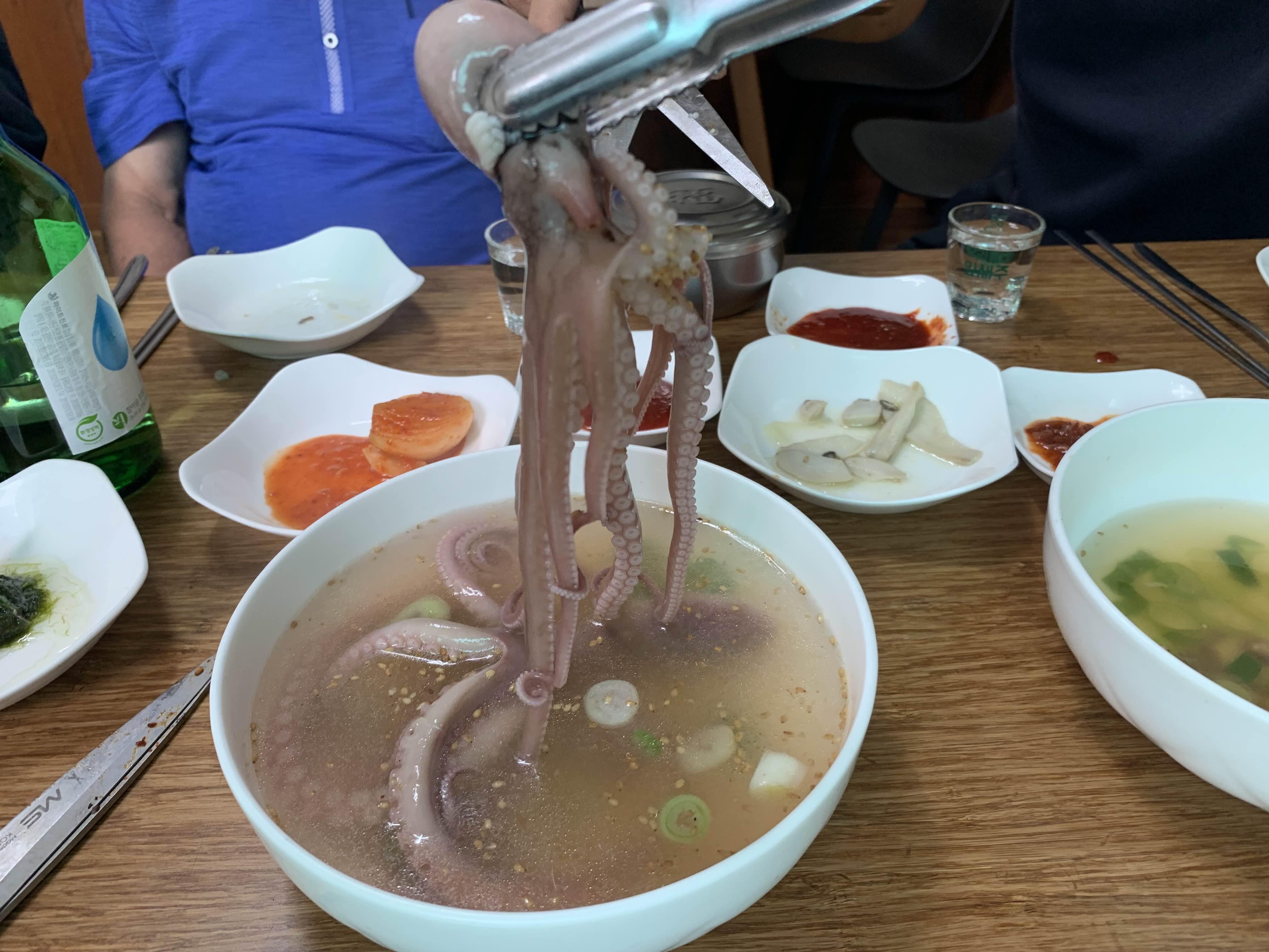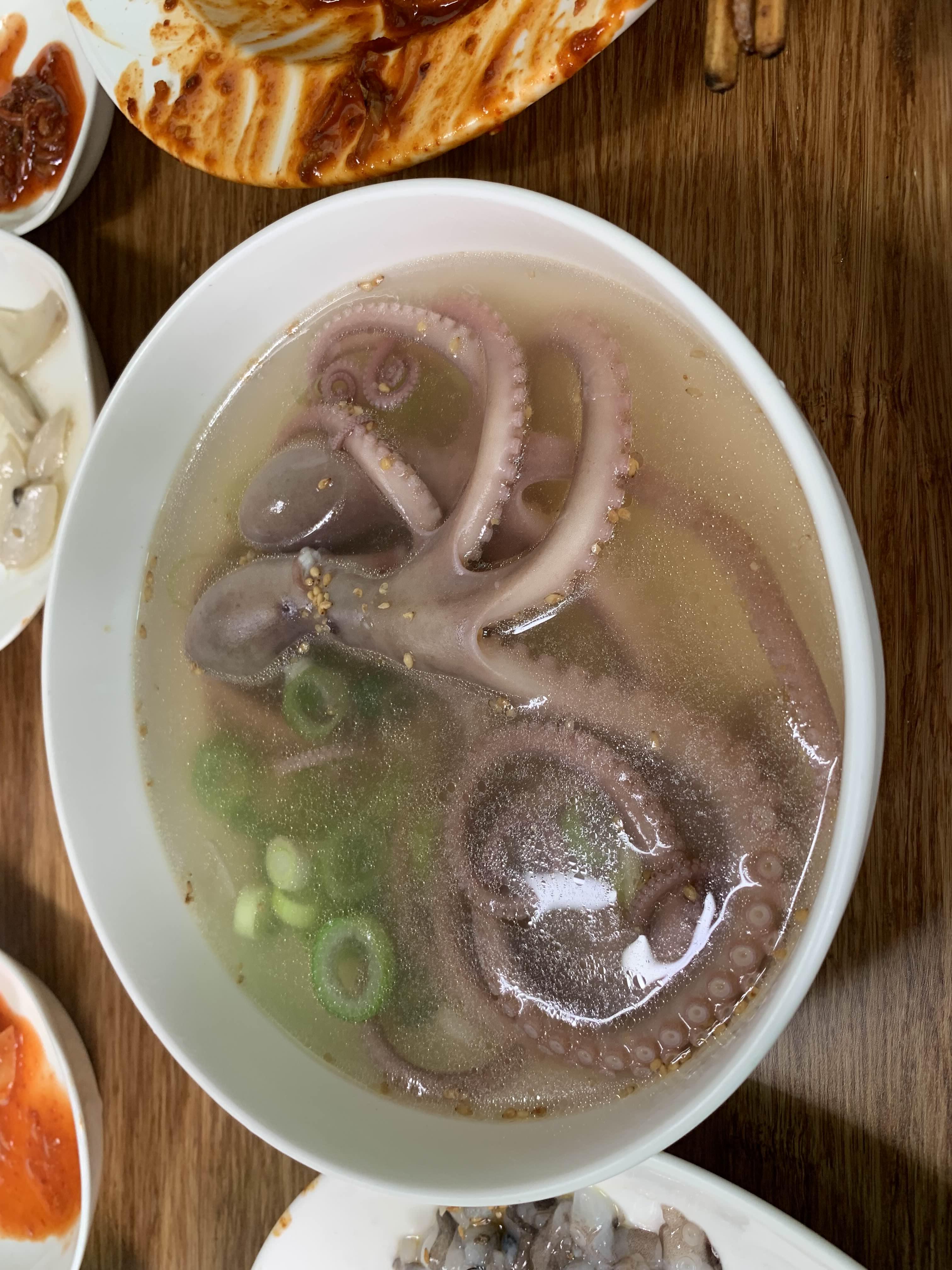 마지막 음식으로 연포탕! 산 낙지, 낙지구이, 낙지볶음..... 보다 연포탕이 역시!!! 국물이 있어 술 마시기에는 최고더군요. 산 낙지나 구이 또는 볶음을 주문하면 기본으로 나오는 국물이 있으면 좋겠는데... 국물이 없으니 술 마시기에 조합이 안 좋았는데, 역시 국물인 연포탕이 나오니 완벽한 조합이 되더군요.
