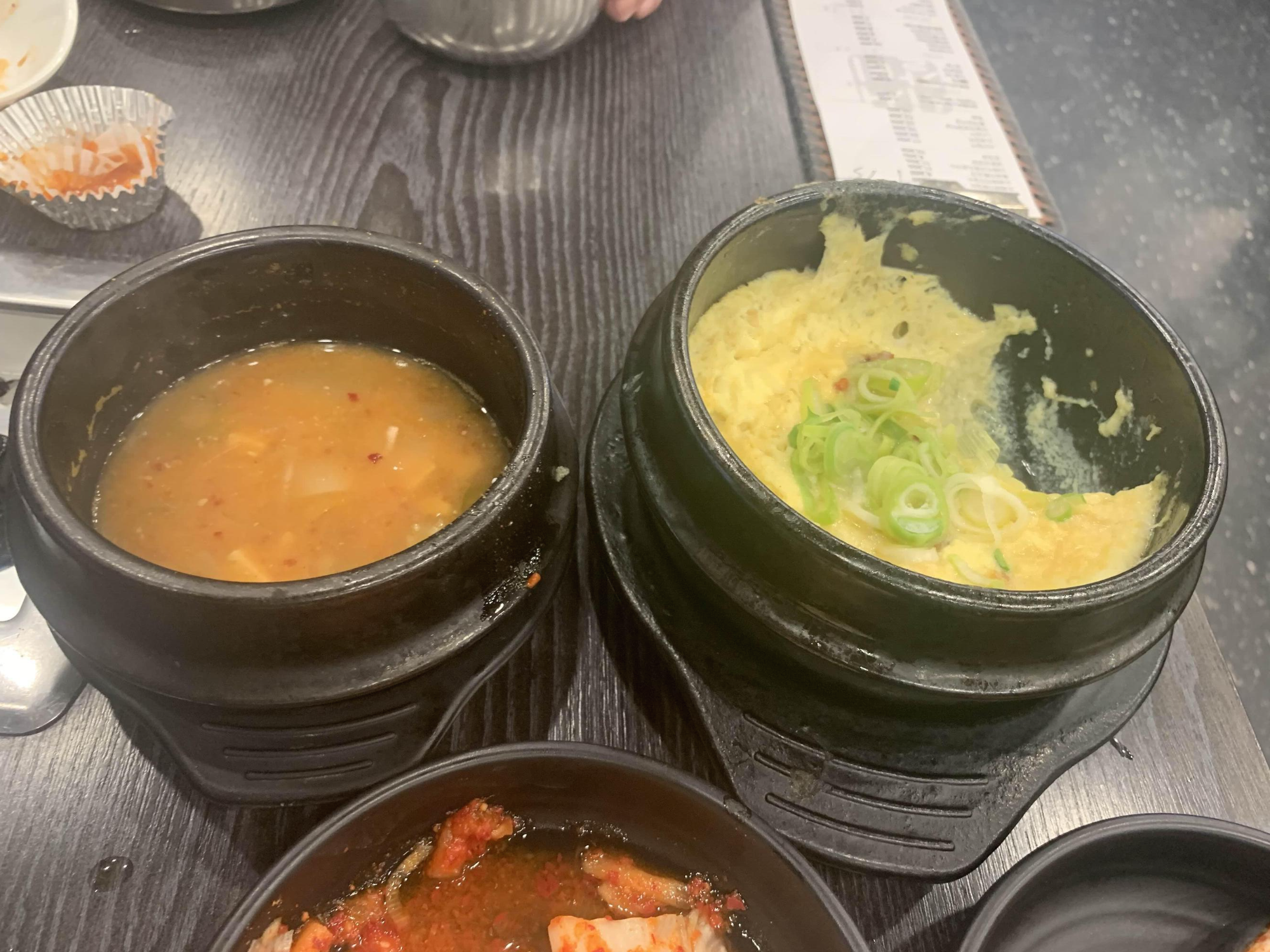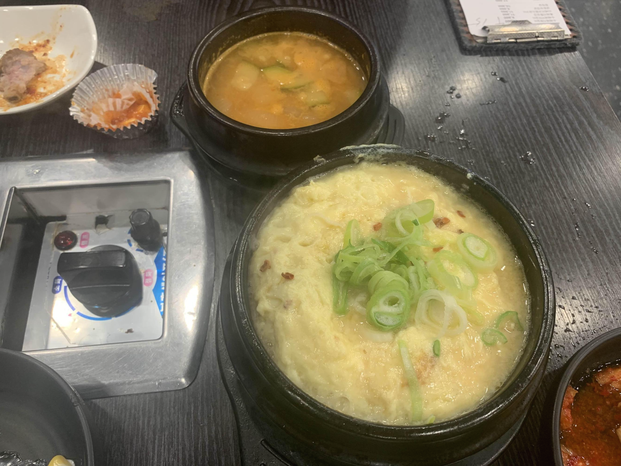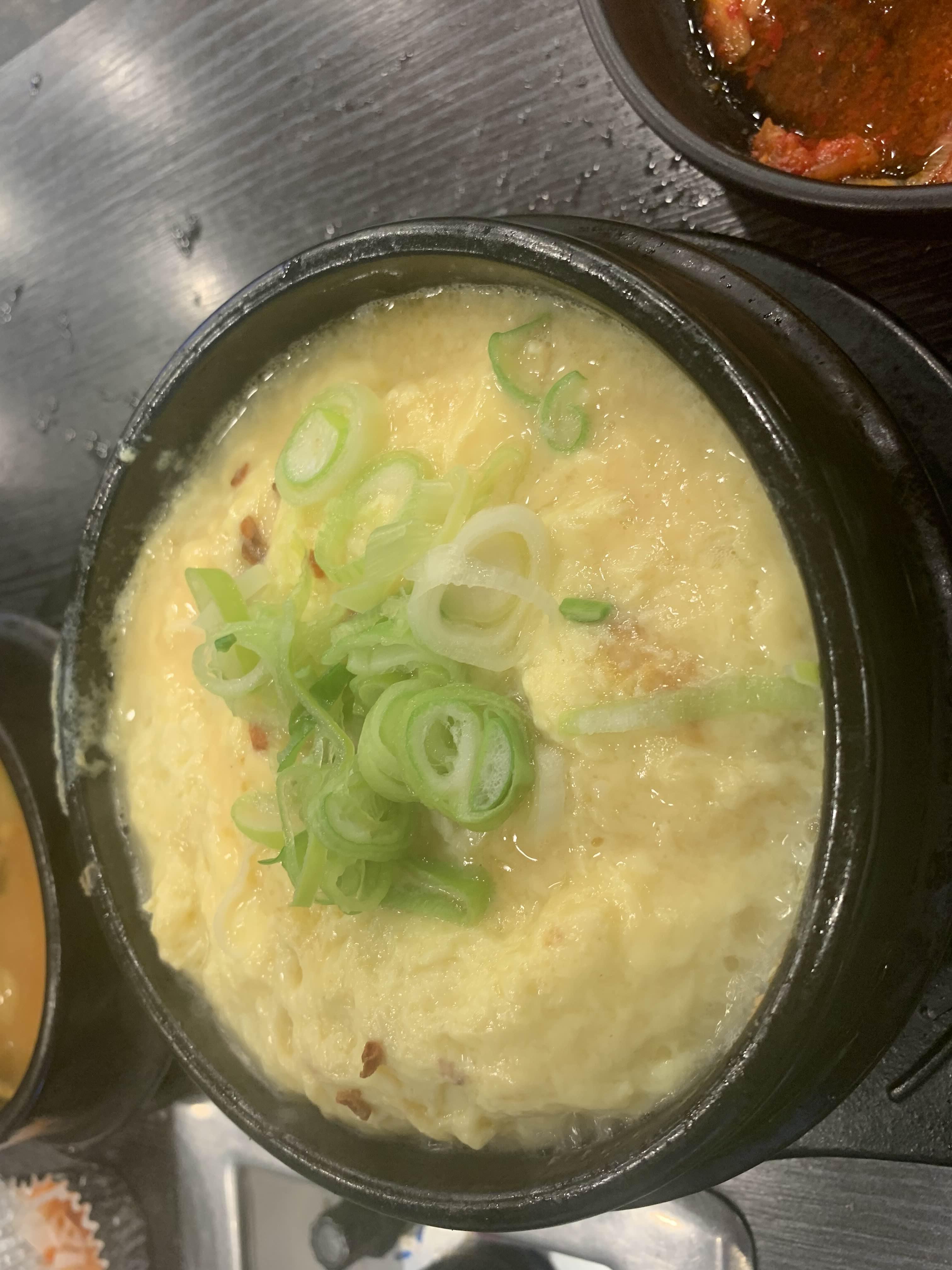 후식으로 김치찌개를 주문하고 싶었지만, 점심시간에만 판매하여... 된장찌개와 계란찜 하나씩 주문해 보았습니다. 된장찌개는 맛이..... 맛 평가는 패스하도록 하겠습니다. 계란찜은 정말 잘 주문한 후식이었네요. 밥의 된장찌개에 먹는 게 아니라 지인과 함께 계란찜에 밥을 다 먹을 정도로 계란찜이 맛이 좋더군요.