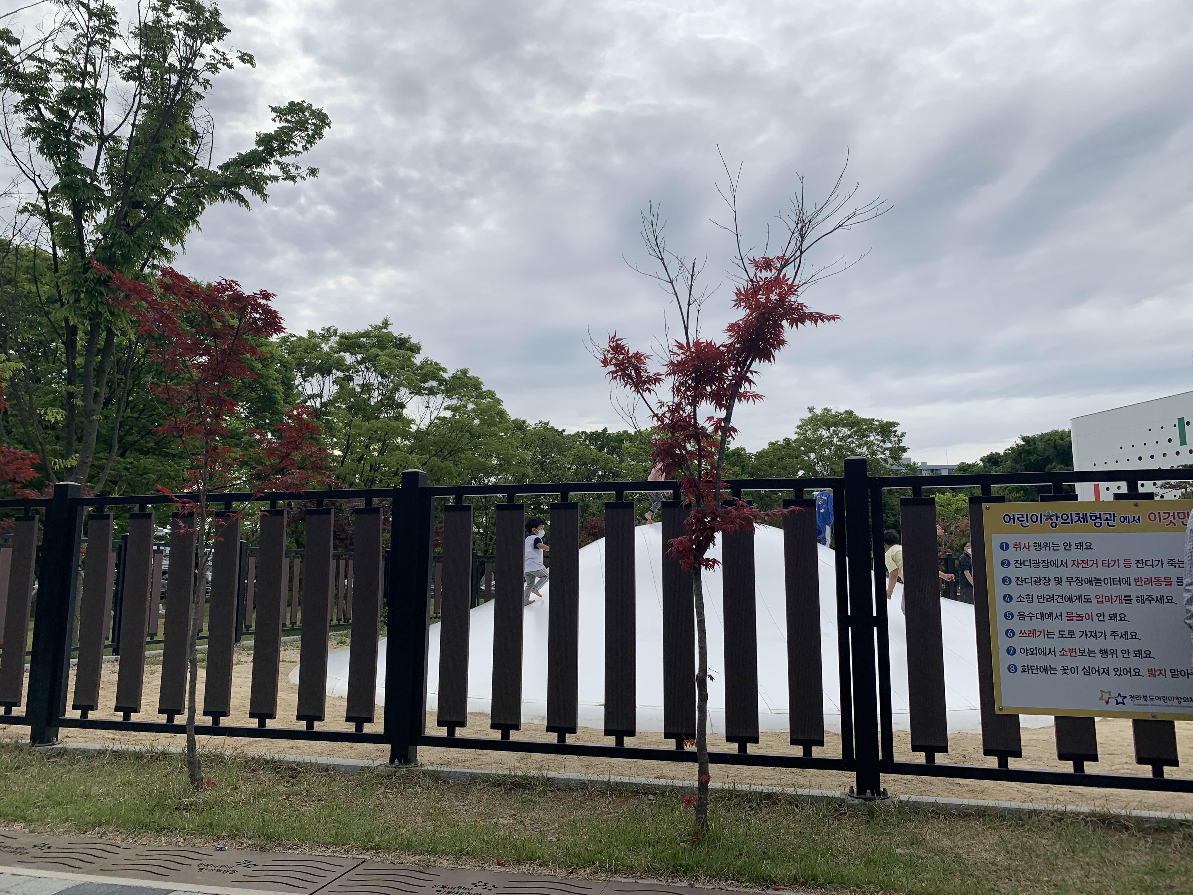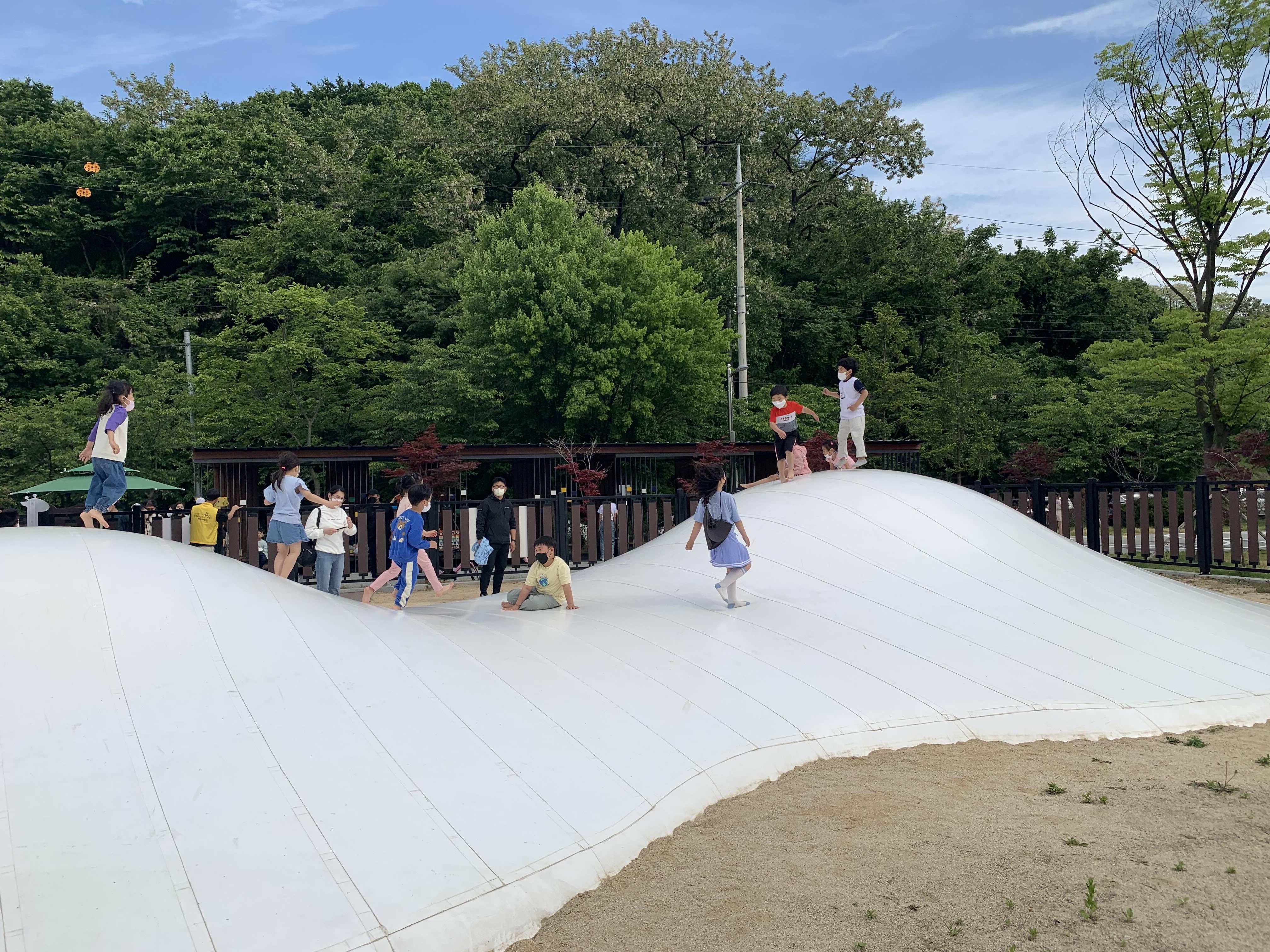 구름언덕 놀이시설 주변에는 휀스로 막혀있고, 출입구 하나로 통합되어... 입장이 제한되어 있더군요. 구름언덕이 언덕과 같이 높은 산 모양으로... 주변을 막는 휀스가 없다면, 주위에 달려드는 아이들과 충돌로 사고 발생 우려가 있겠더군요. 놀이시설 주변에 휀스가 있어 안정감이 느껴지더군요.