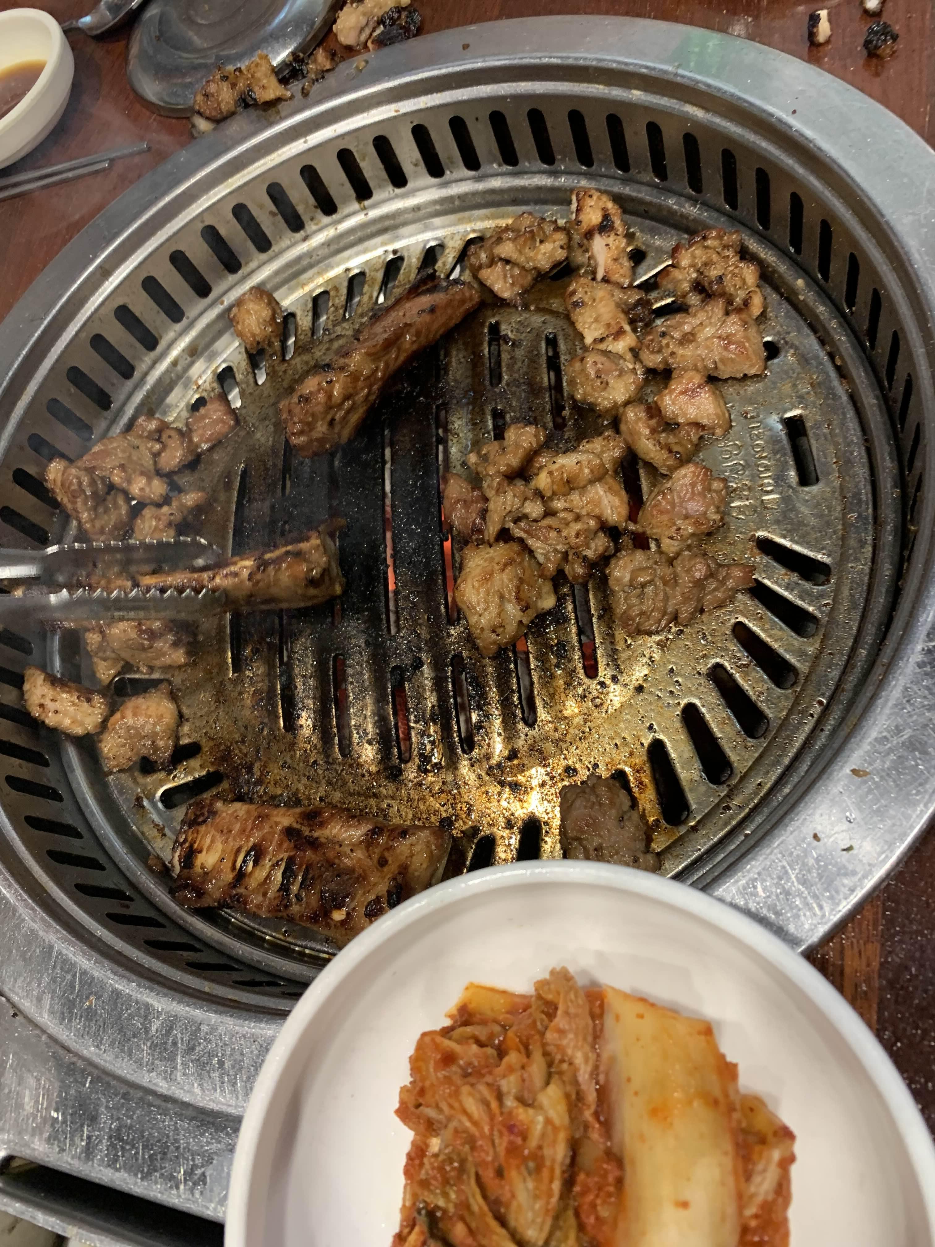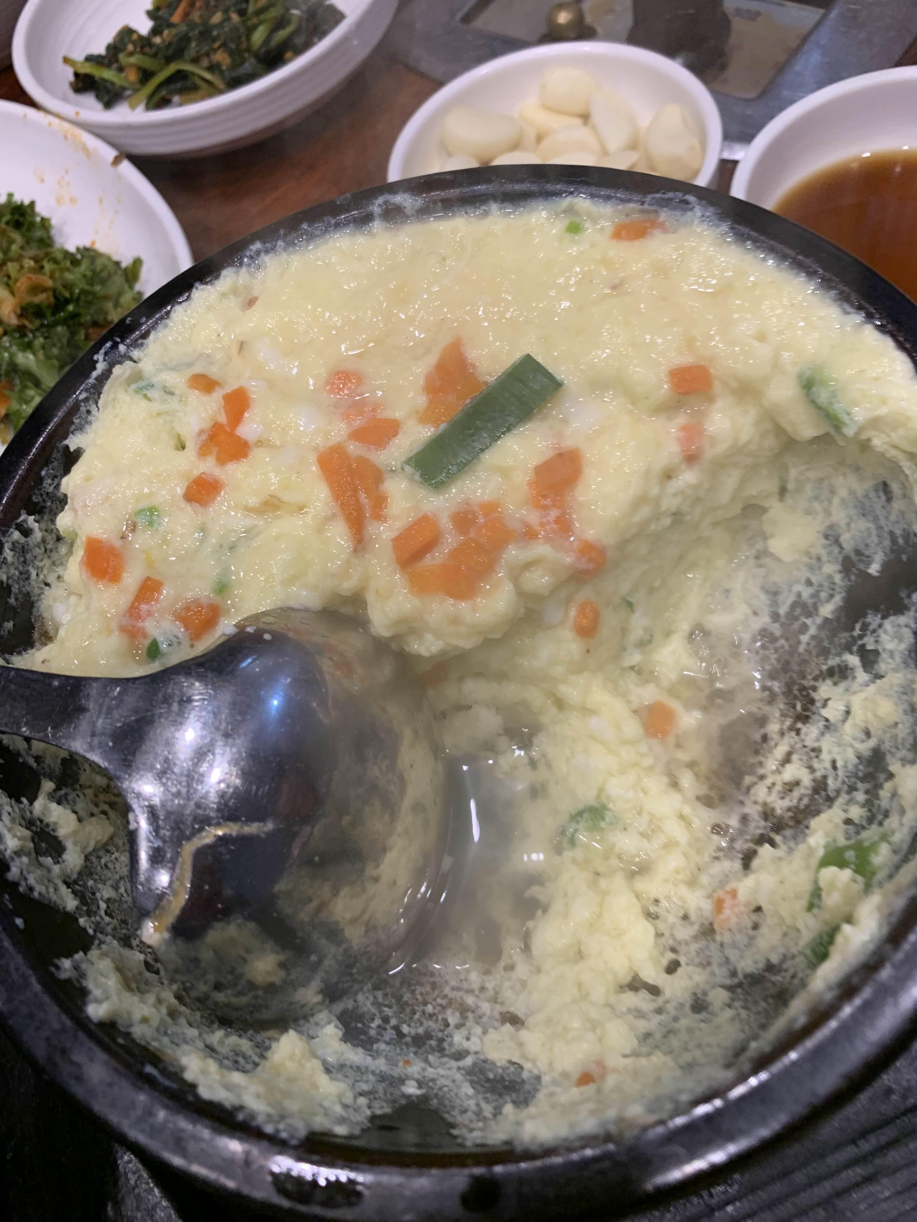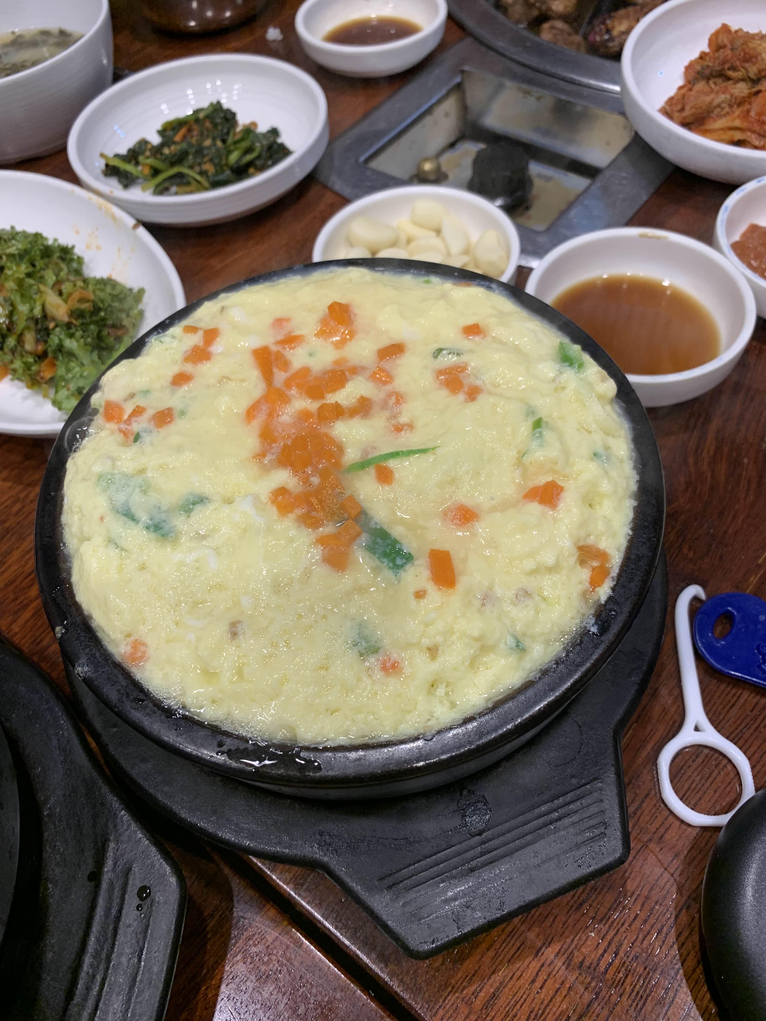 양념갈비를 요리조리 구워서 먹어야 하는데... 양념고기의 특징이 굽는데 오랜 인내가 필요하죠!!! 그래서, 그 사이에 먹을 수 있는 계란찜~! 고깃집의 계란찜은 진리! 맛이 꽤 괜찮더군요.