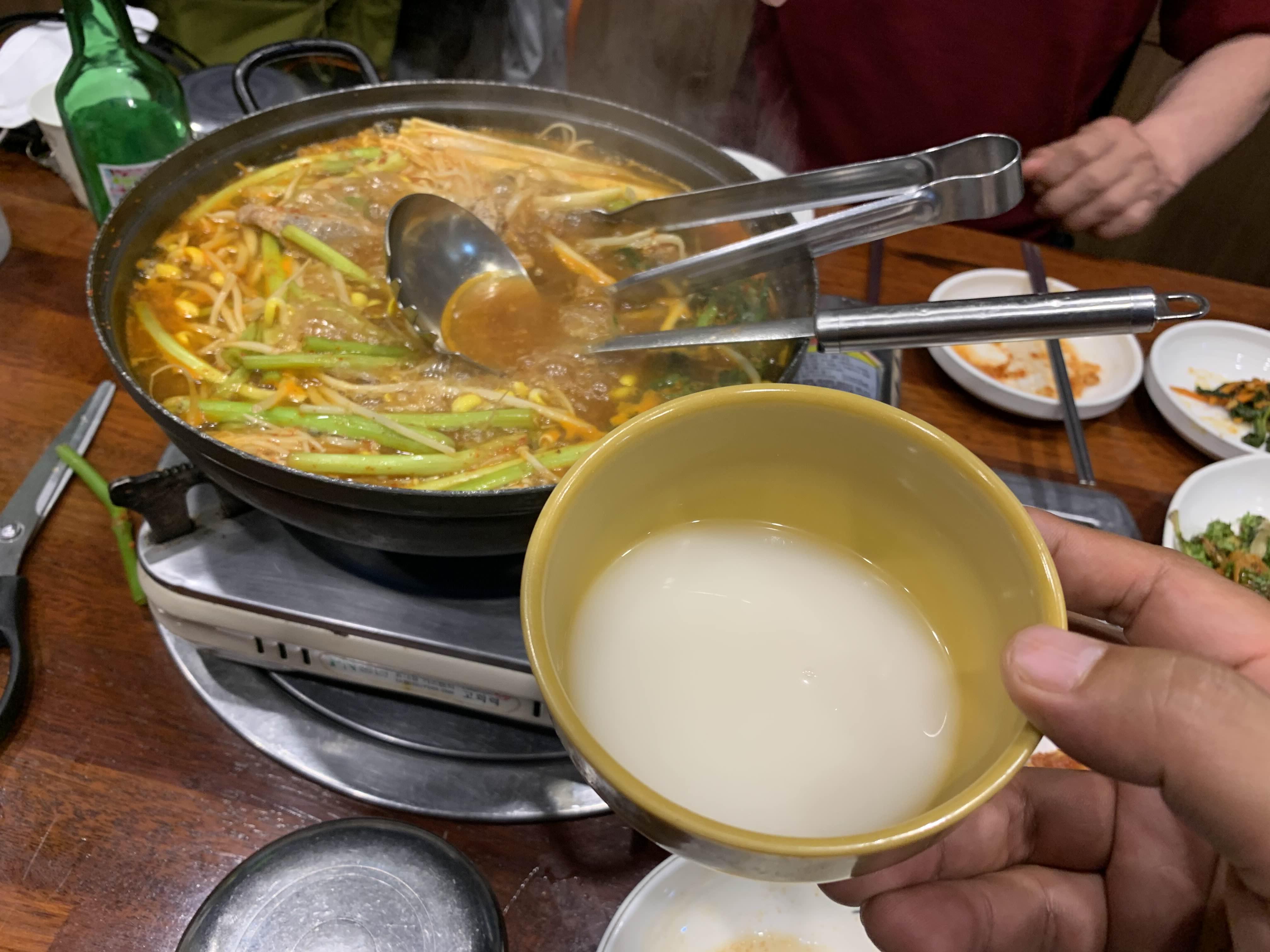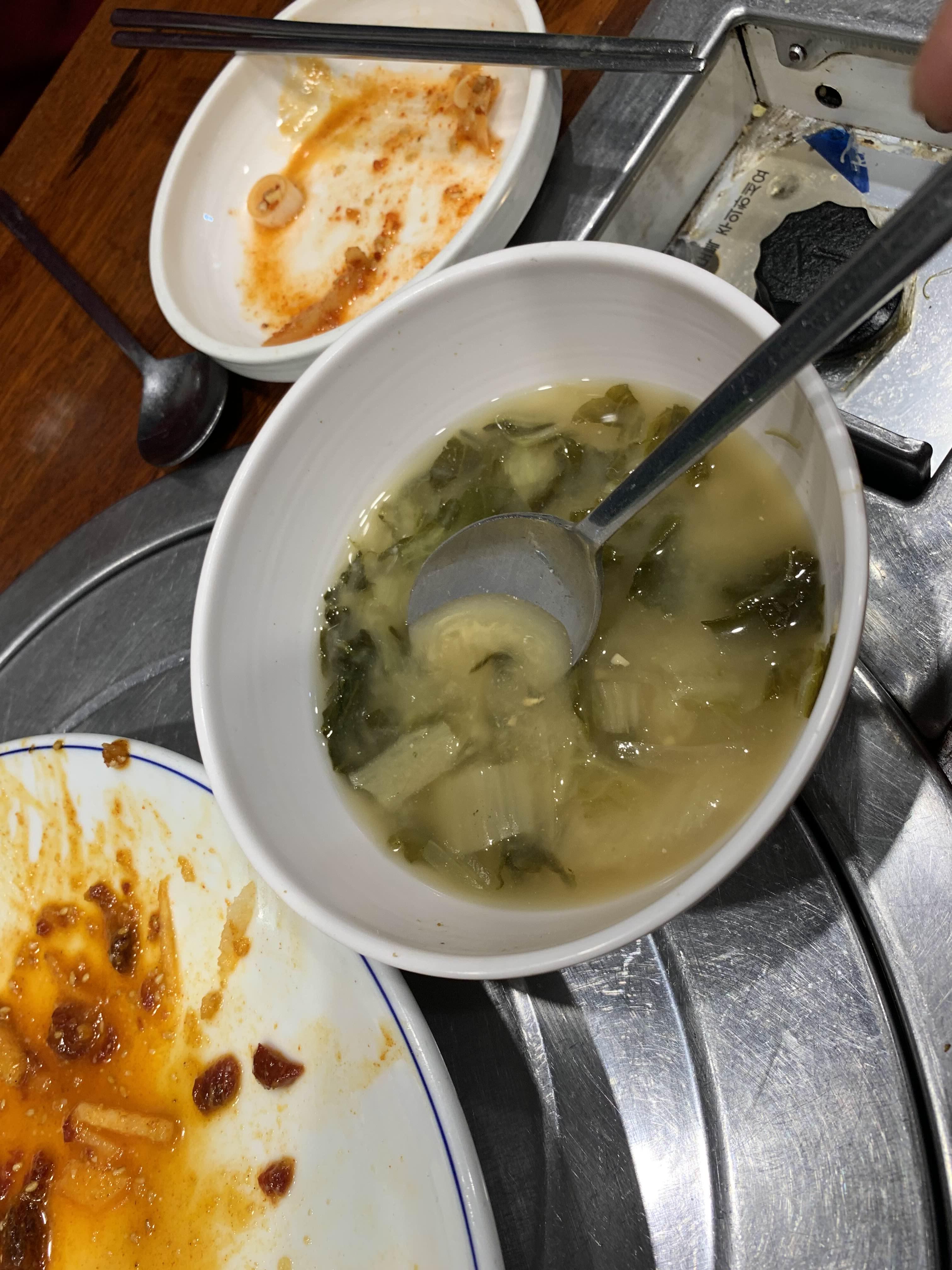 그리고, 국물로 김칫국? 인지 콩나물국인지 김치 콩나물국인지 국물이 나오는데... 그리 맛있지는 않지만, 술 마실 때 국물이 별도로 나와서 술 마시기에는 밑반찬 조합이 꽤 좋더군요.ㅎㅎ