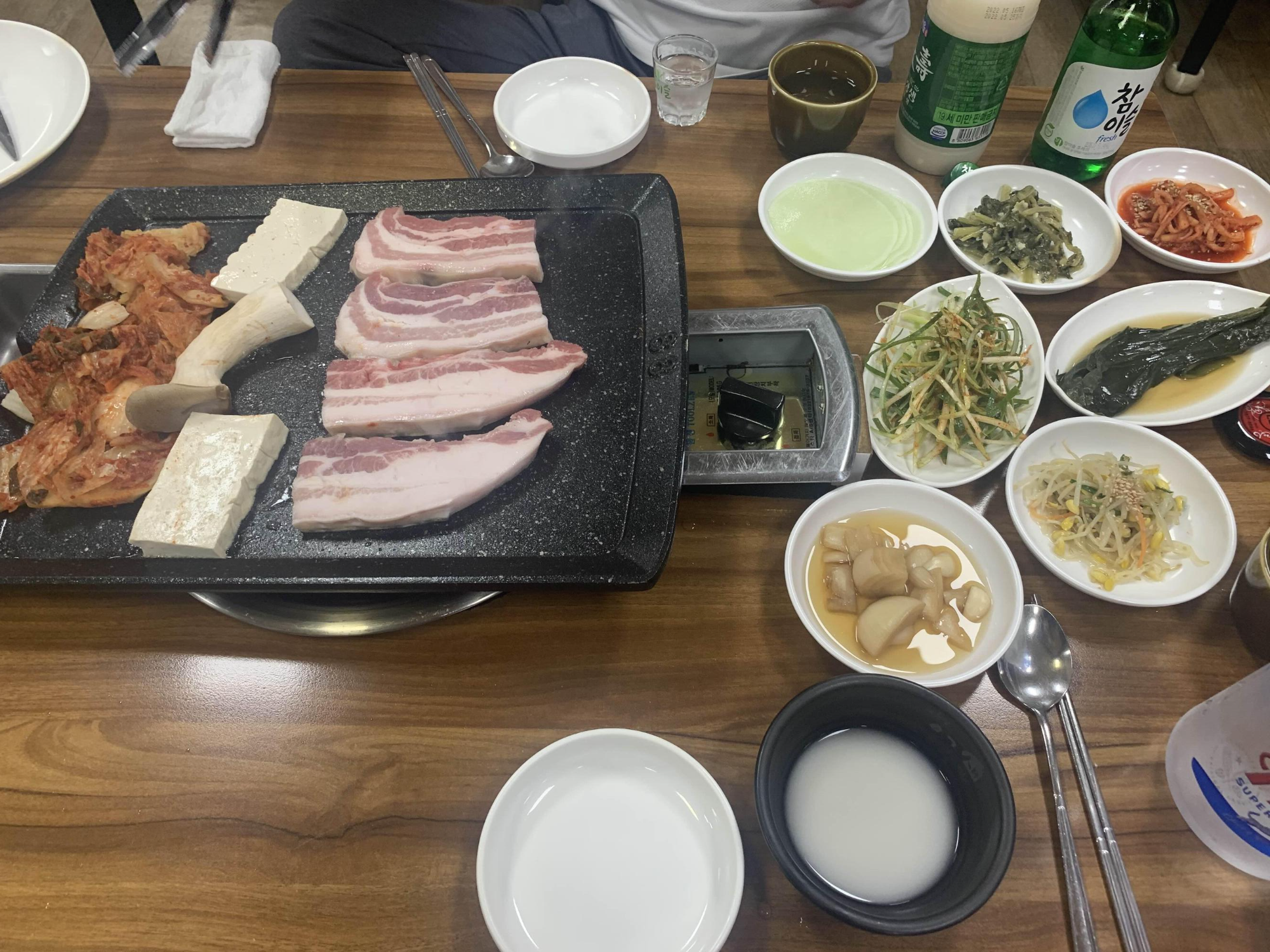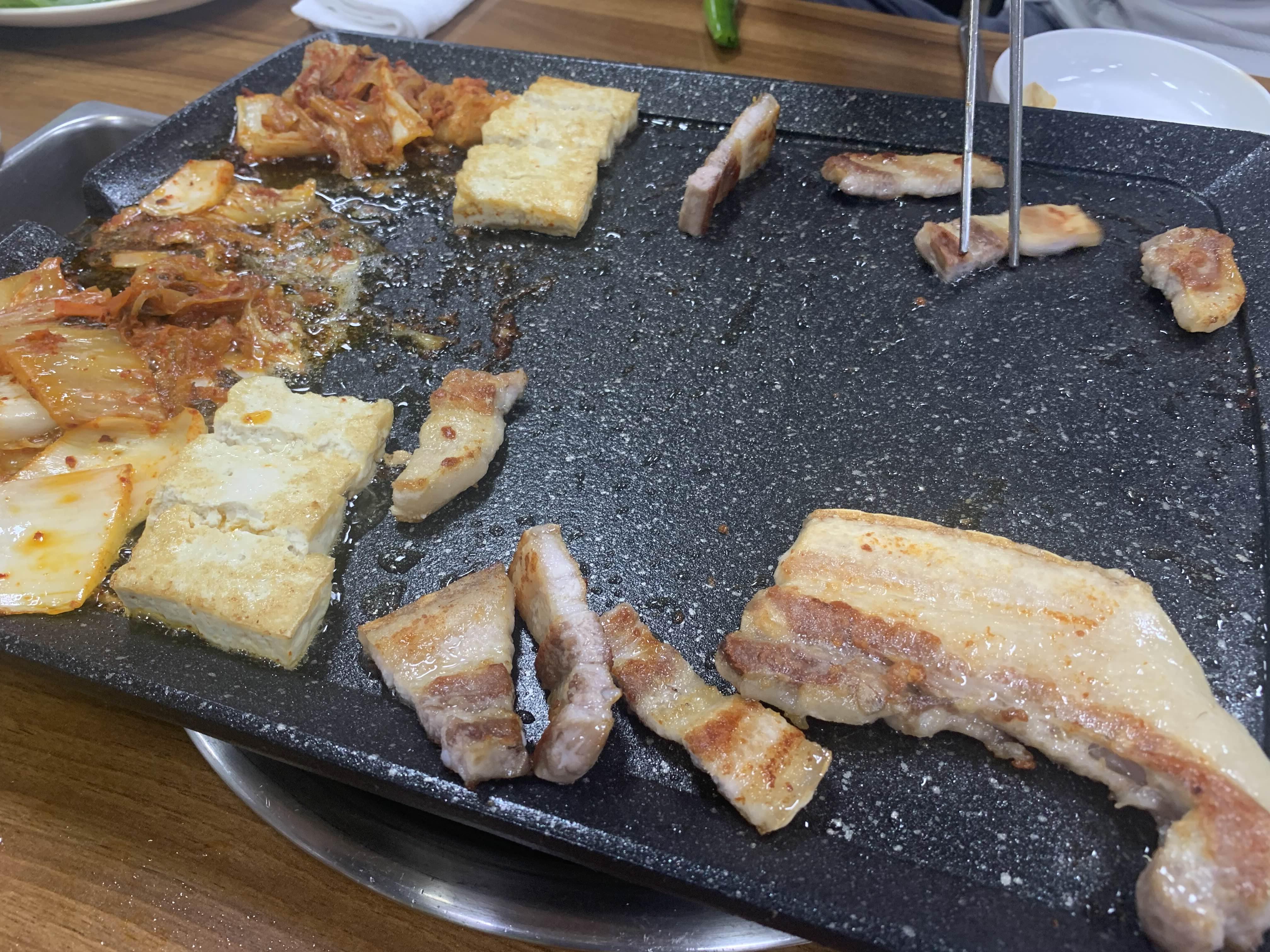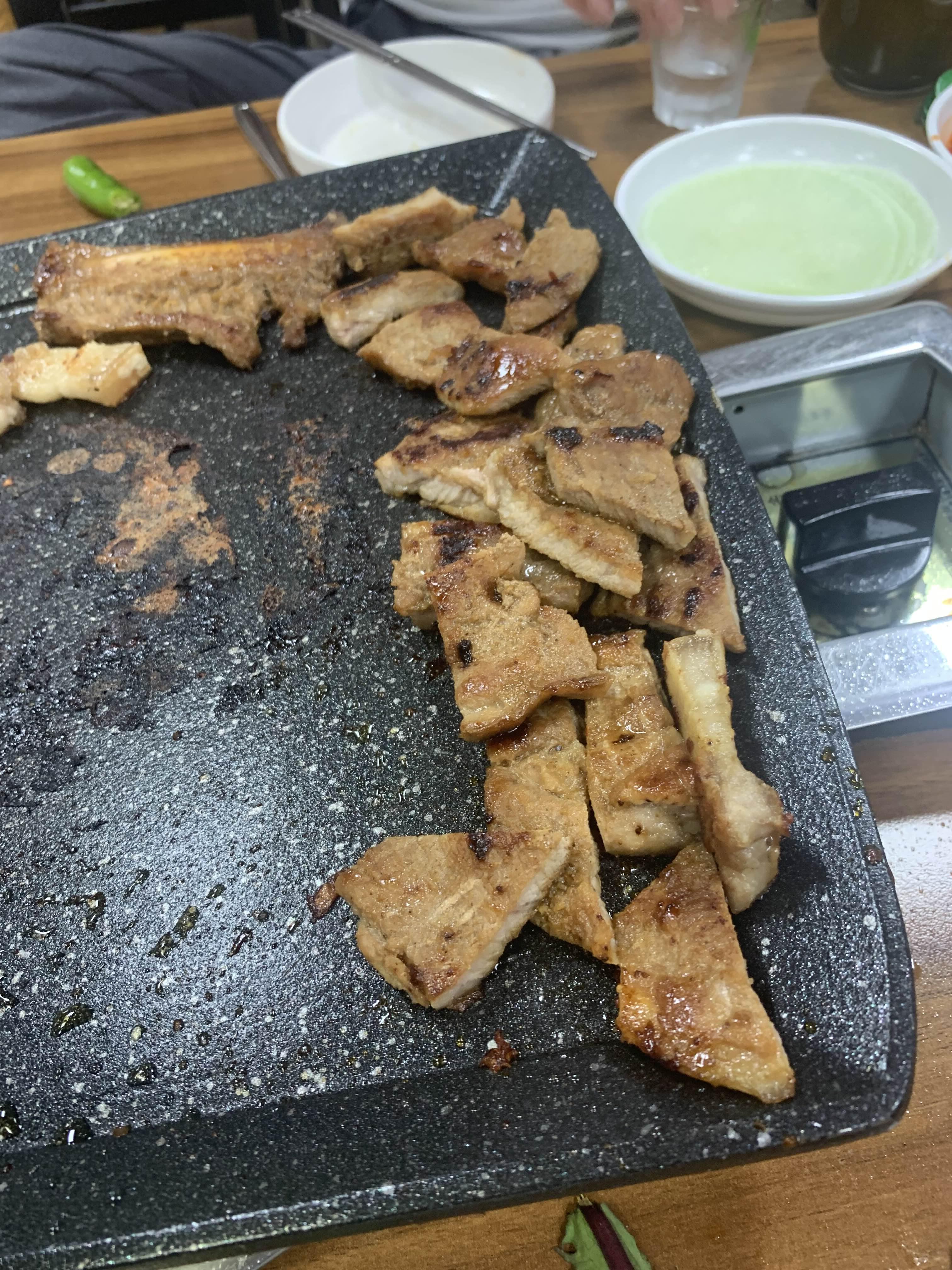삼겹살 가격은 꽤 비싼 편이나 맛은 좋았습니다. 돼지 왕갈비는 비추, 후식으로 먹었던 김치찌개는 최고였던 식당입니다.
