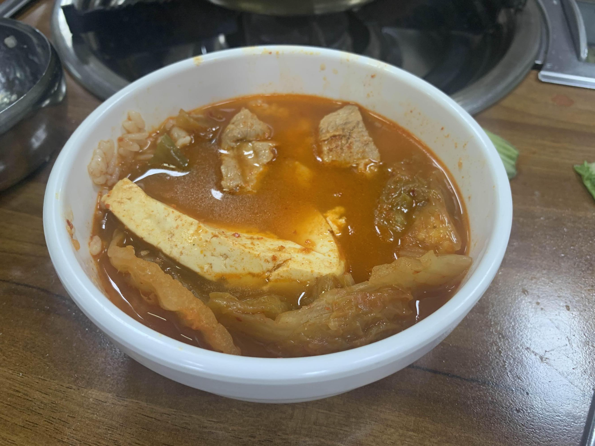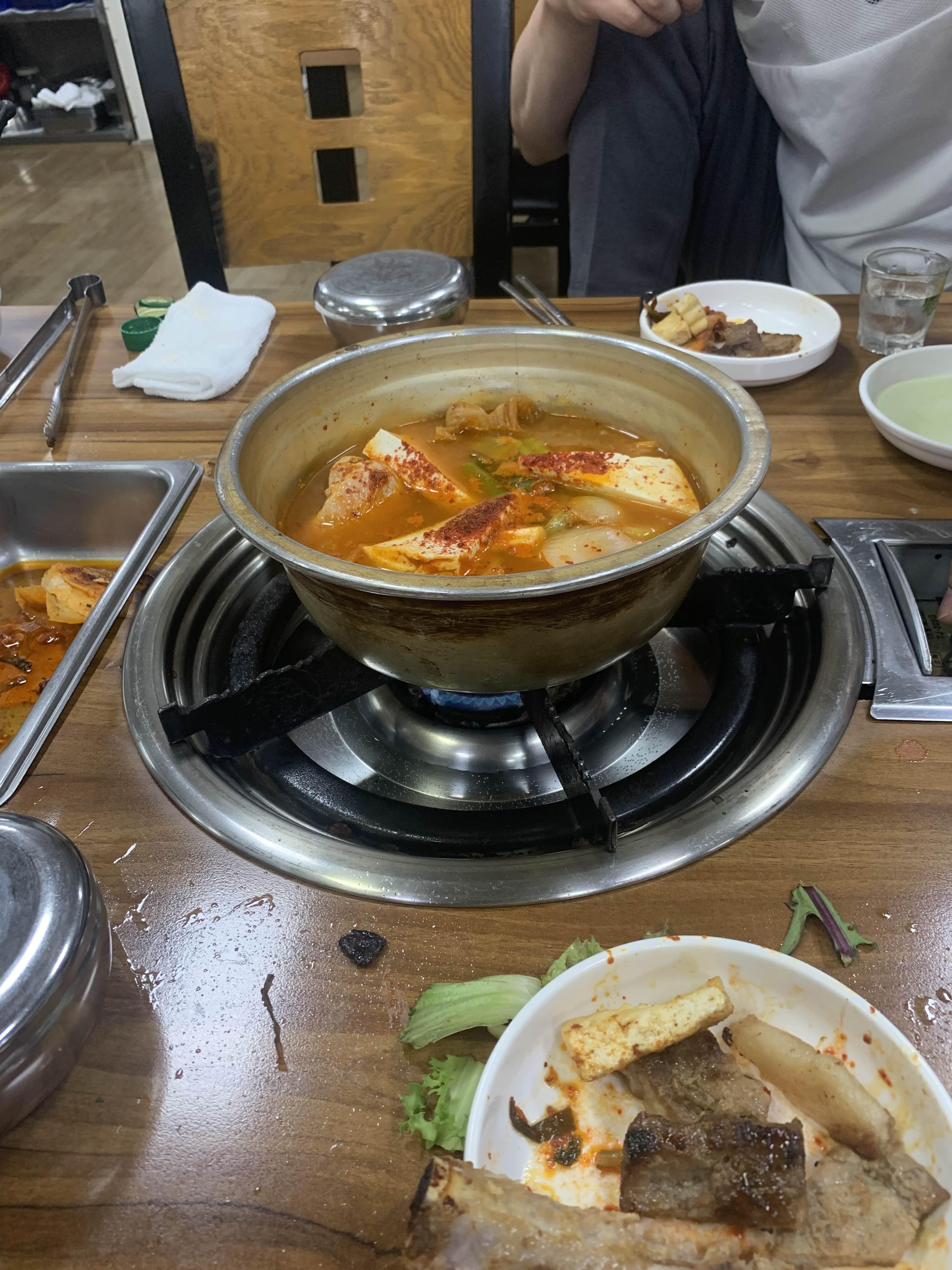 돼지 왕갈비를 빠르게 스킵해주고 후식으로 주문한 김치찌개!!! 후식으로 김치찌개는 최고였습니다. 술 마실 때 국물이 없어 많은 아쉬움이 남았는데, 그 아쉬움이 김치찌개로 달래주었네요. 얼큰하니, 고기 먹고 개운하게 국물과 공깃밥을 맛보기 참 좋았네요.ㅎㅎ