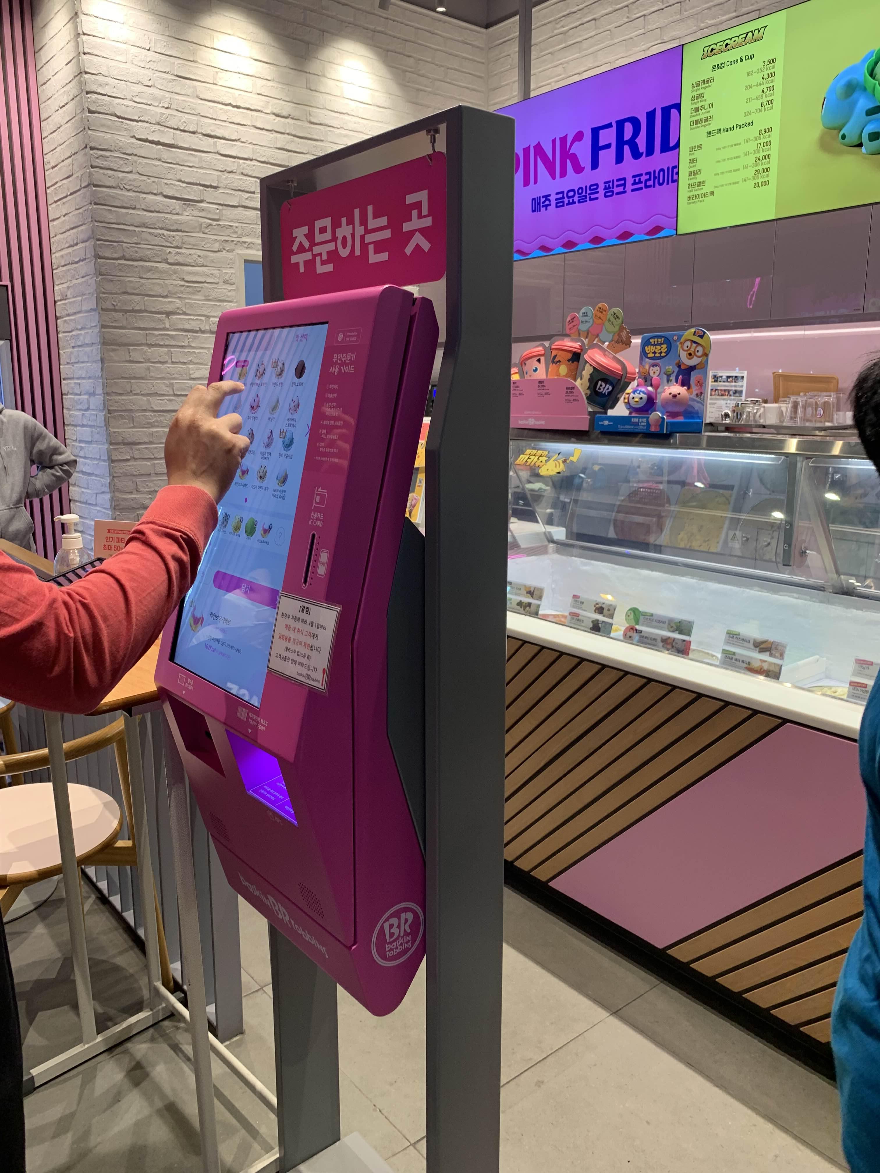 아이스크림 주문은 이제 포스 기를 이용한 주문만 가능하더군요. 포스기 주문이 상당한 시간이.... 대기줄이 상당히 길게 늘어선... 한 팀 한 팀 주문하는 시간이 꽤 걸리더군요.