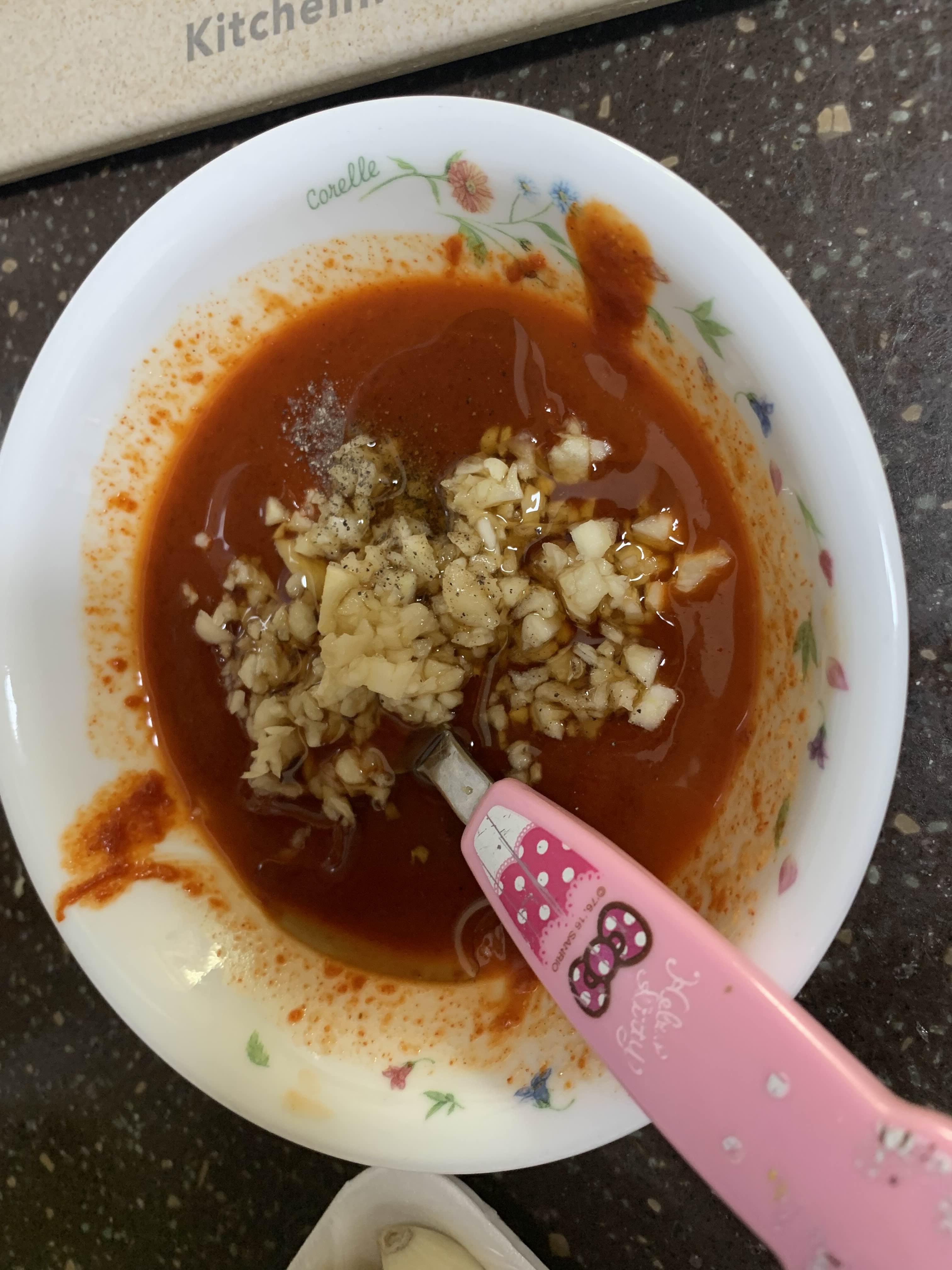 육사시미의 핵심은 고기?라고 생각하겠지만, 양념장이 중요하겠죠!!! 양념장은 초장에 마늘과 설탕 그리고 후추 약간 넣어주면 끝인데!!! 집에 초장이 없어, 고추장에 식초를 넣어서 초장을 만들어서 양념장을 만들어 보았습니다.
