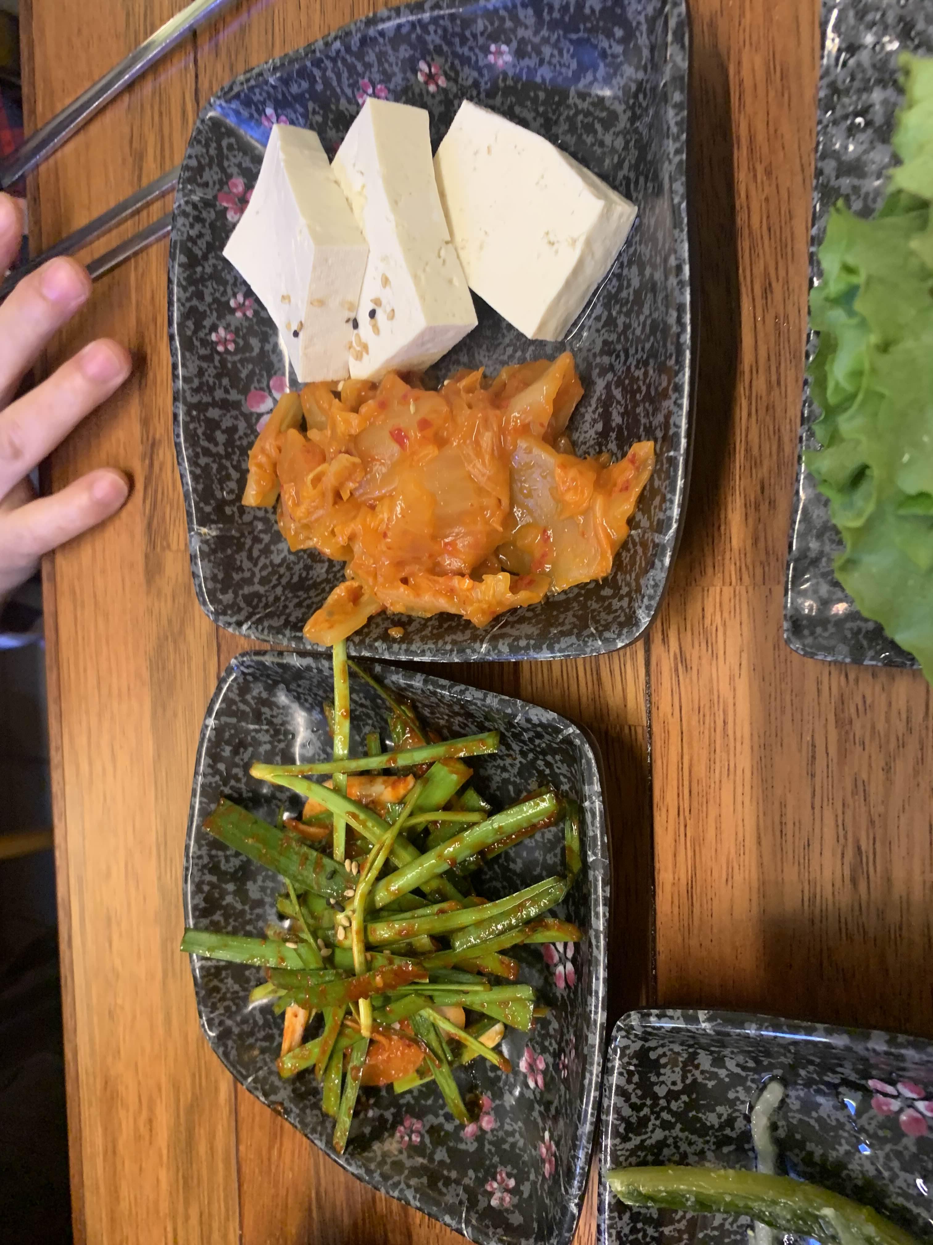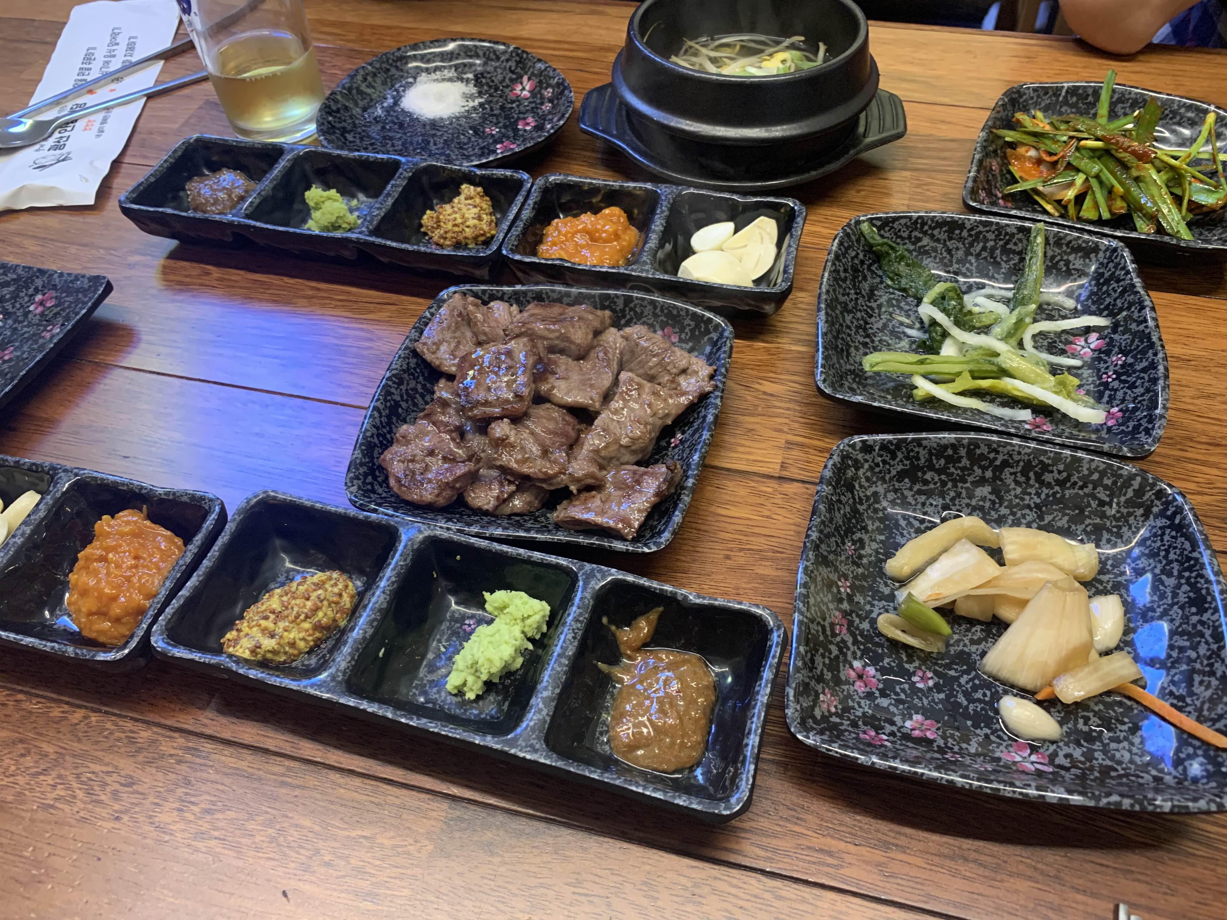 고기를 주문하면, 기본 밑반찬 세팅이 괜찮더군요. 두부김치와 공나물 국! 두부김치는 맛이 좋았고, 콩나물국은 좀 맹한 느낌이긴 했으나, 술 한잔 마시기에는 기본 국물이 나오니 괜찮더군요.