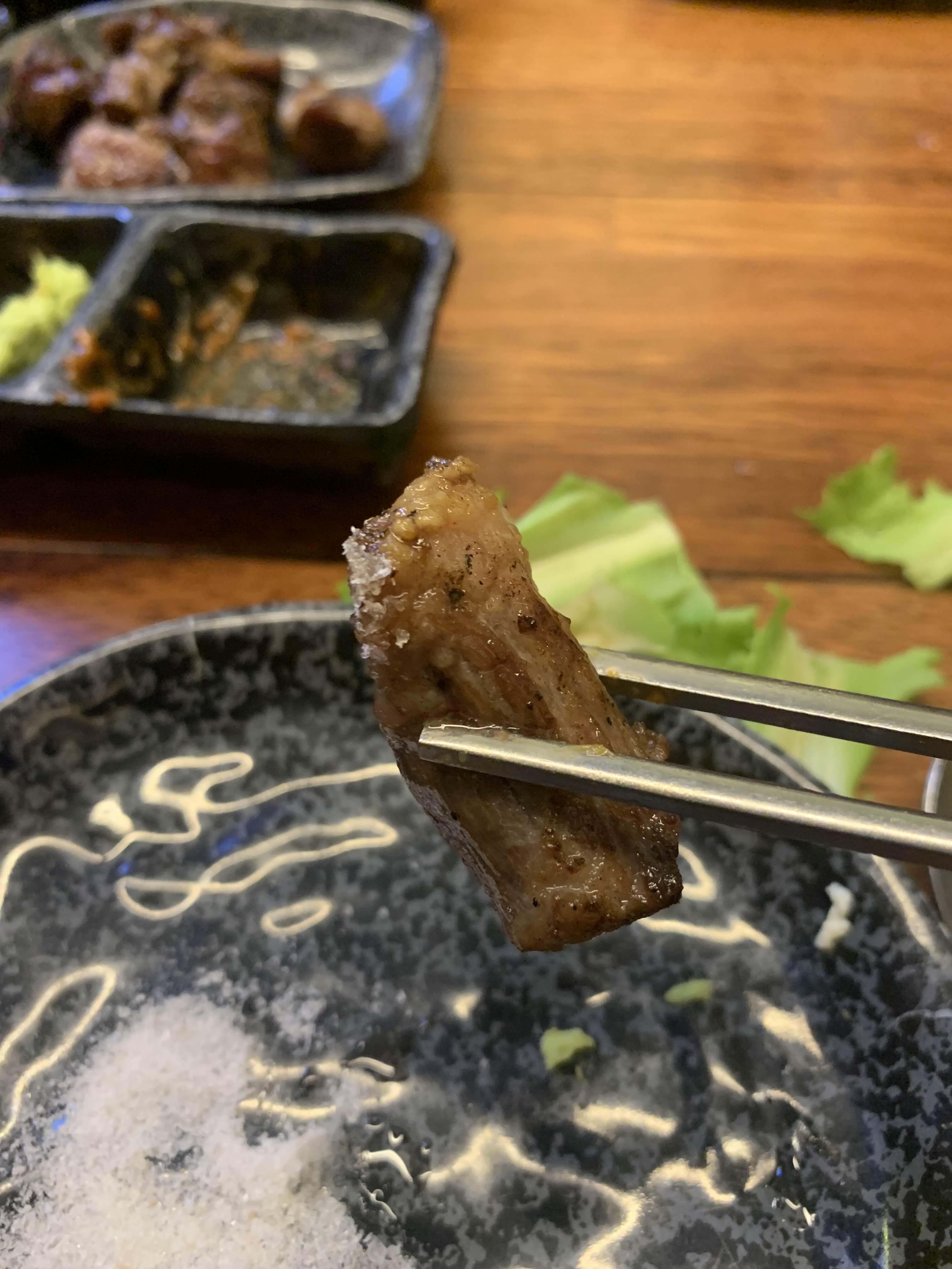 고기는 쌈을 싸서 먹어도 좋지만, 뭐니 뭐니 해도 고기는 소금만 찍어도 맛있겠죠!!! 소금을 찍어서 고기를 뚝딱 처리해 나갔습니다.