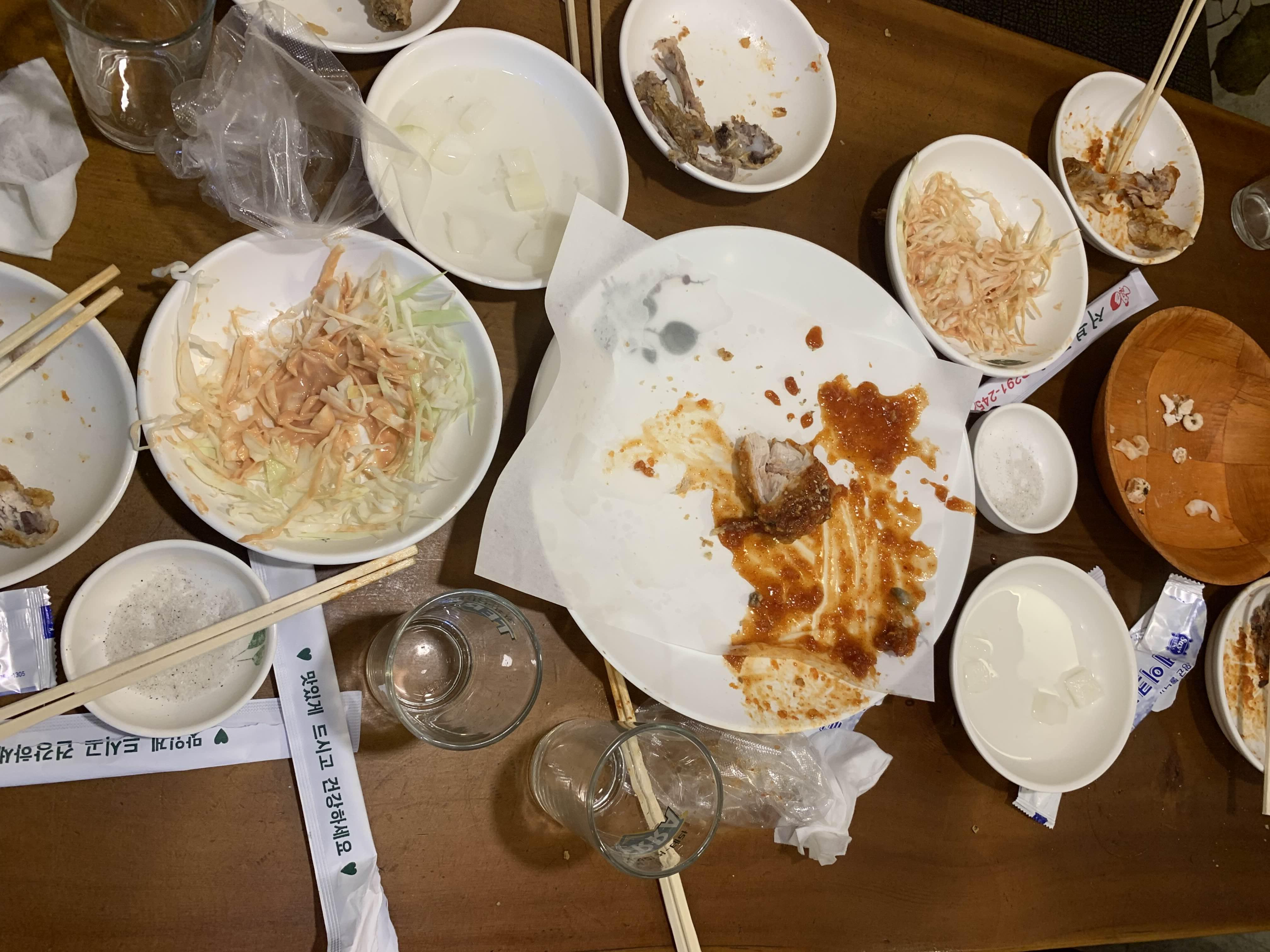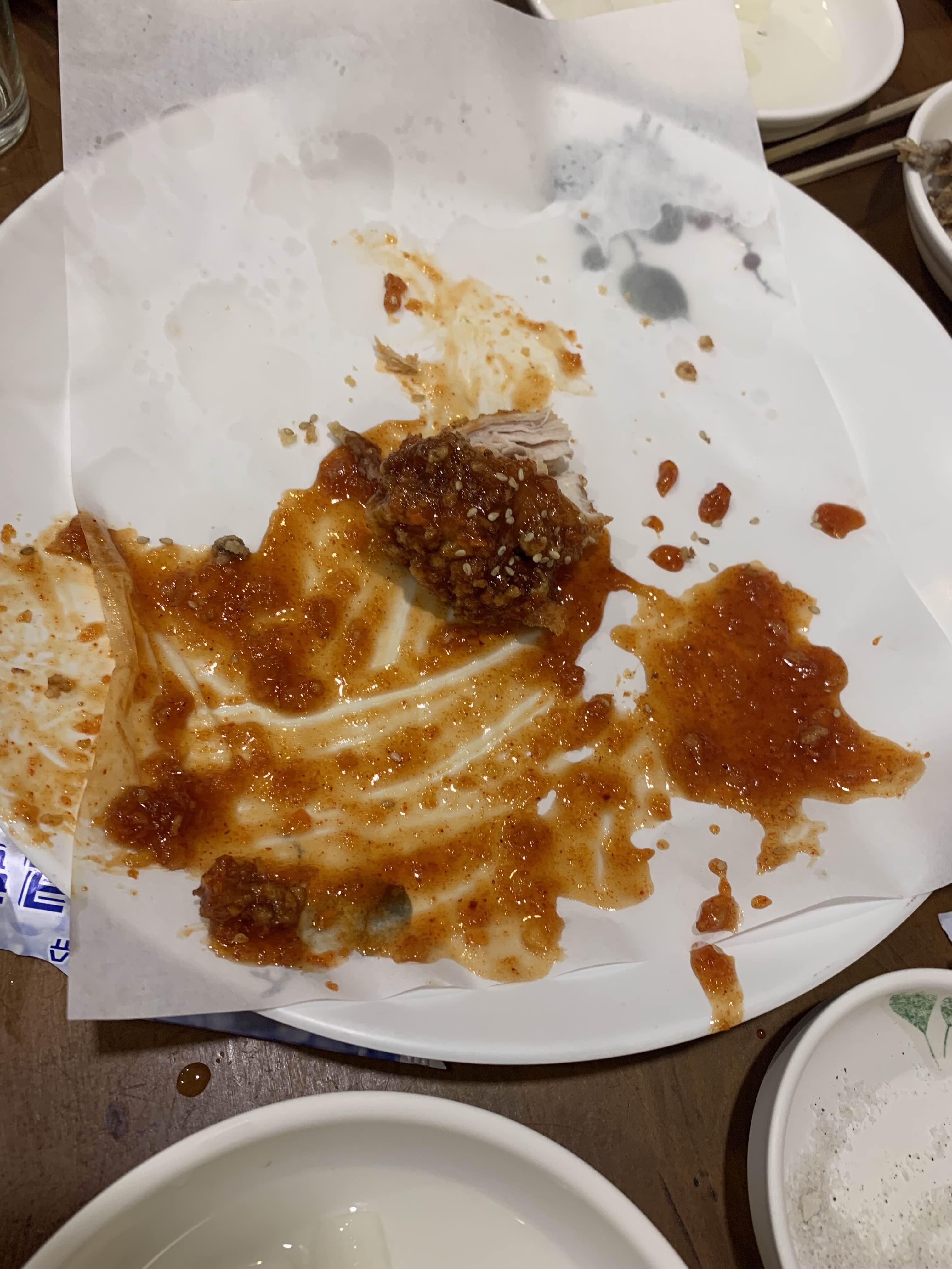 이미 저녁을 든든히 먹은 후 방문한 치킨집.... 반반 치킨이 좀 남을 줄 알았는데... 통닭이 나온 지 10분 정도 되니 순삭 없어지더군요. 양념보다는 후라이드가 담백한 서부 통닭!!