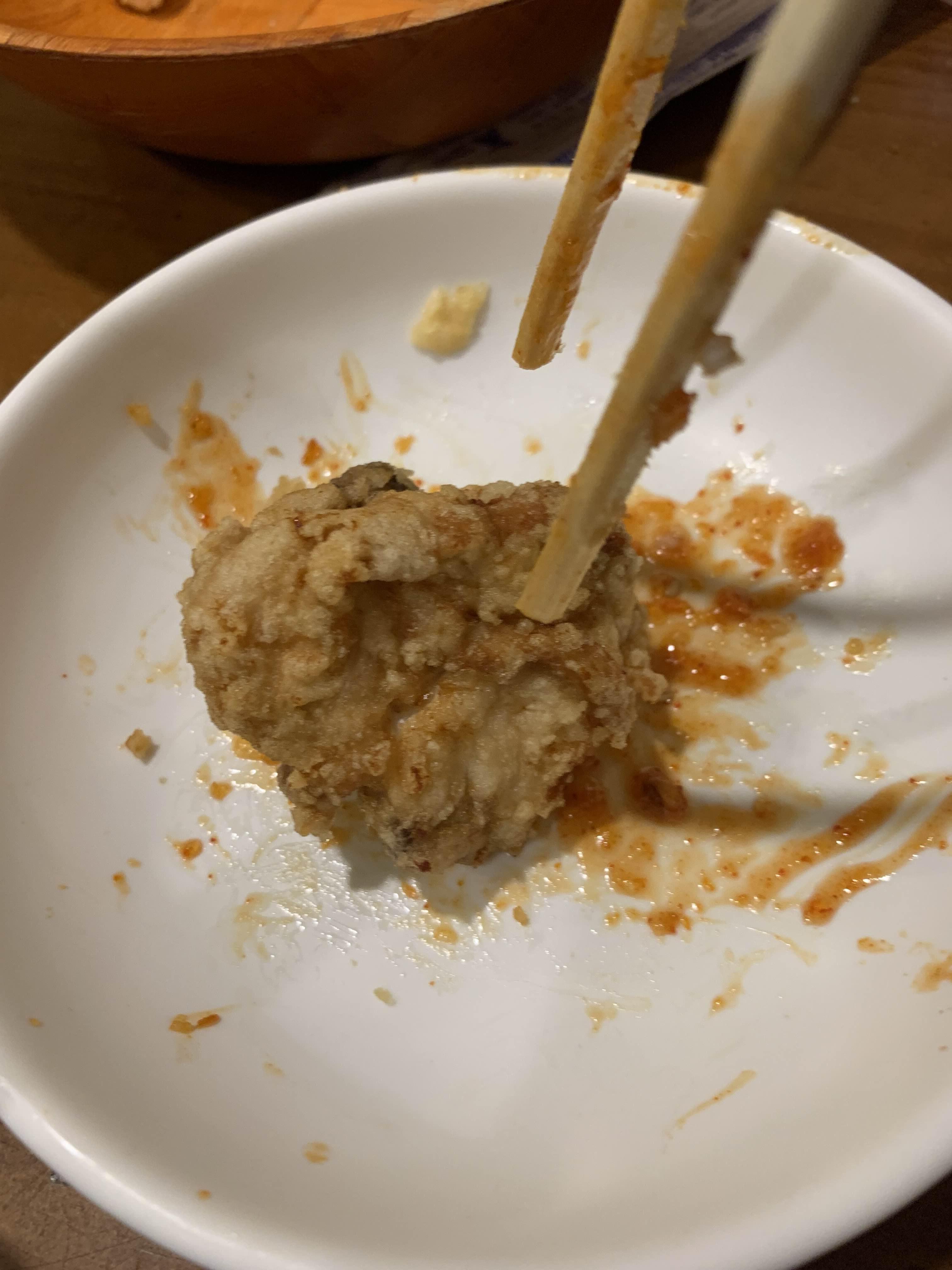 후라이트 튀김옷이 바삭하니 고소한 느낌이 나서 괜찮더군요. 더욱이 치킨의 닭뼈를 보니... 검은색이 안 보이는 싱싱한 닭고기로 치킨을 만들었더군요. 이런 치킨은 먹어보나 마나 소금만 찍어 먹어도 담백하니 맛있더군요..