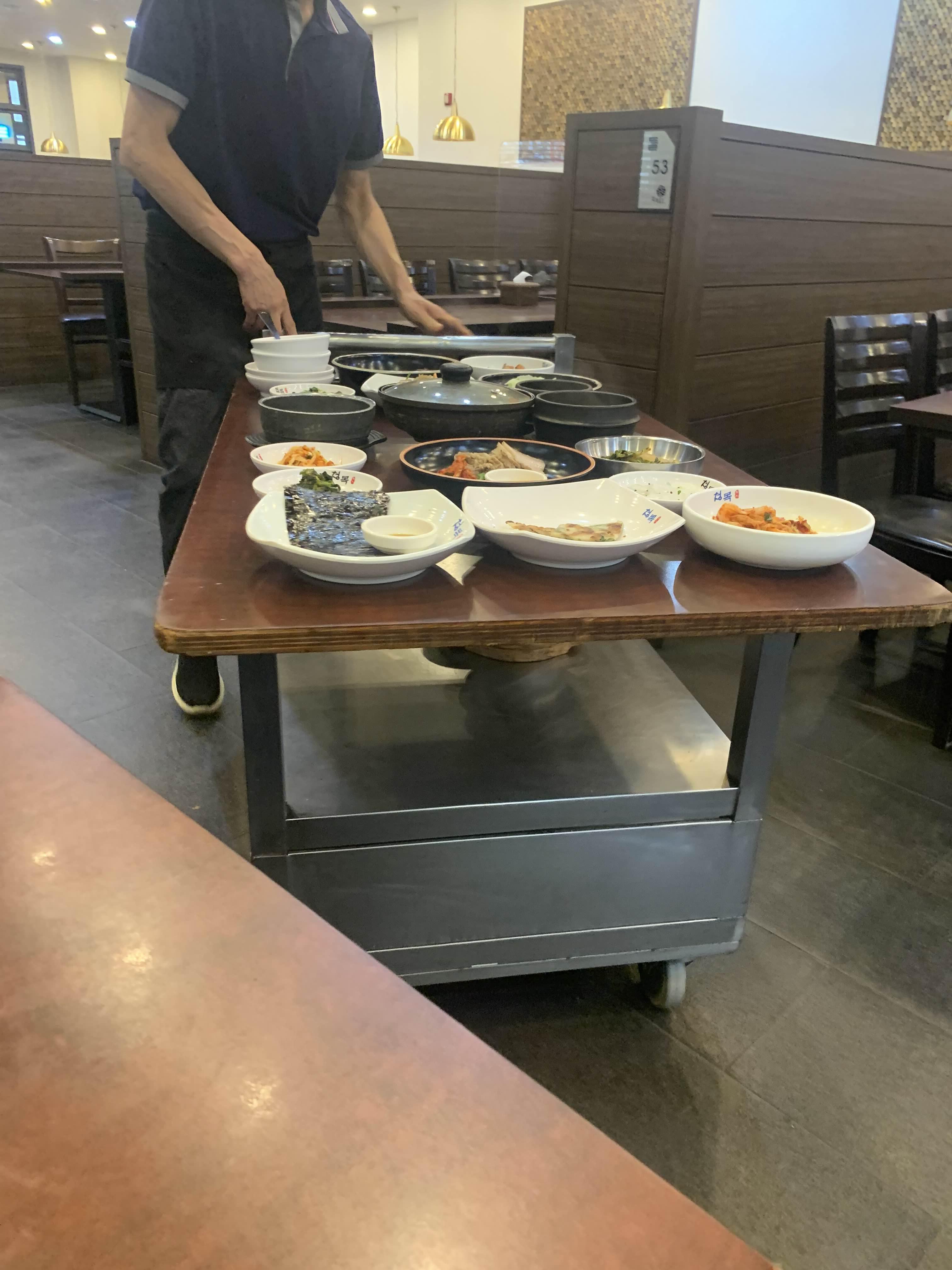 음식을 주문하고 얼마 되지 않아 출입문에 있던 카드에 상을 그대로 끓고 오시더군요. 상을 그대로 밀어서, 단차 났던 식탁은 평평하게 만들어 주었습니다.