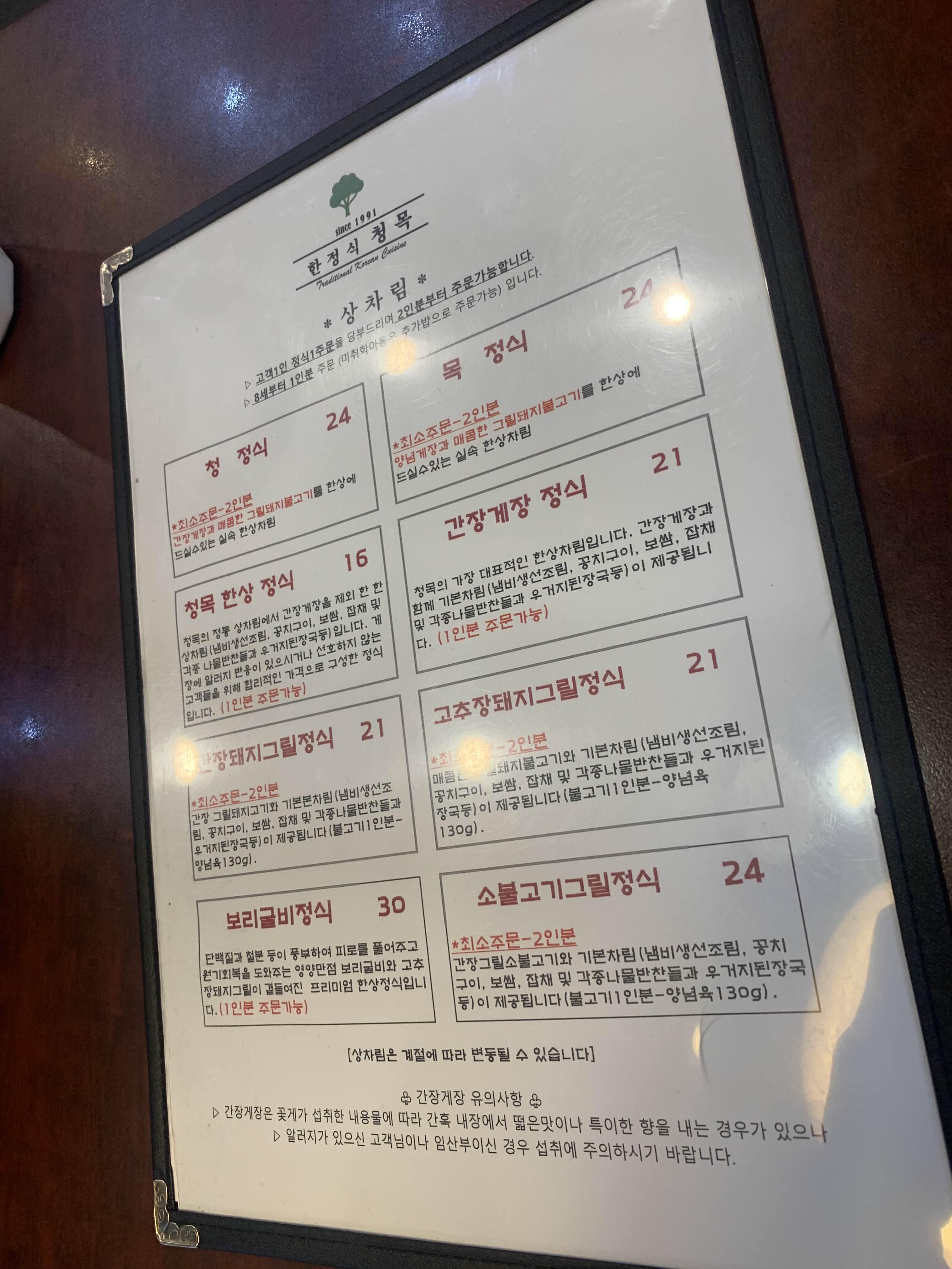 식당 테이블은 약간의 턱이 있더군요. 이 턱이 무슨 턱일까? 생각하다.... 식당 입구에 보이는 카트가 생각나더군요. 식당 내부에 손님들이 많이 없어서... 다른 테이블 음식을 스캔하지 못하고, 메뉴판을 보는데... 가격이 후들후들, 가장 저렴한 1인 비용인 16,000원이더군요. 식당에 첫 방문이고 해서 가장 기본? 메뉴를 주문해 보았습니다.