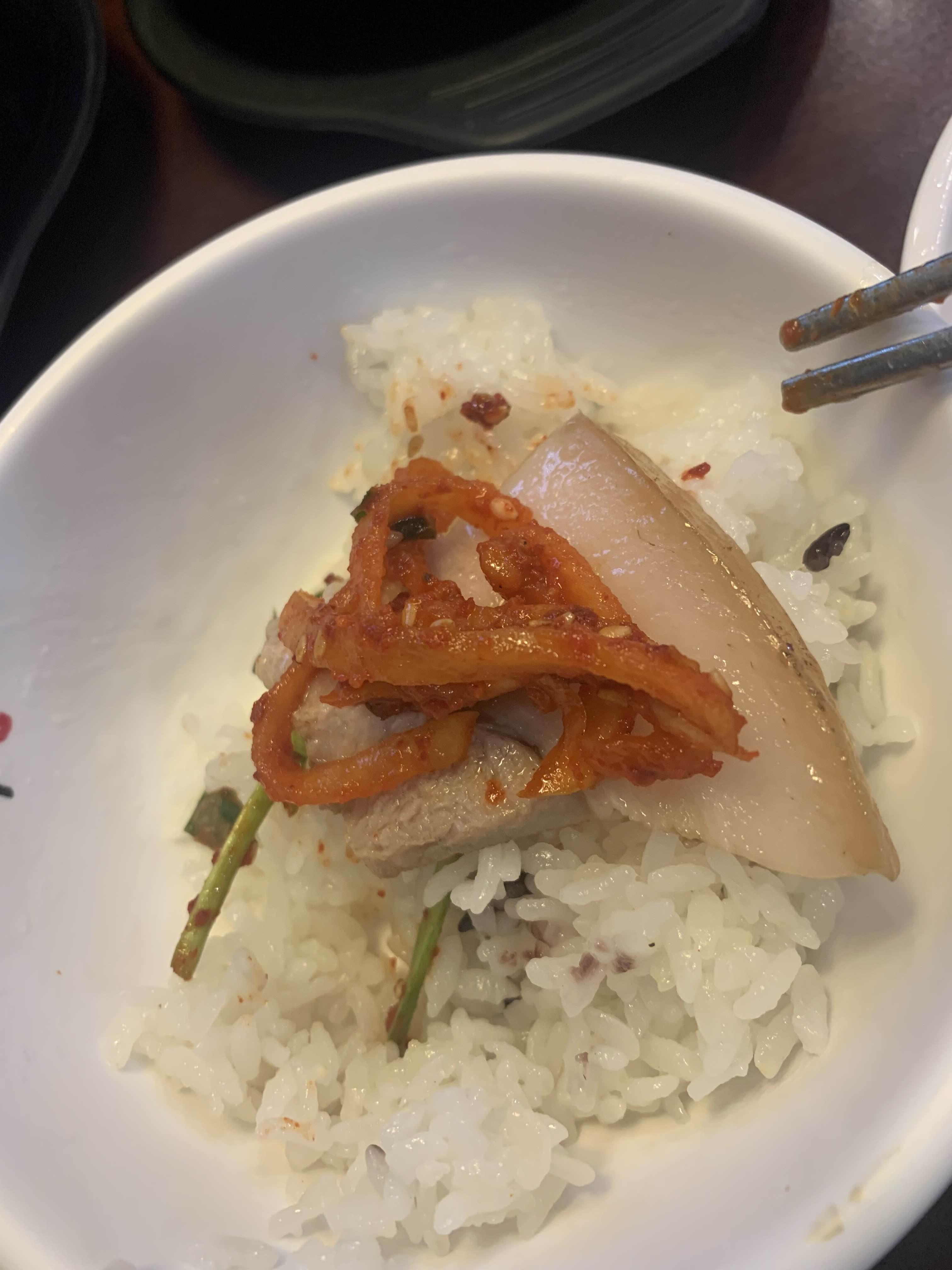 쌀밥의 양은 약간 적은 느낌이 들더군요. 늦은 점심이라 배고파서 그럴 수 있겠지만.... 쌀밥의 식감! 맛있는 백반은 밥만 맛있어도 맛있는 한 끼가 되겠죠. 쌀밥의 식감은 약간 물컹거리더군요. 예상했던 탱글탱글한 찰기 있는 식감을 생각했었는데, 약간 아쉬운 부분이 들더군요. 그래서, 갓 지은 쌀밥이라 맛은 좋았습니다.