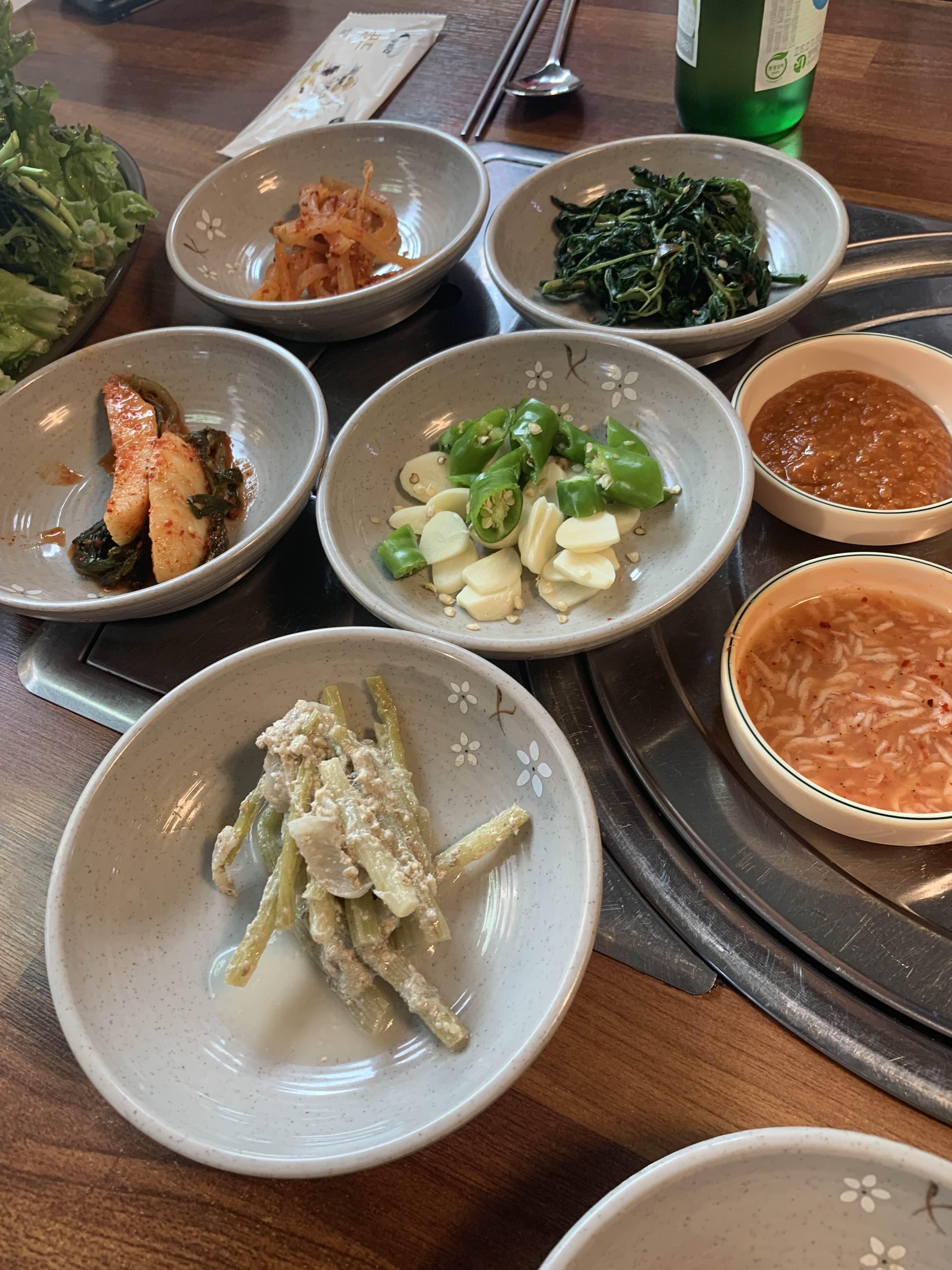 주문한 음식 족발이 나왔습니다. 다른 족발 전문점과 다르게.... 반찬이 나옵니다. 예전 백반을 판매하였던 식당이라.... 반찬이 나왔네요. 이런 반찬에는 막걸리를 주문해야겠죠?^^
