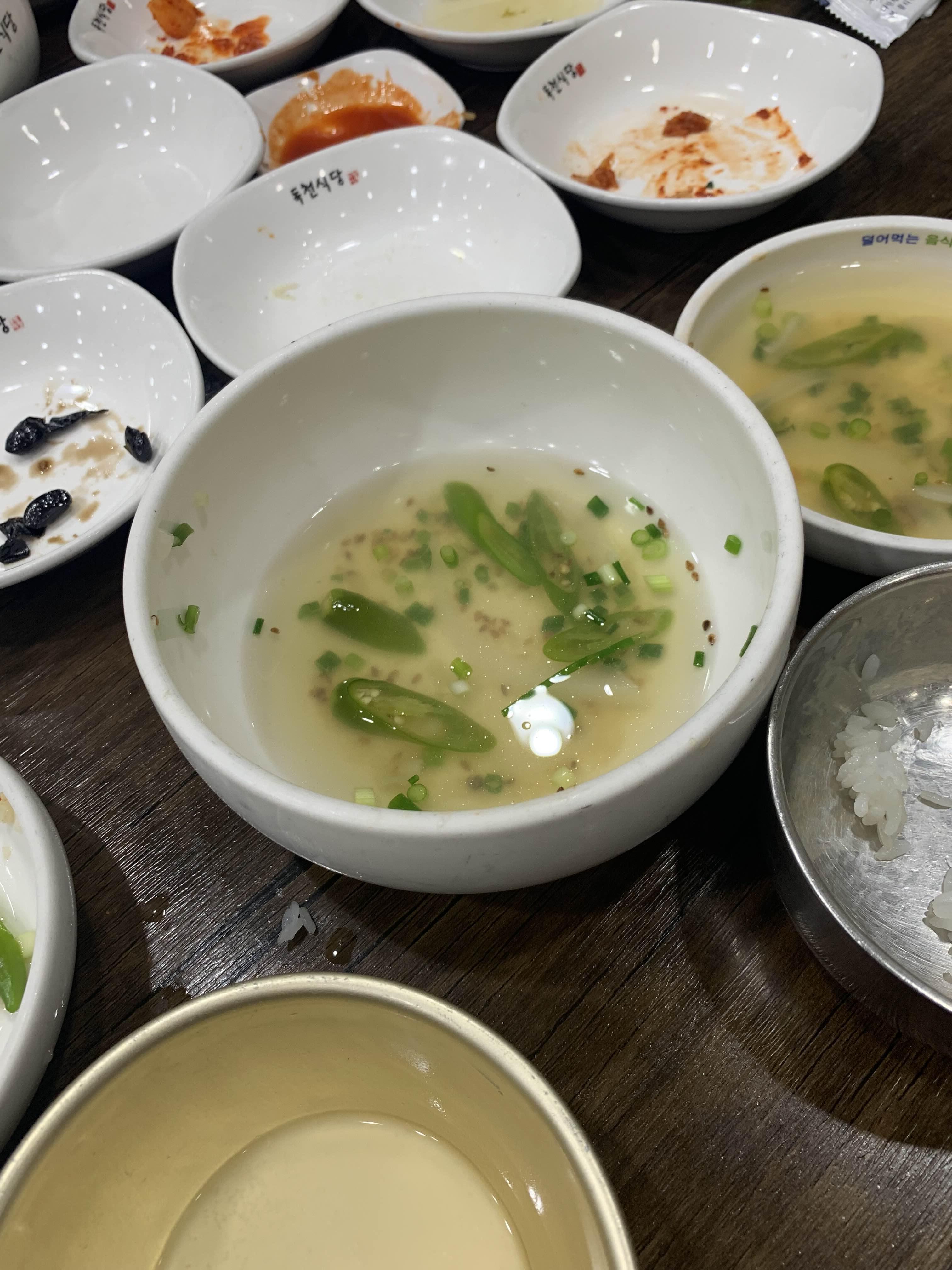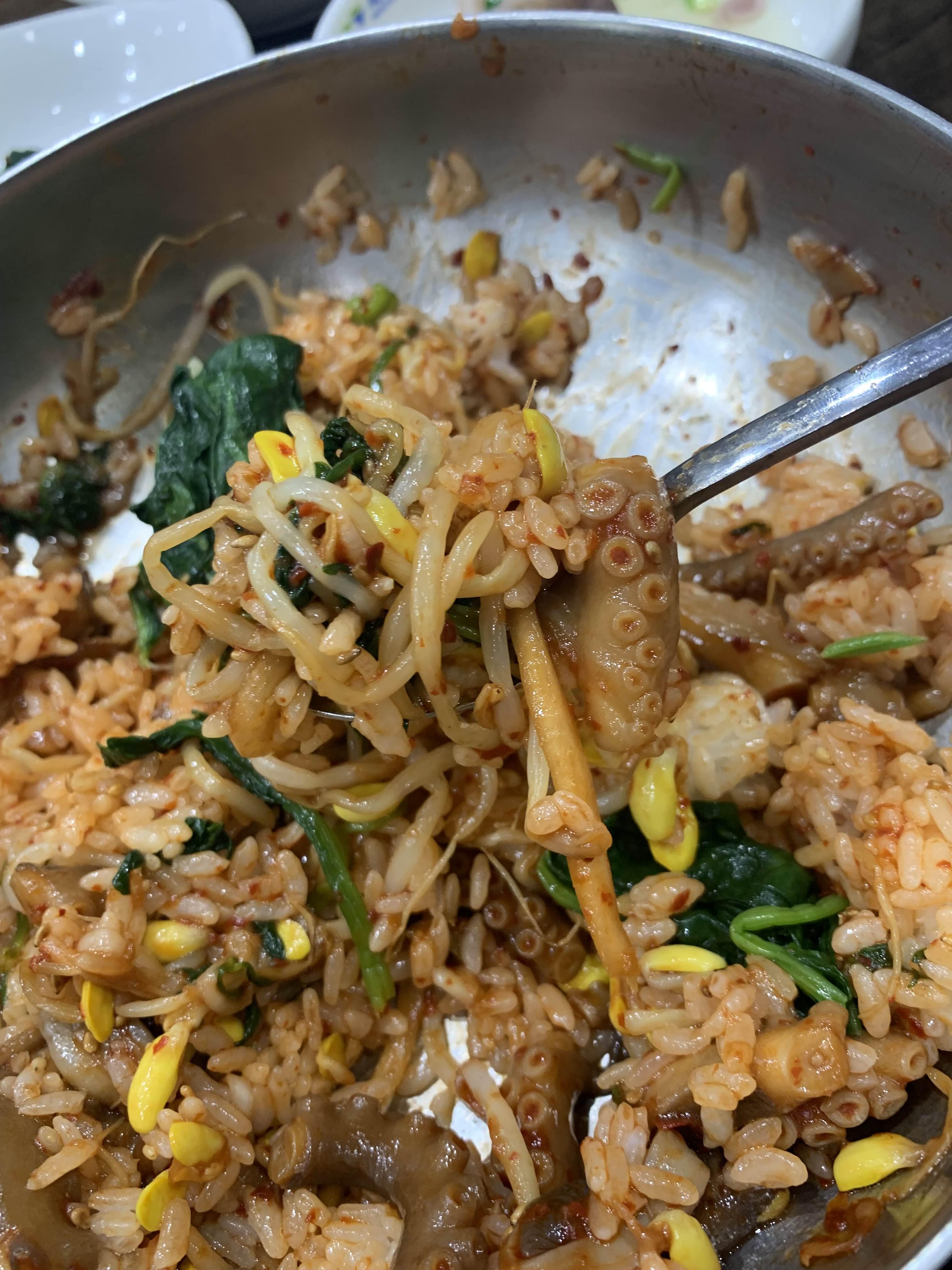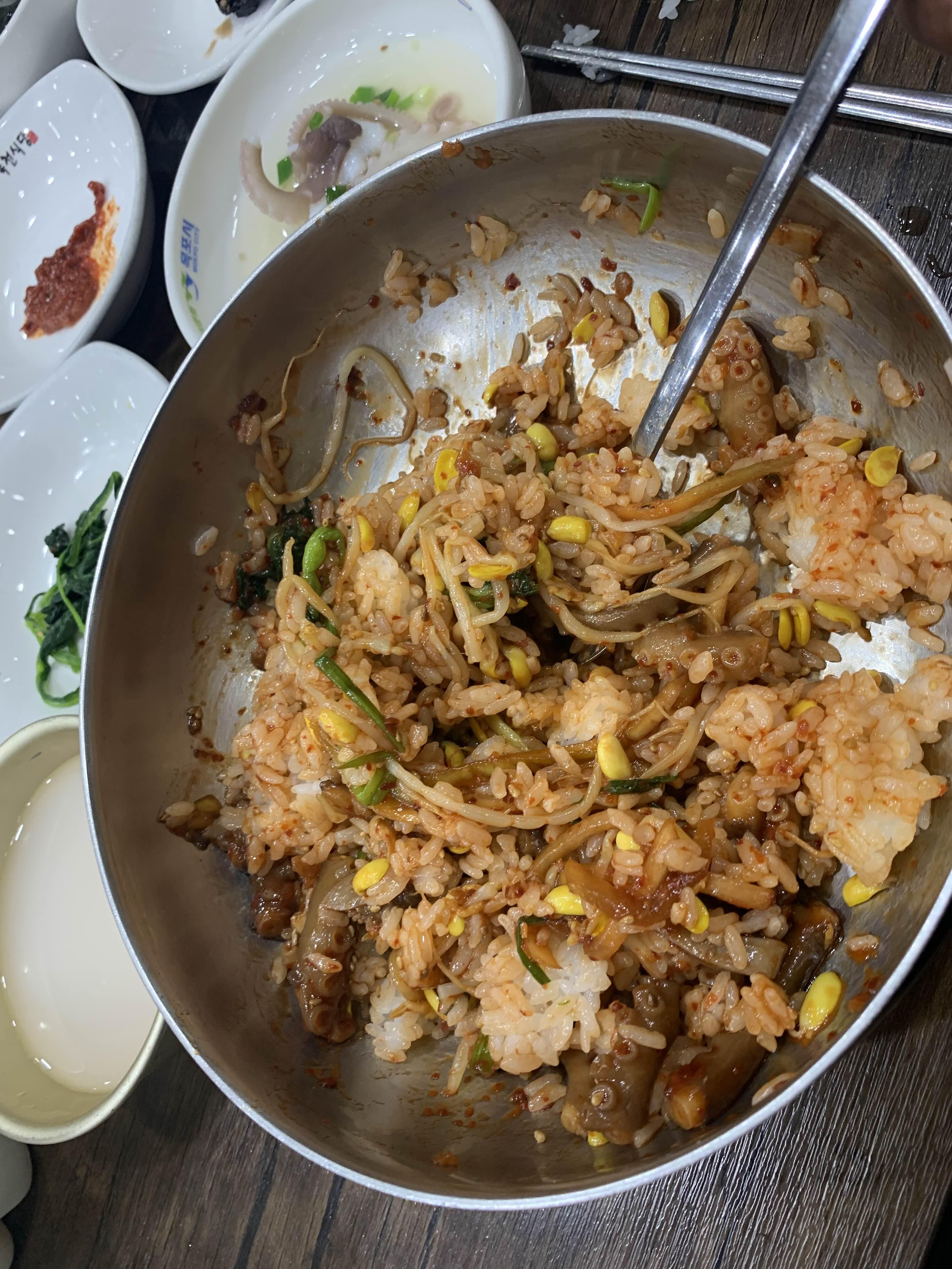 비빔밥은 슥슥 비벼서 그냥 먹어주기! 비빔밥만 주문한 테이블은 된장국인가 시래깃국인가 국물이 나오던데... 연포탕을 주문해서 안 나왔나.....