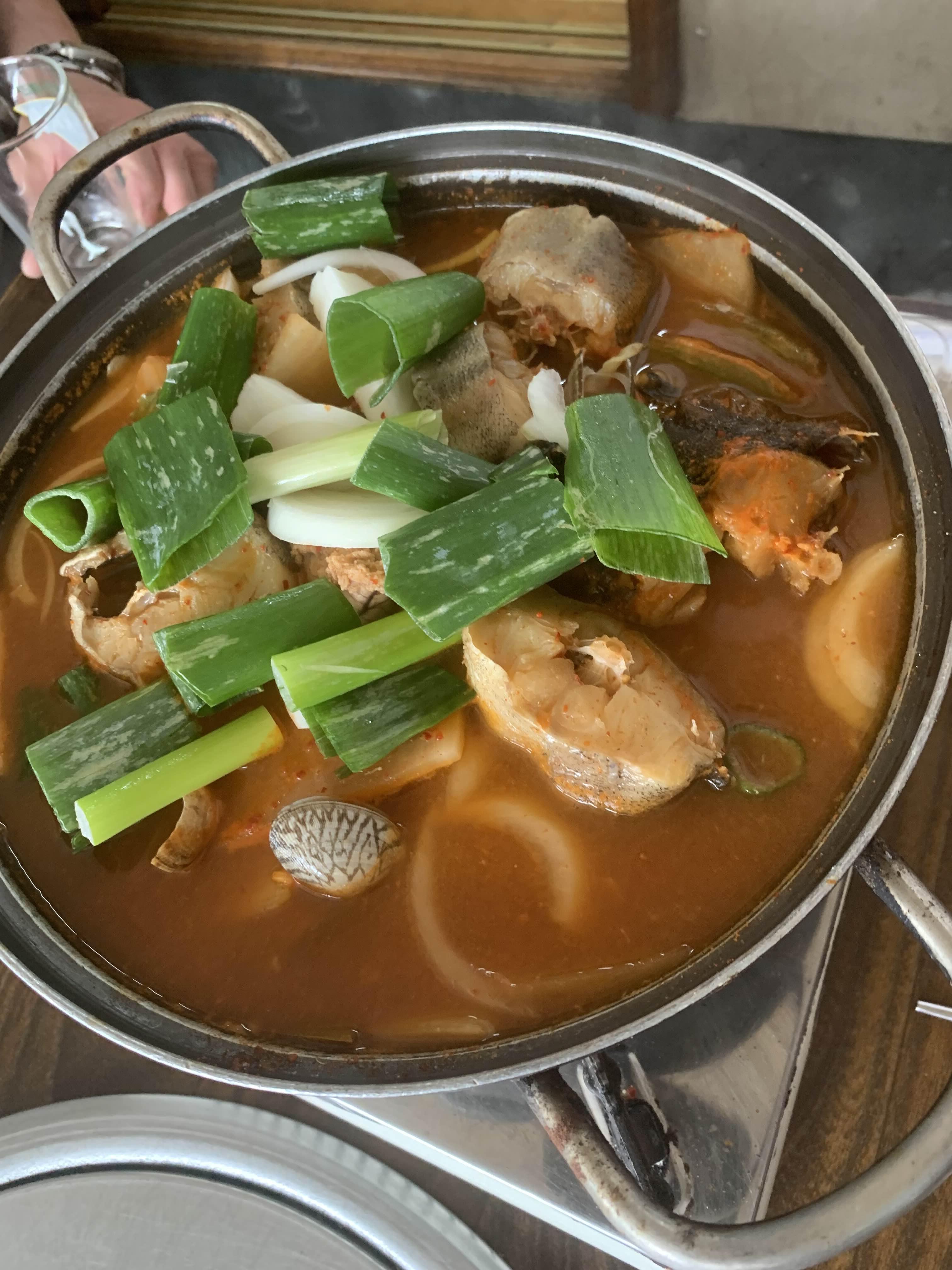 월계수 잎이 들어간 동태찌개! 한방 느낌의 맛을 느낄 수 있는 국물이었습니다. 어르신들 입맛에는 좋아할 만한 월계 수향인데... 저에게는 좀 아닌 맛이라...^^