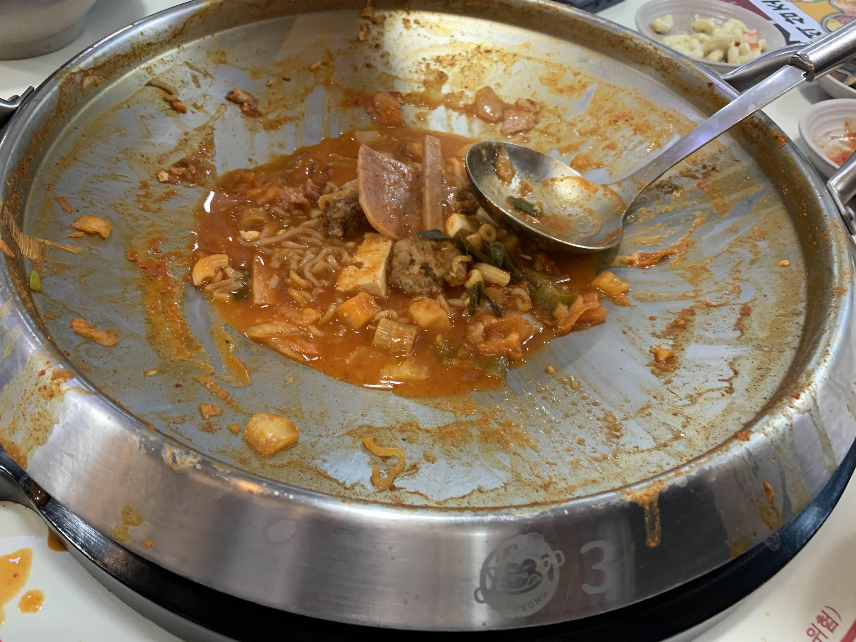 후기글을 남기려고 사진을 찾아보니... 사진을 많이 찍지를 못했네요.ㅎㅎ 먹는데 정신이 팔려서;;; 기본 부대찌개와 비교해서... 딱히 맛의 변화가 크지 않더군요. 기본 부대찌개에 라면 넣어서 먹는 게 오히려 가성비는 좋을 듯하더군요. 한 박스 테이크에서도 국물이 우려 나와야 하는데... 함박스테이크를 반 잘라보니, 국물이 스며들지 않을 정도로 단단하더군요.