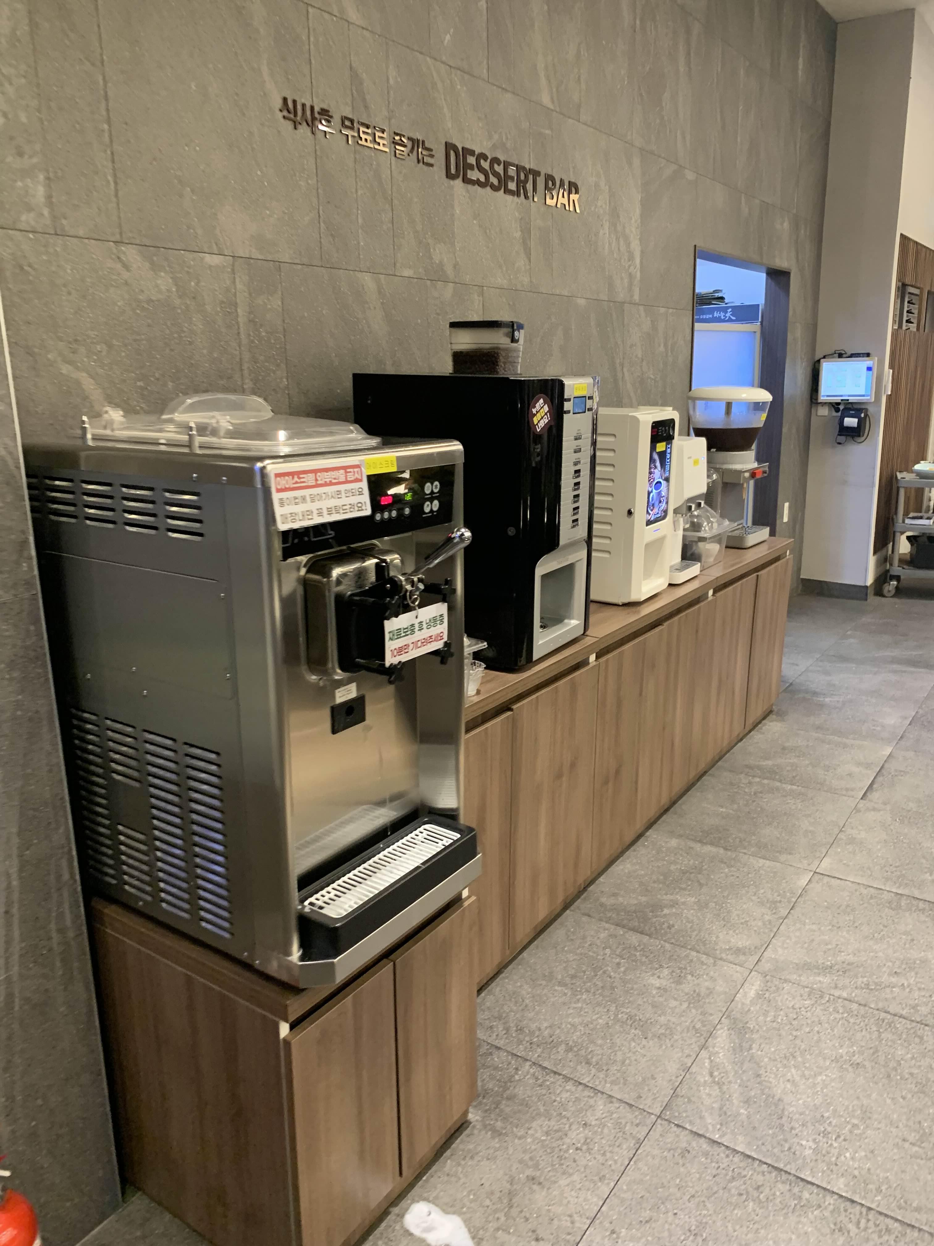 디저트 코너에는 커피와 아이스크림이 마련되어 있는데... 손님이 많아서 아이스크림은 한동안 준비 중이라는 안내가 되어 있더군요. 아이들이 놀 수 있는 놀이터도 크게 마련되어서, 많은 손님들이 방문하시는 거 같더군요.