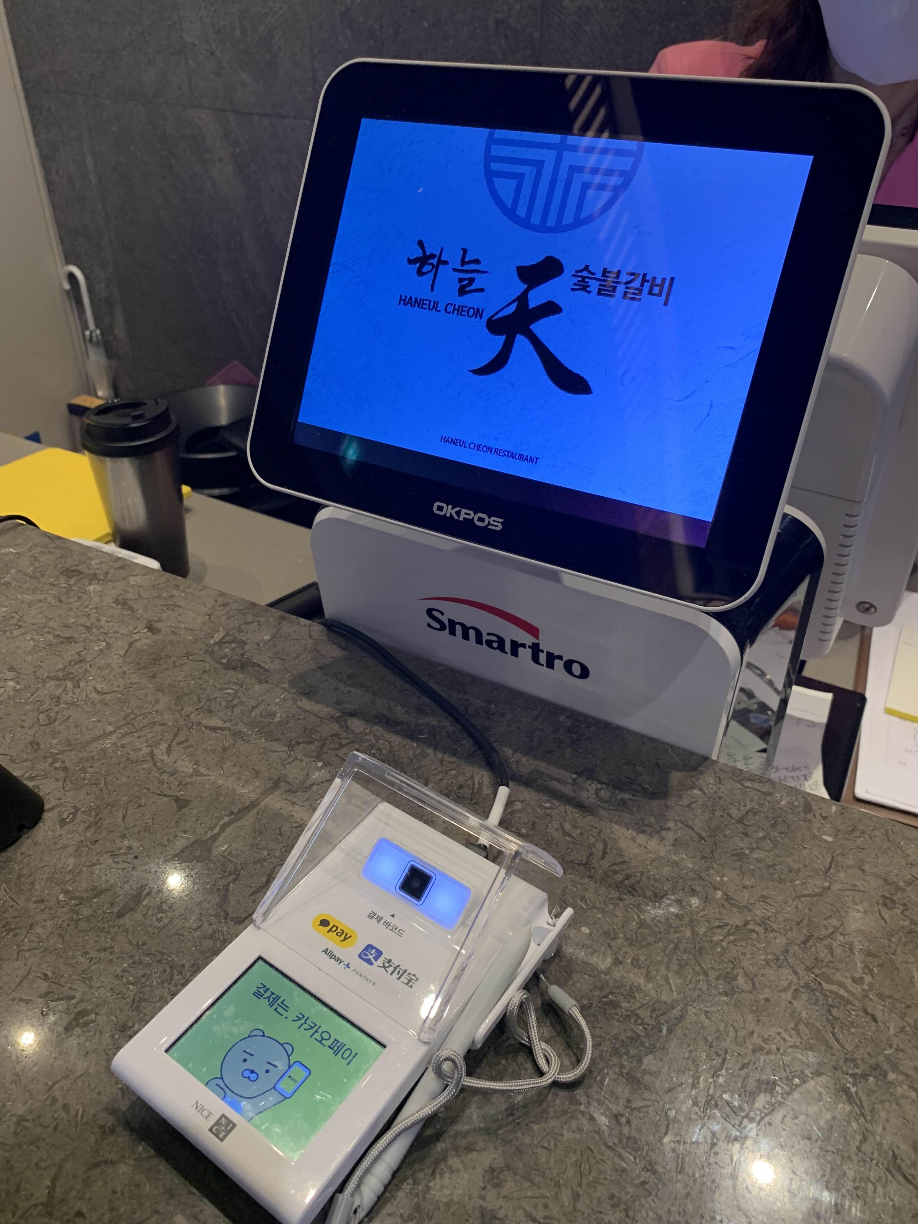 후식으로 냉면을 주문해 보았습니다. 냉면이 로봇이 배달하는데.... 냉면을 받아 들고 확인을 눌러주는 시스템 같더군요. 그래서 냉면을 받고서 확인 버튼을 눌러보지 않았습니다. 로봇이 알어서 확인하고 이동하는지.... 한참을 버턴을 안 눌렀더니....... 다른 테이블 손님이 냉면 주문하셨나, 오셔서 누르시더군요.ㅎㅎ