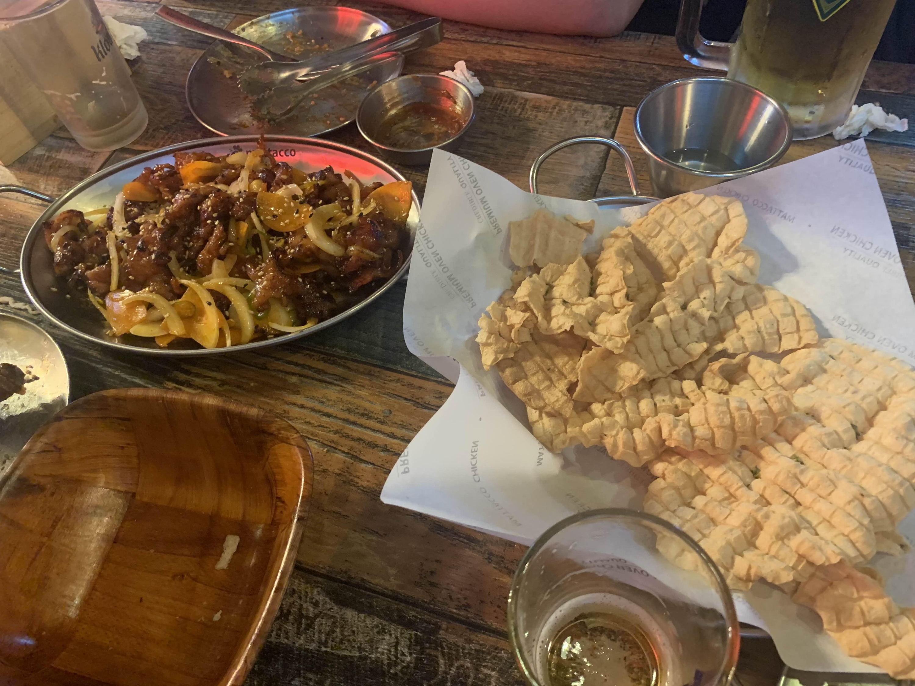양념치킨도 다 먹고서 추가 메뉴로 닭발을 주문해 보았습니다. ㅎㅎ 매콤한 닭발이 의외로 맛이 좋더군요. 닭발 하나에 맥주 두 목음 마셔야 할 정도의 매콤함!! 옆에 나오는 음식은 서비스!!! 3명이 안주를 3개 주문해서 먹으니.... 서비스를 하나 주셨네요.ㅎㅎ