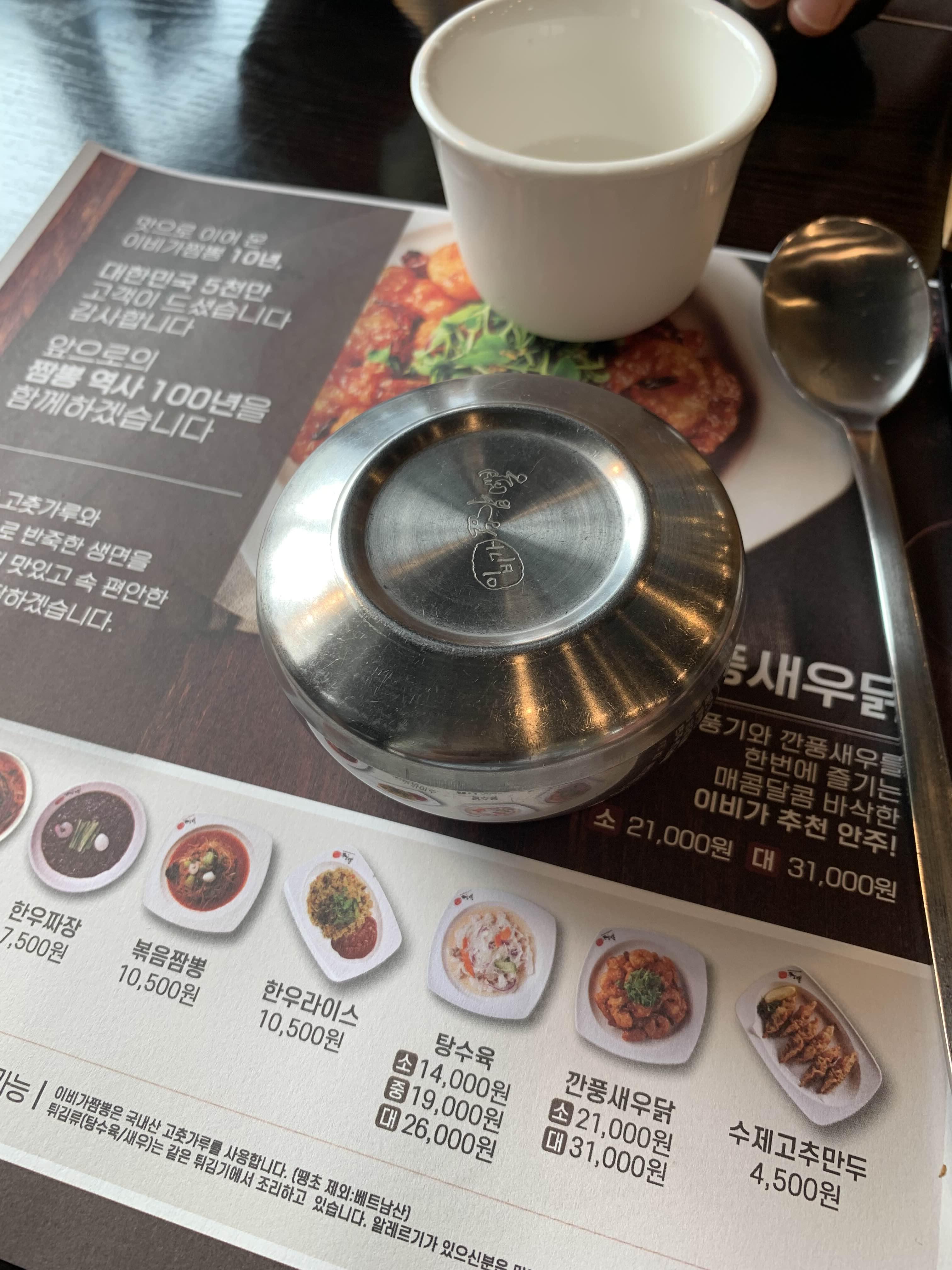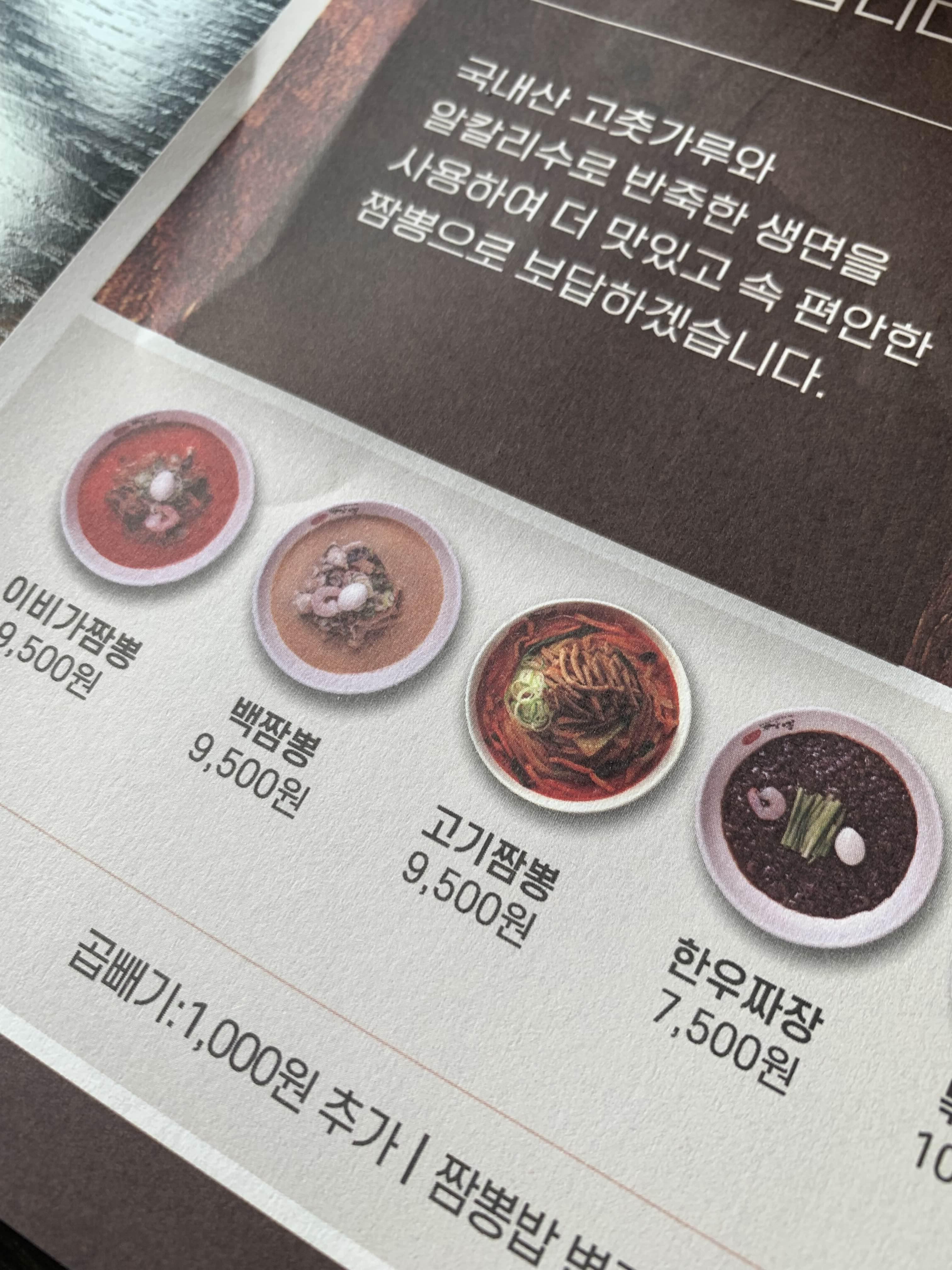 메뉴판 이미지의 고기 짬뽕에는 고기가 잡채 모양으로 기다랗게 들어가 있는데.... 실제 나온 고기 짬뽕의 고기는 간 고기가 올려져 있더군요.ㅎㅎ