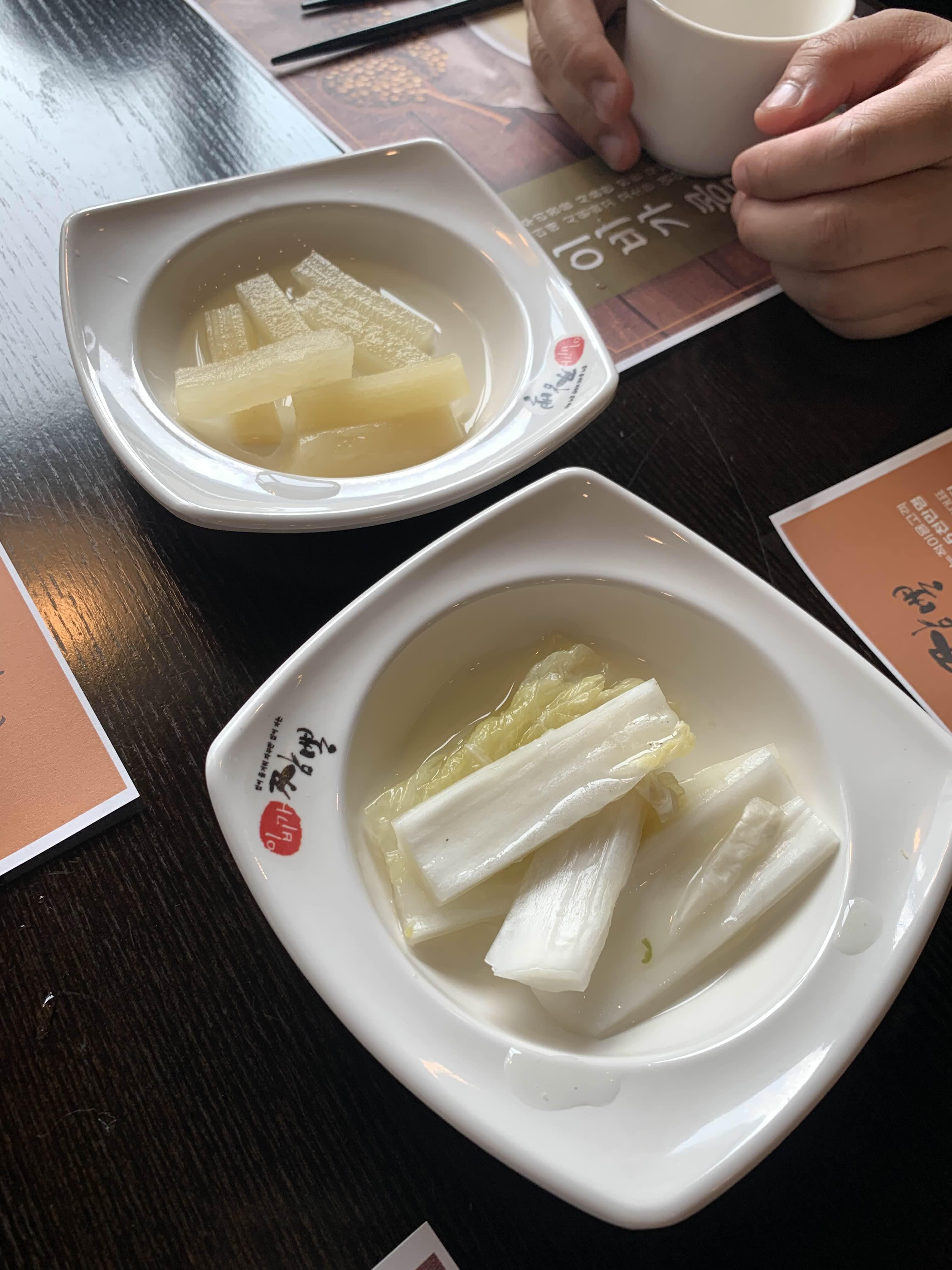 음식을 주문하고 잠시 후 밑반찬으로 백 단무지와 백김치가 나오더군요. 단무지는 이런 기다란 것보다는 얇은 단무지가 중식 먹기에는 더 좋더군요. 잠시 후 메인 짬뽕이 안 나오고, 조그마한 공깃밥이 나오더군요.