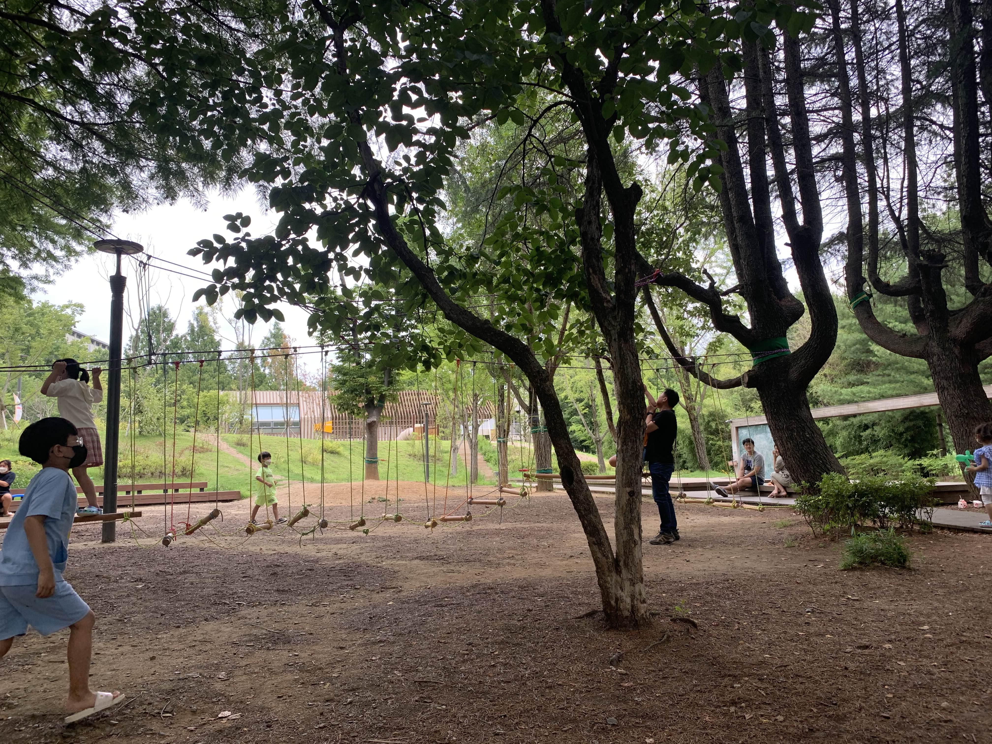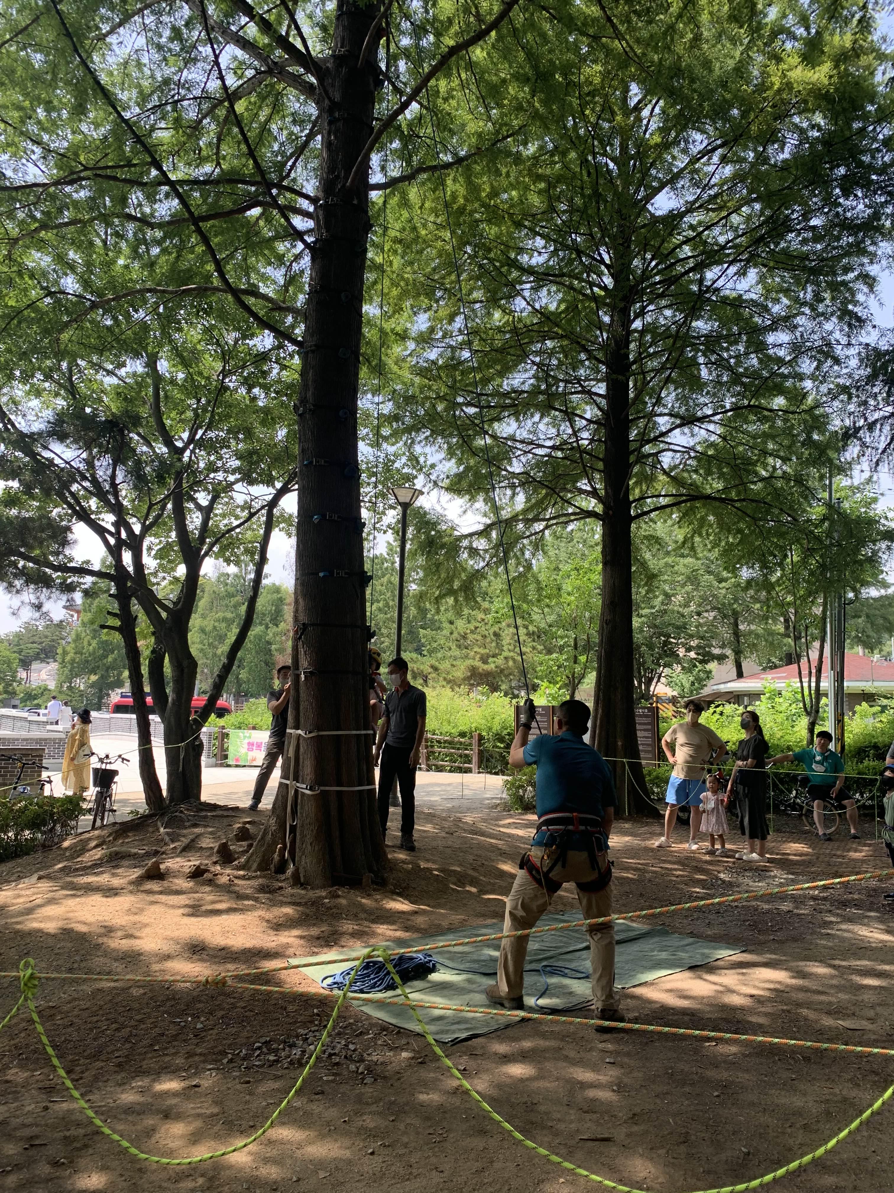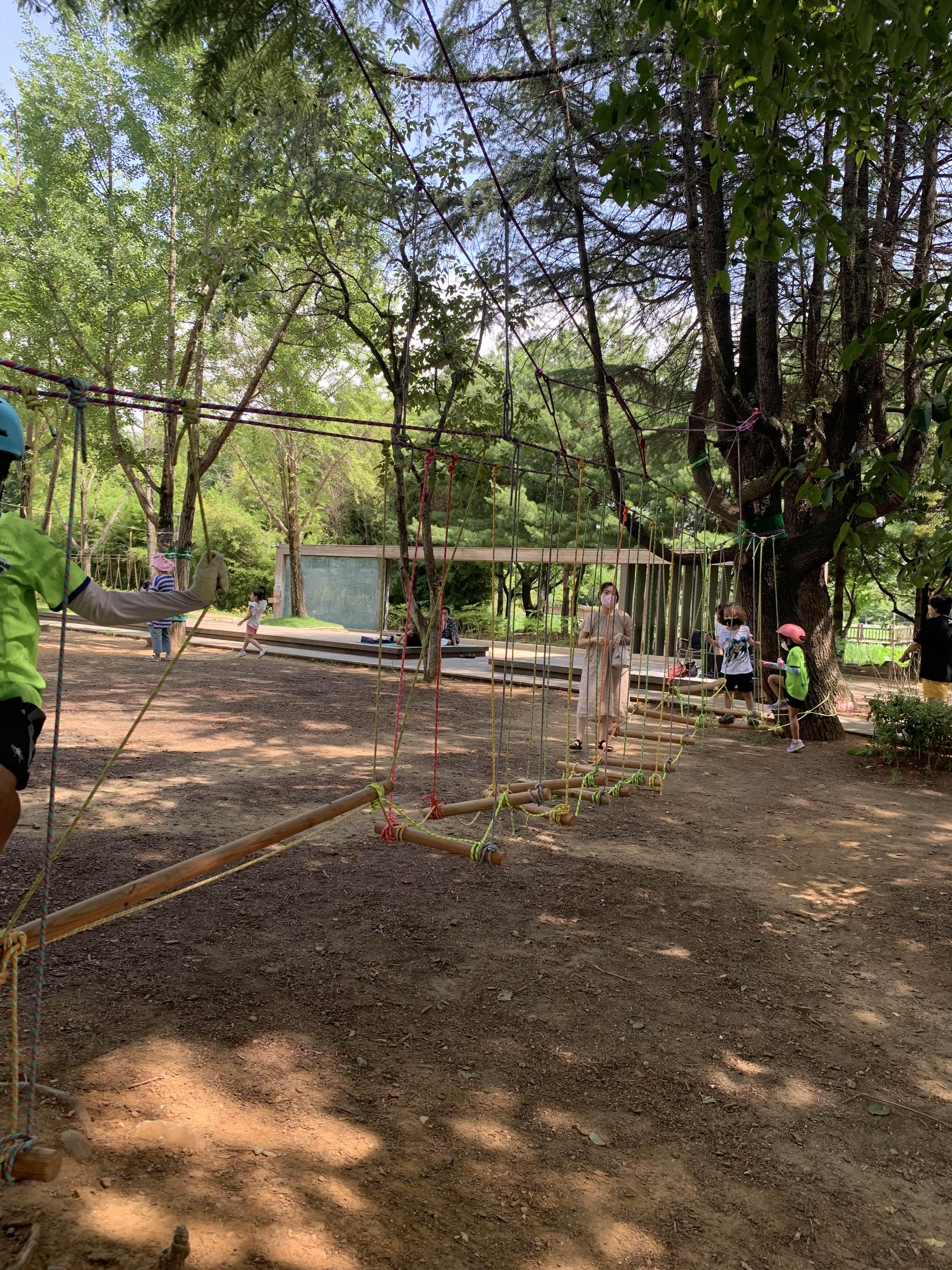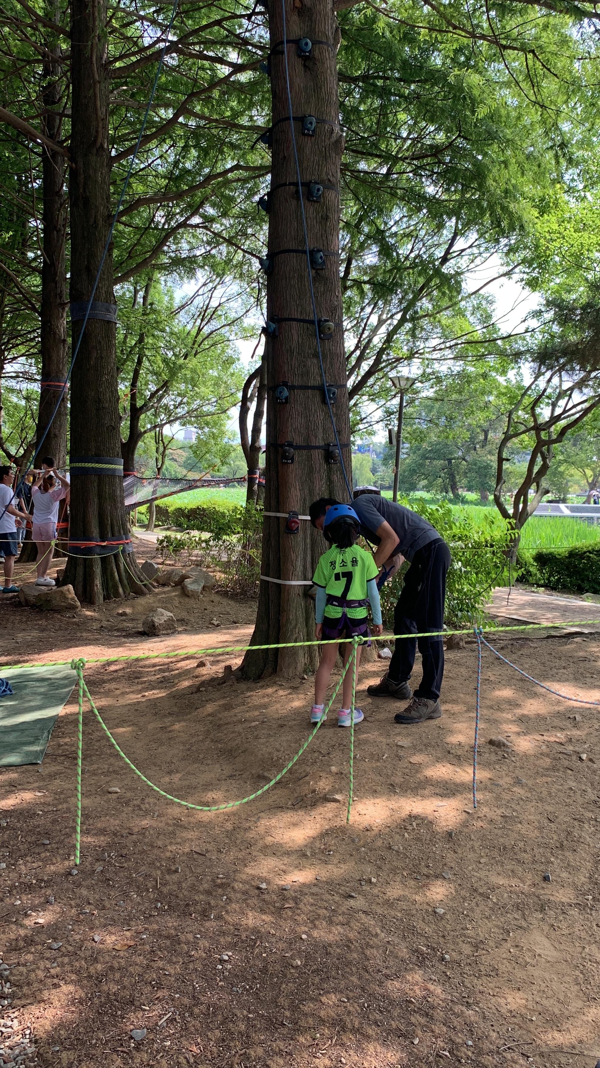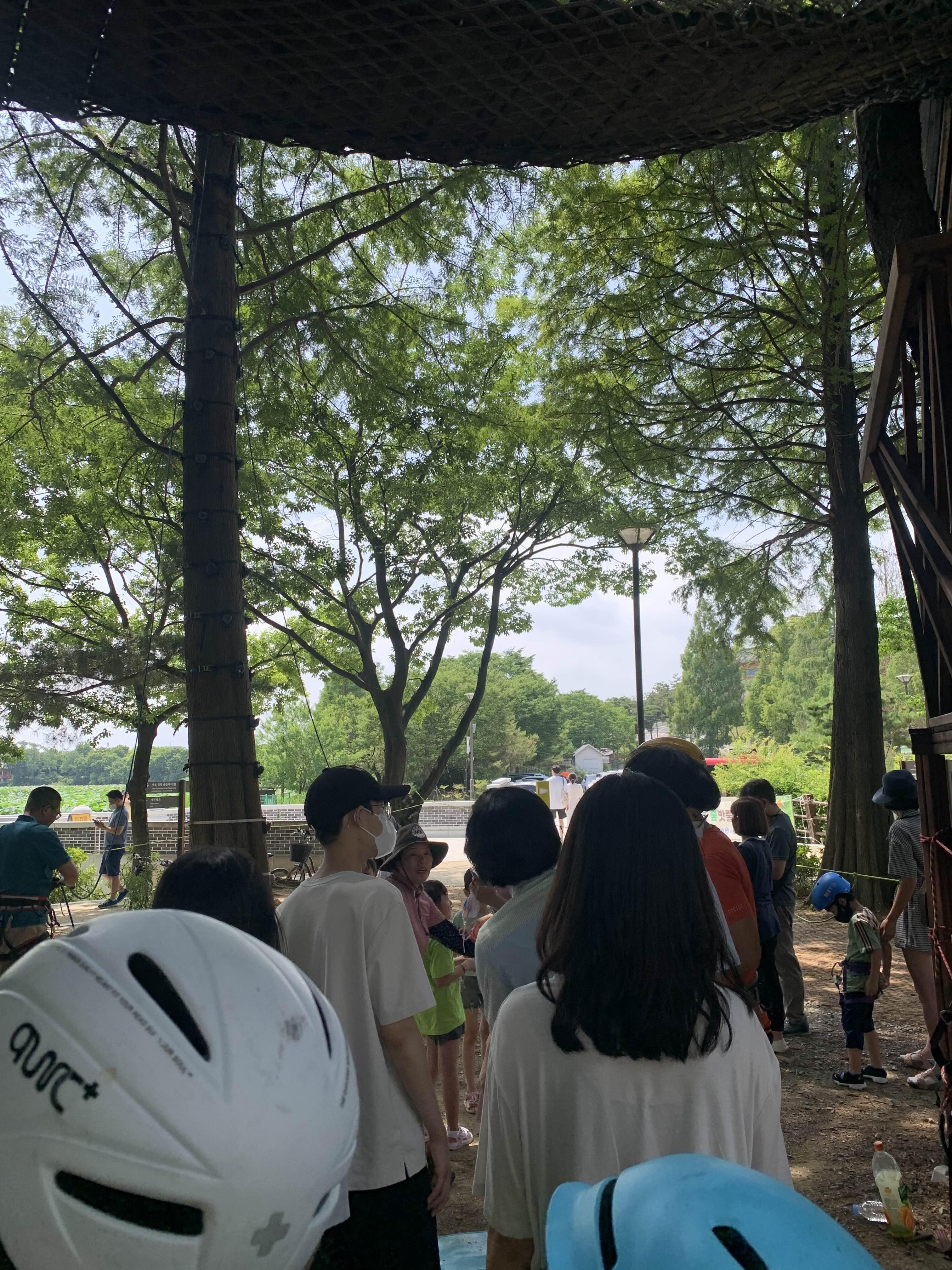 체험하기 위해 아이들이 줄을 서야 하는데.... 성인들도 줄을 많이 서서 체험하고 있었다. ㅋㅋㅋ 나무를 올라가는 높이가 아이들 소꿉놀이 수준이 아니다 보니, 성인들도 도전하는 체험장 분위기였다.ㅋㅋ
