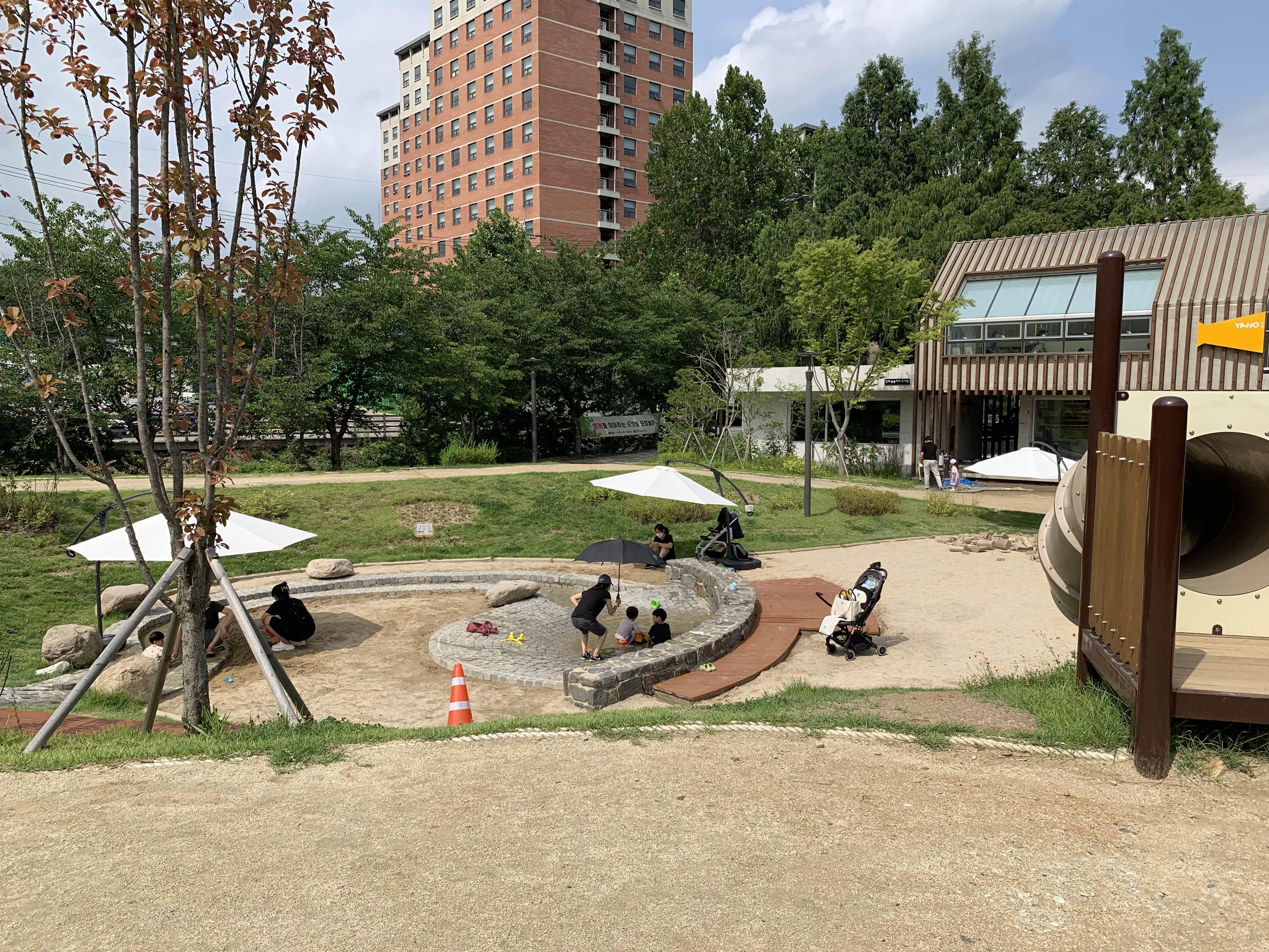 나에게는 건축물이 특이한 장소를 좋아한다. 덕진공원 야호 놀이터는 건축물도 마음에 들지만, 외부 조경이 특히 더 좋아한다. 놀이터의 중간의 언덕! 이 언덕으로 도서관(교육장) 물놀이 체험공간과 나무 놀이터가 공간이 구분된다. 동일해 보이지만, 아이들이 체험하는 공간은 전혀 다른 공간으로 인식해... 아이들이 이 공간 저공 간 이도 하며 놀기에 좋은 곳이다.