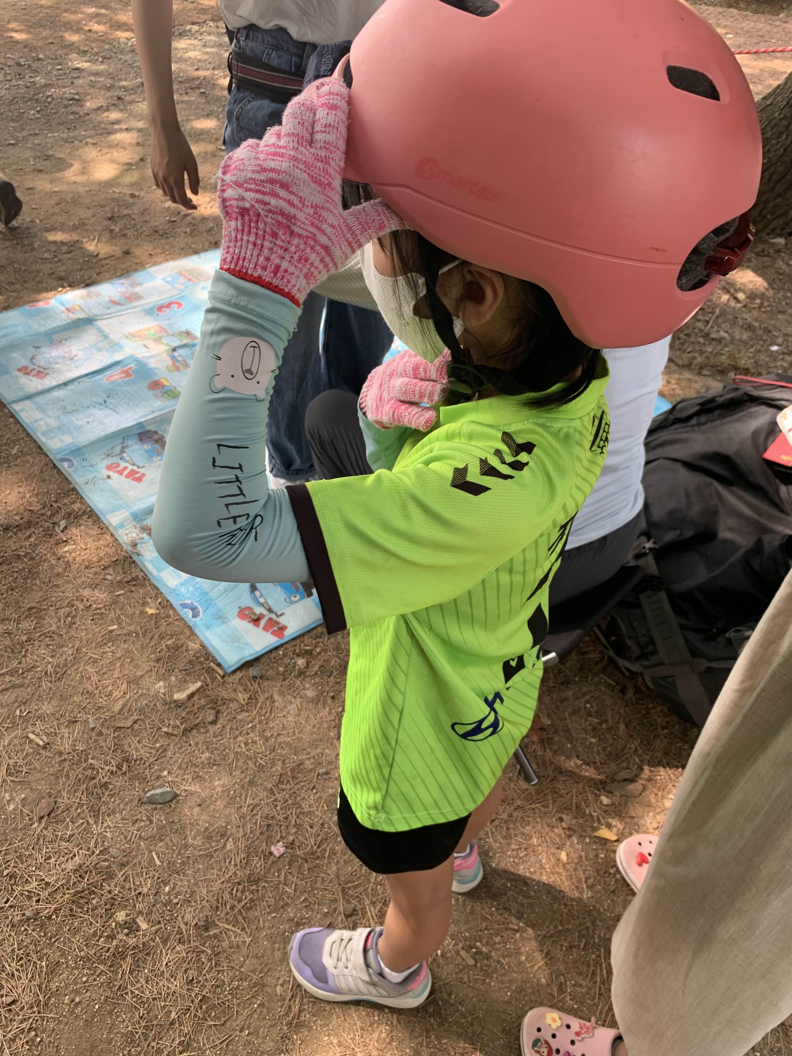 보호구를 챙겨서 작은 아이가 먼저 나무에 오른다, 잘 오른다. 이 정도 높이에 오르면 무섭다고 할 텐데... 나무 위에 종과 사탕을 가지고 내려온다.