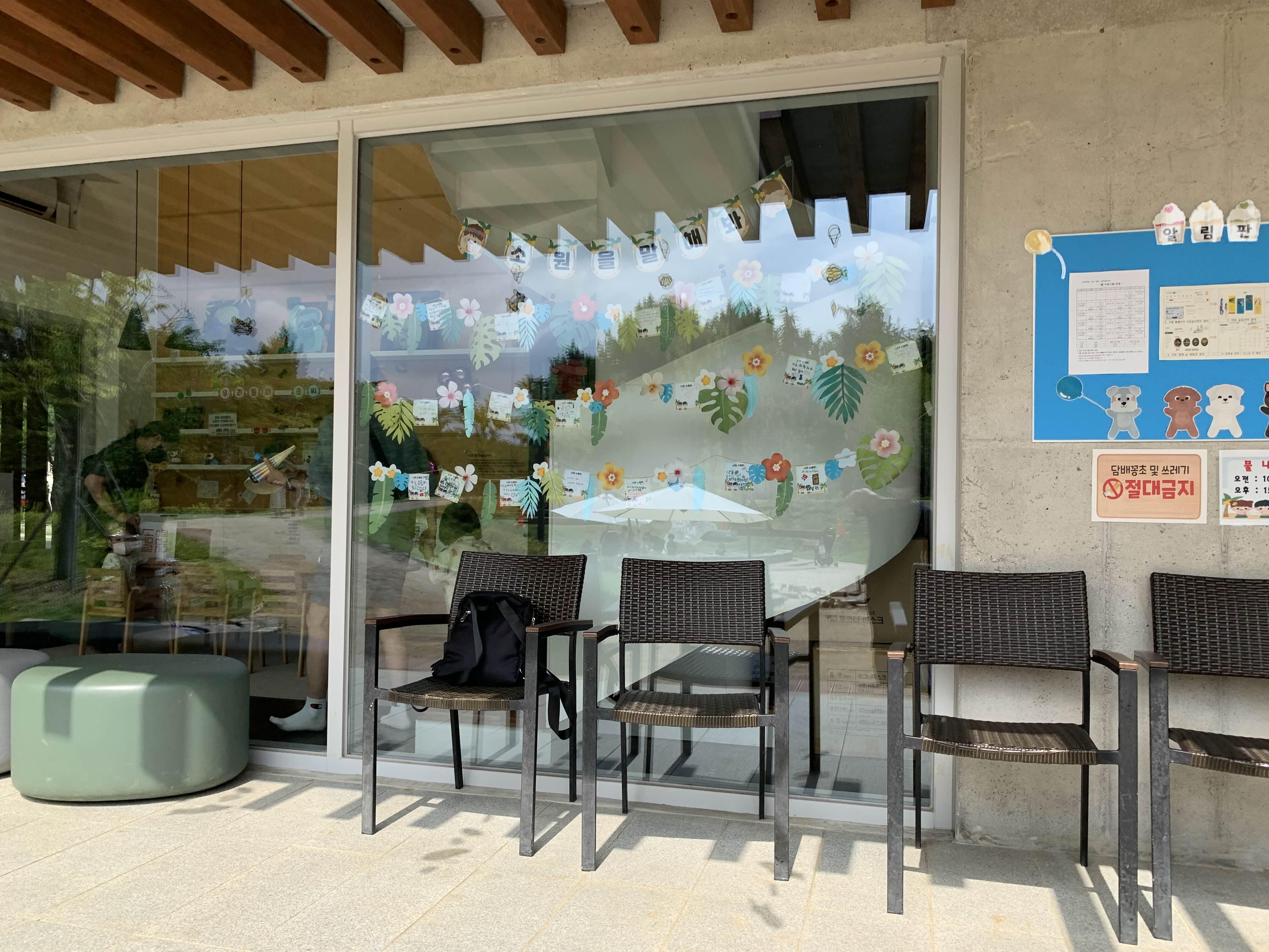 평소 도서관의 에어컨 바람을 맞으며 아이들 책을 읽었던 공간인데... 오늘은 숲 속 놀이터에 나무 클라이밍 체험을 할 수 있어서.... 체험 공간으로 향했다.