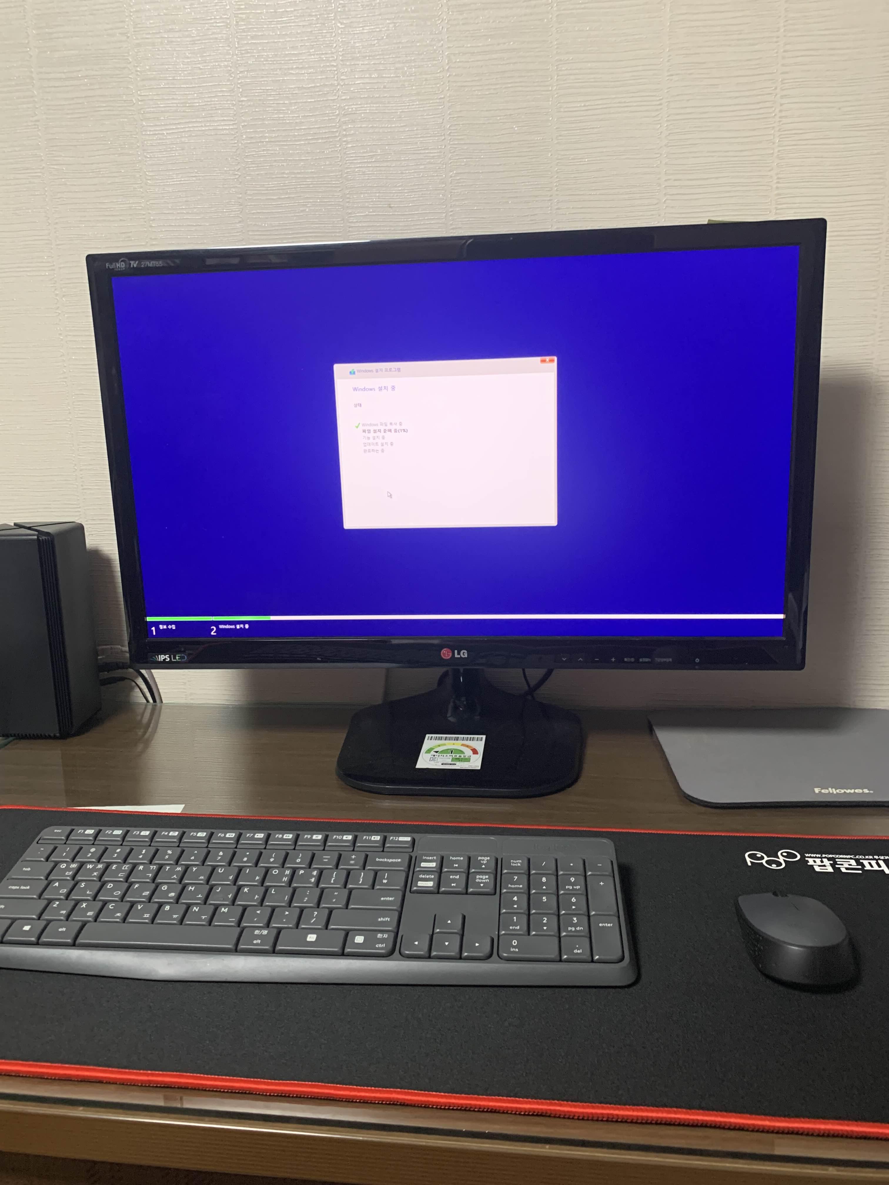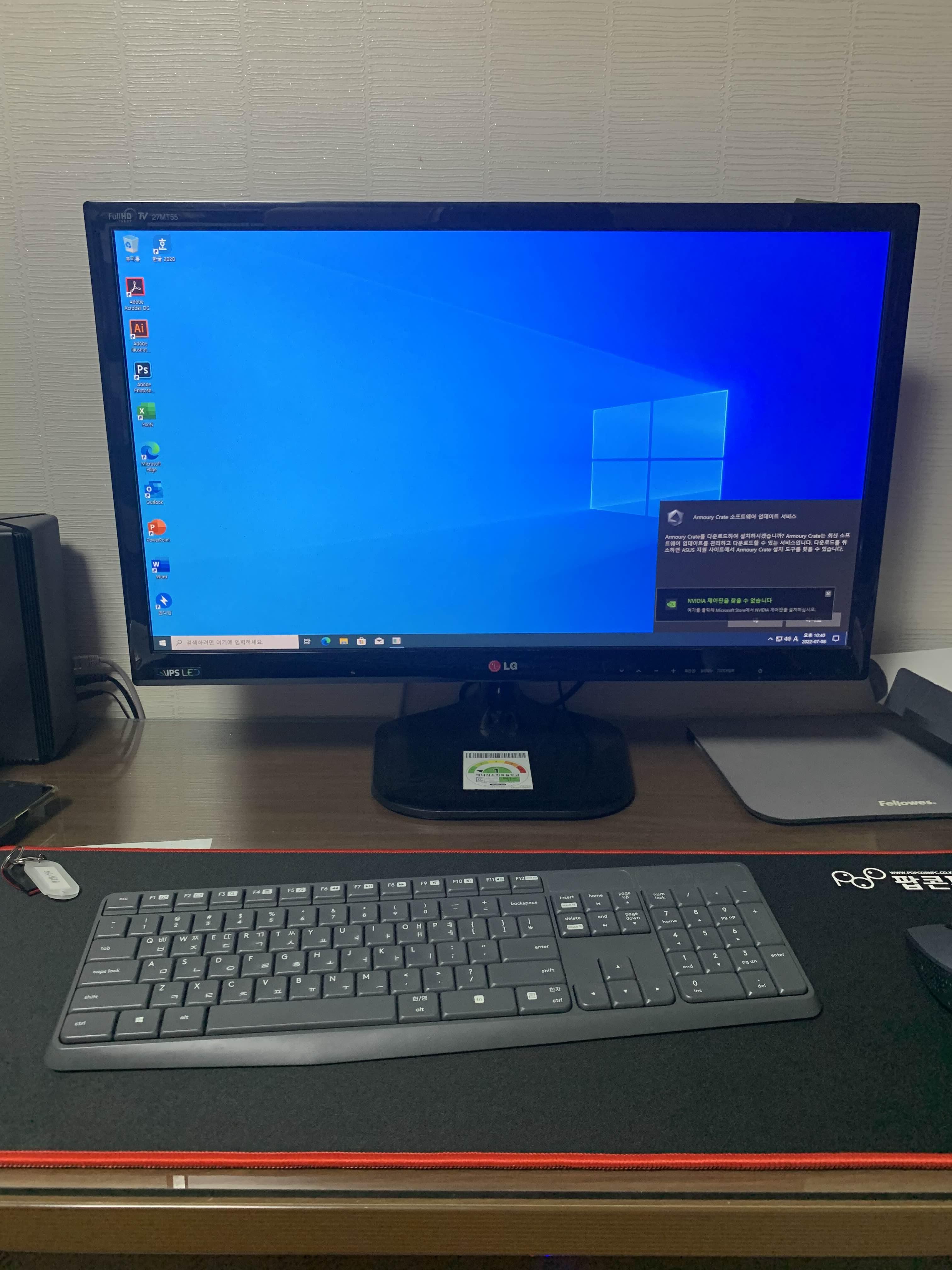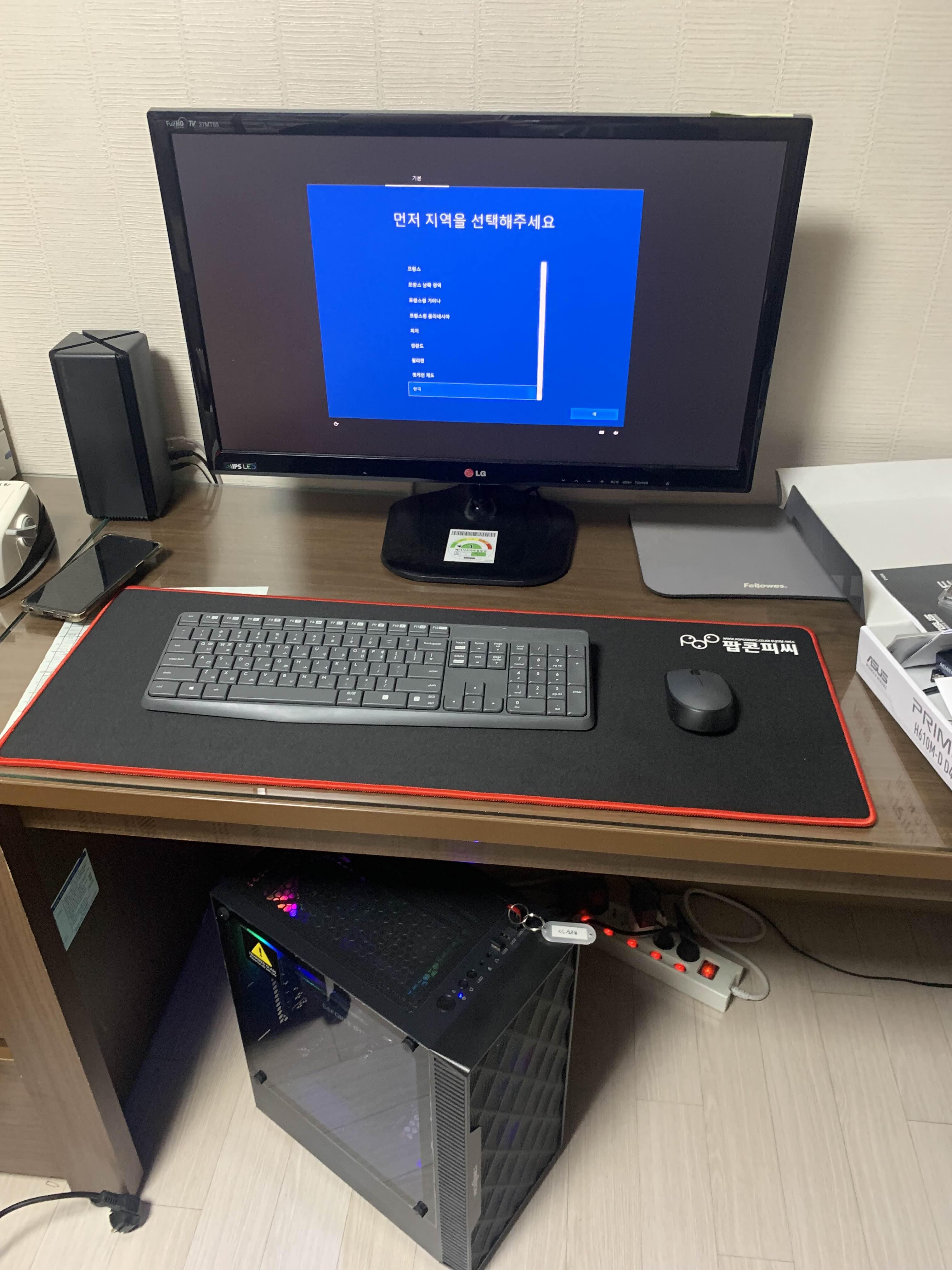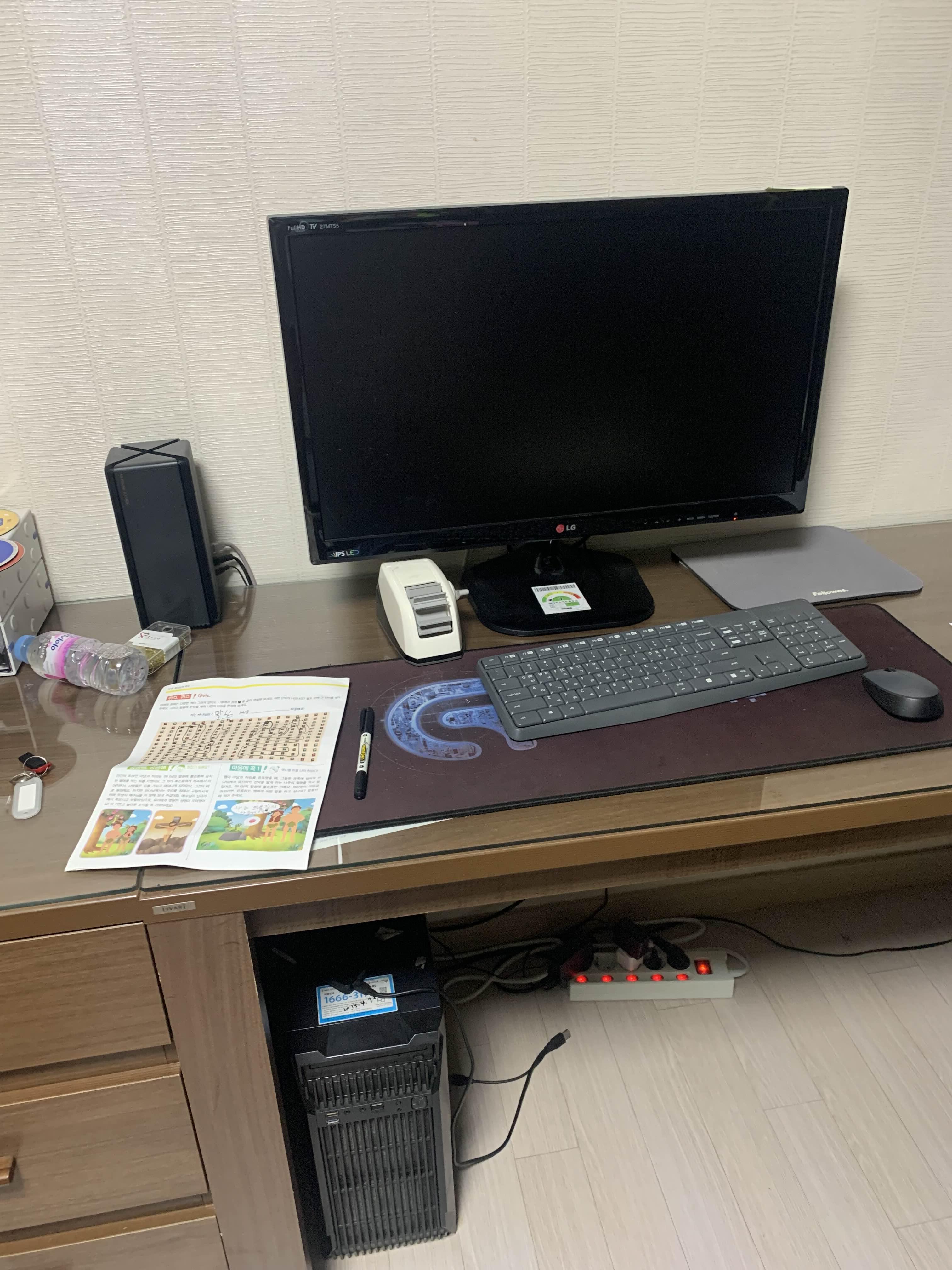 기존 사무용 컴퓨터와 비교해 보니 본체 사이즈가 많이 커졌네요. 그리고, 컴퓨터 본체에서 LED 불빛이 나오니... 좀 화려한 느낌이랄까? 피시방 느낌이 나서 분위기가 좀 살아나더군요. ㅎㅎ