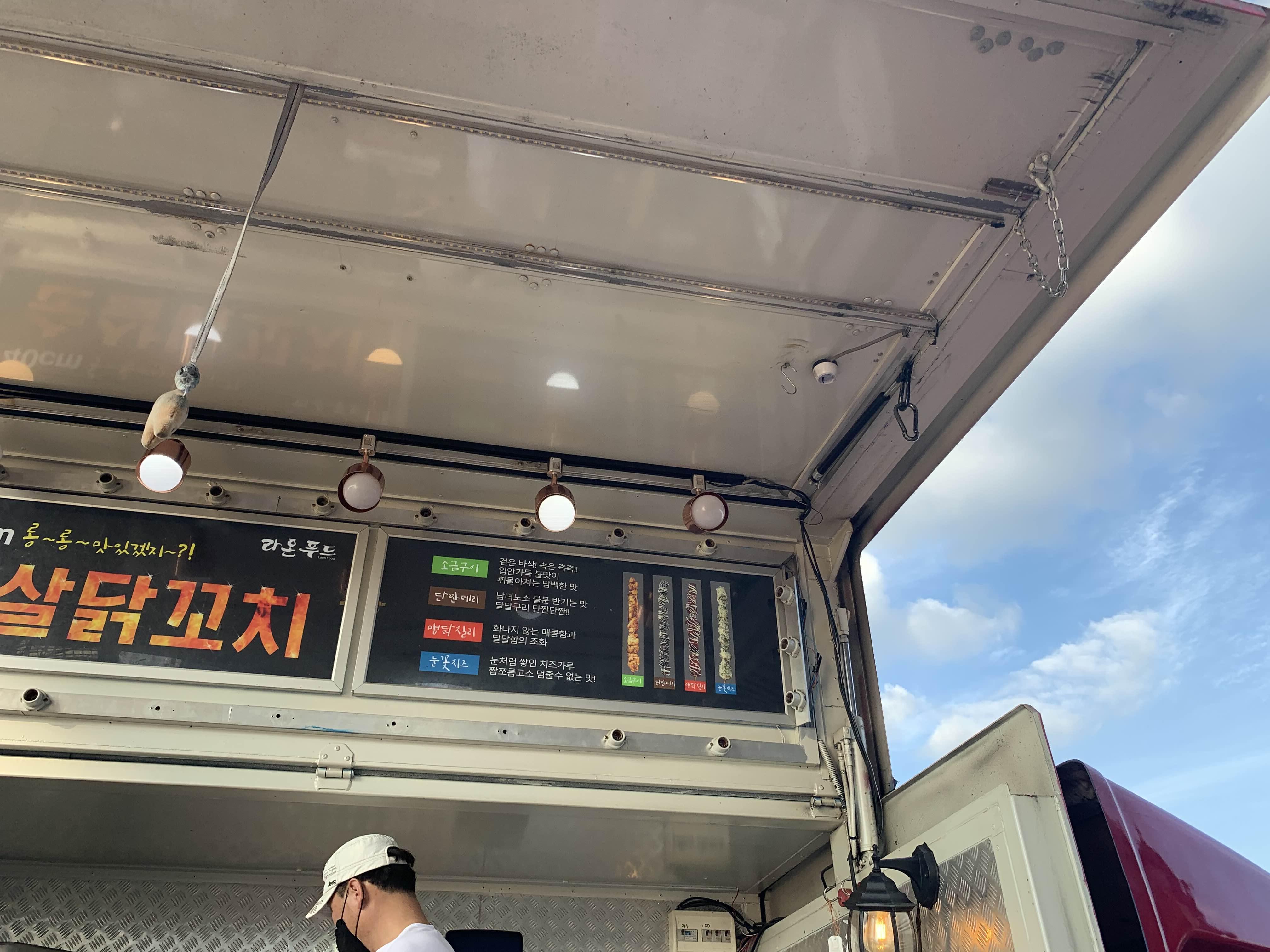 오랜만에 등장한 푸드트럭! 3개의 차량이 축구장에 등장했습니다. 순살 닭꼬치, 스테이크, 소고기 불초밥!!! 가볍게 간식이나 먹을 겸 아이와 방문해 보았습니다. 스테이크는 12,000원....... 간식으로 먹기에는 가격이;;;; 간식으로 만만한 닭꼬치! 1개에 5,000원으로... 물가가 많이 올랐으니... 5,000원이면 무난하게 느껴지는 가격? 때이네요.ㅎㅎ
