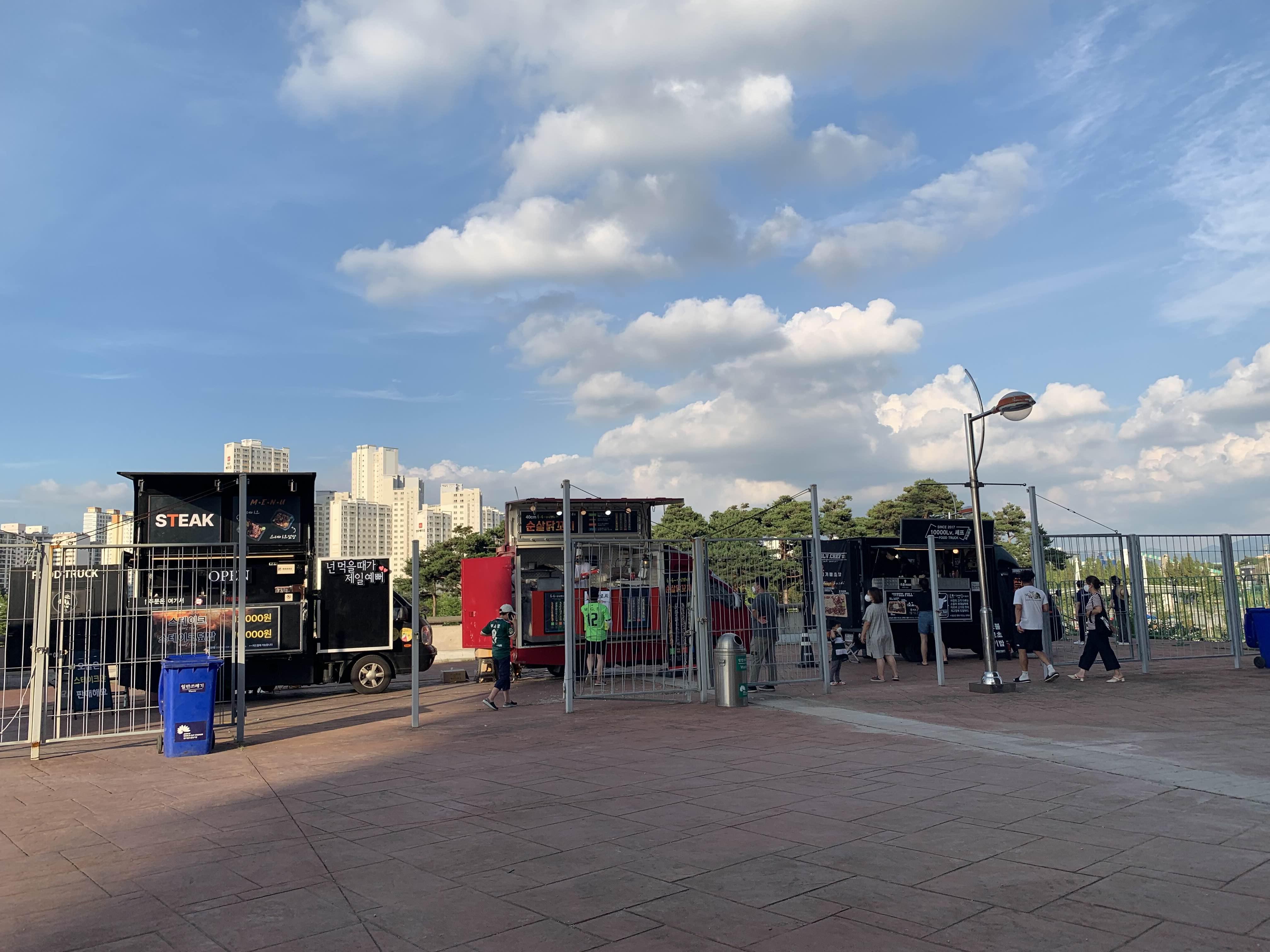 코로나 이전에는 축구 시작 1시간 전부터 많은 이벤트를 진행하였으나... 코로나로 인하여 많은 행사는 온데간데 없어졌습니다. 이제 코로나의 시기가 한풀 꺾인 시점!!! 예전의 축구장의 모습을 찾아가고 있습니다. 예전 모습 중 하나인 푸드트럭이 축구장에 등장했습니다.