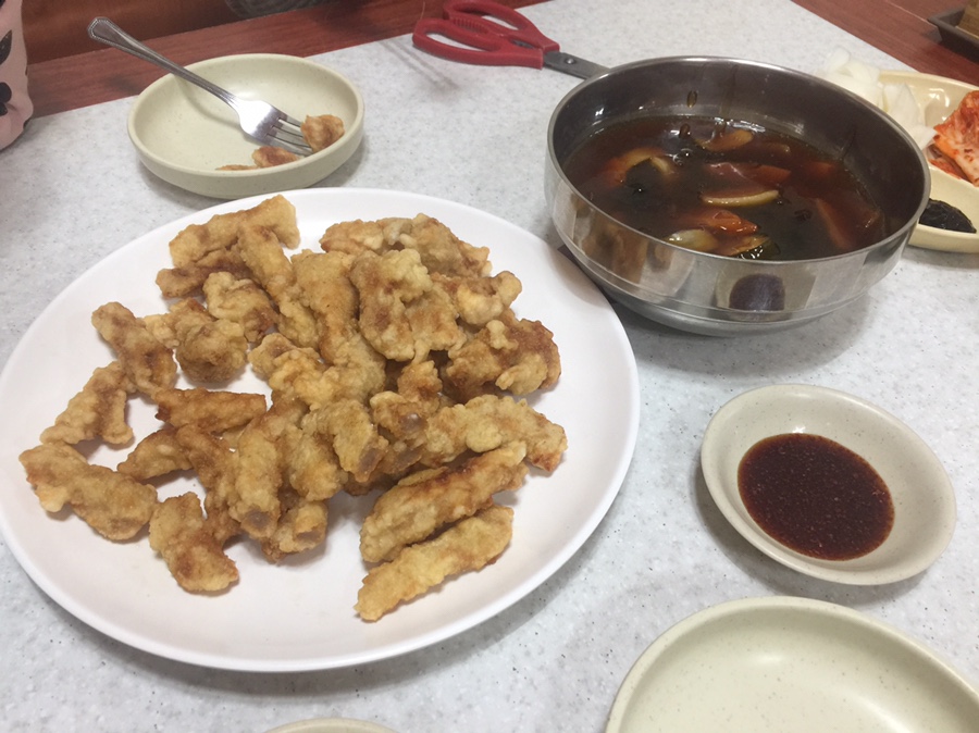 우선 탕수육부터 나오는데...... 맛이 옛날 탕수육 생각이 납니다. 뭐라고 표현해야 할까요..... 좀 별로였네요. 탕수육은 남김없이 먹지만, 조금 남겼습니다. 여기는 탕수육이 맛있는 식당이 아니니.... 짬뽕에 기대를 걸어봅니다.