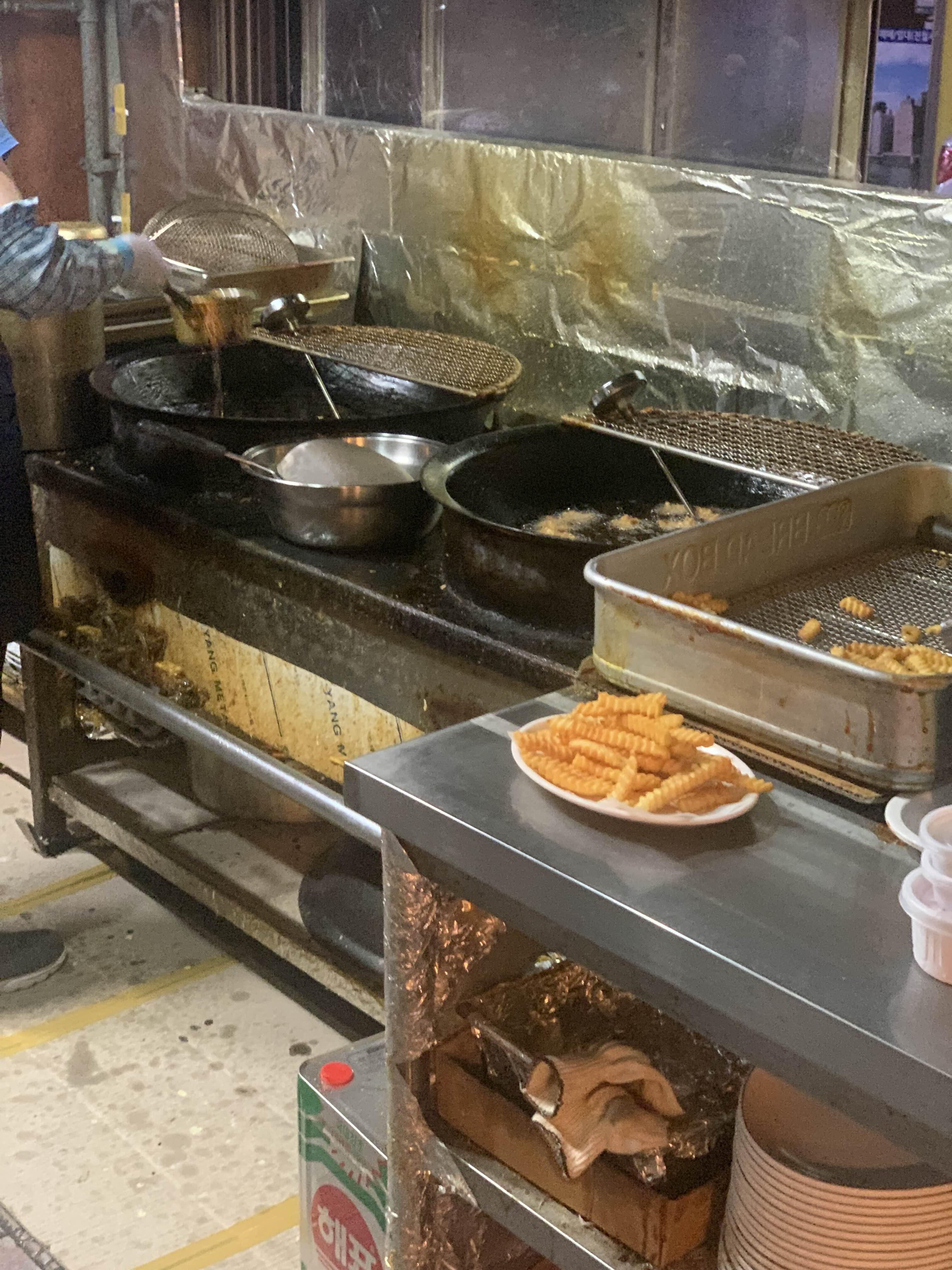 가마솥에 튀김 하면 더 맛있는 이유는.... 뜨거운 기름에 닭은 넣으면.... 기름양이 적거나, 기름솥이 열 손실이 많으면 적정 기름 온도가 나오지 않아 맛이 덜하는데, 가마솥은 기름양과 가마솥의 온도 유지가 일정하게 되니 바삭한 치킨을 유지하게 되죠.ㅎㅎ