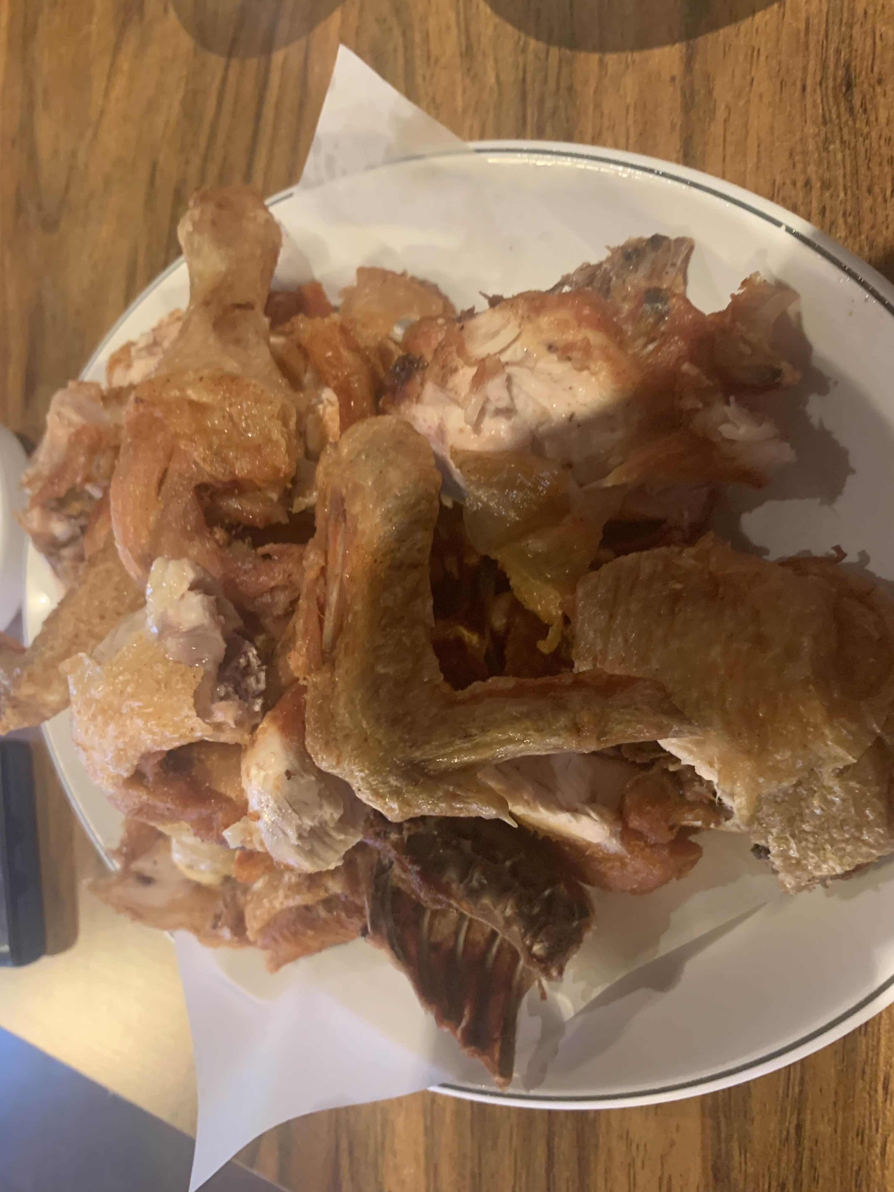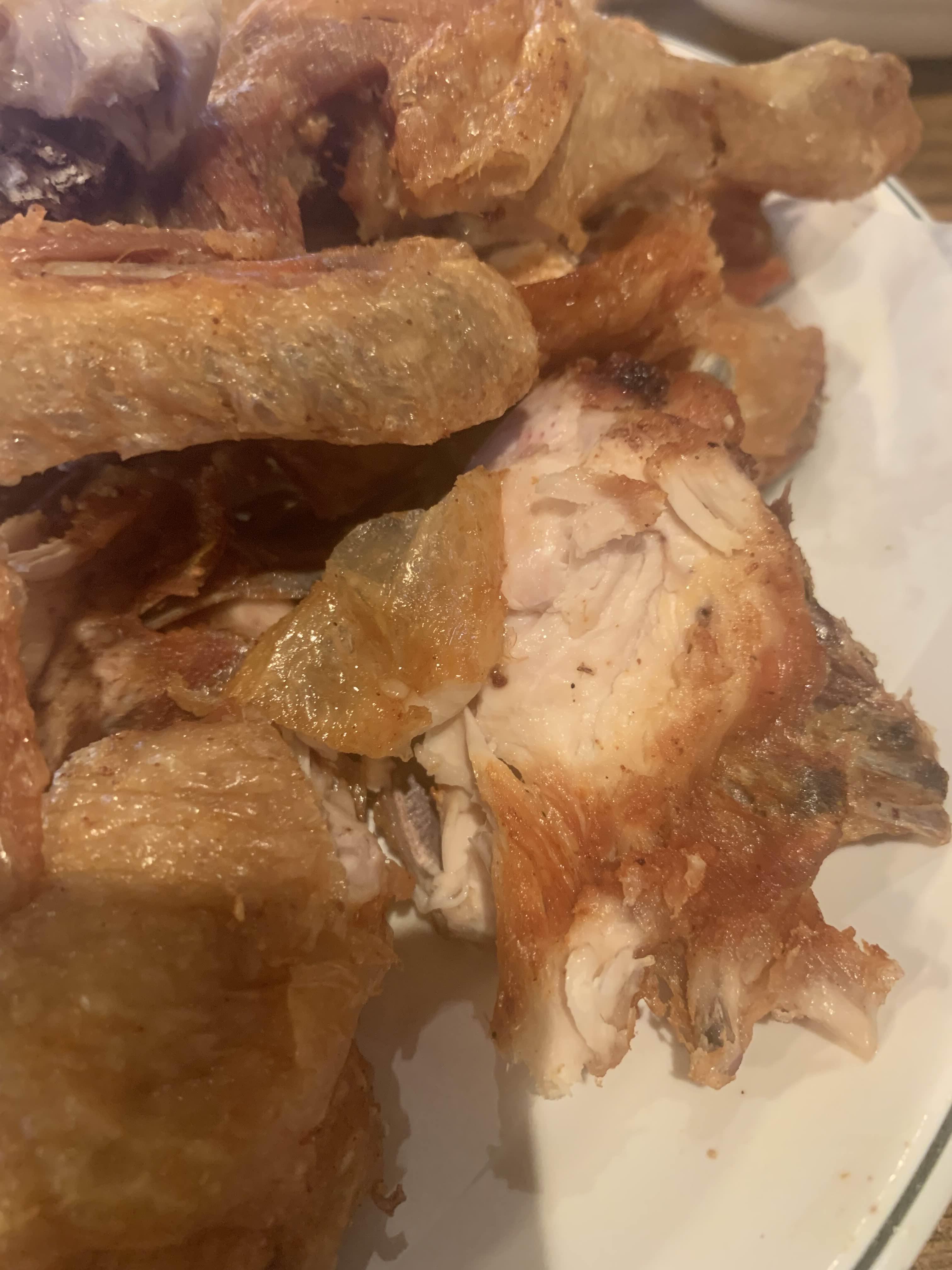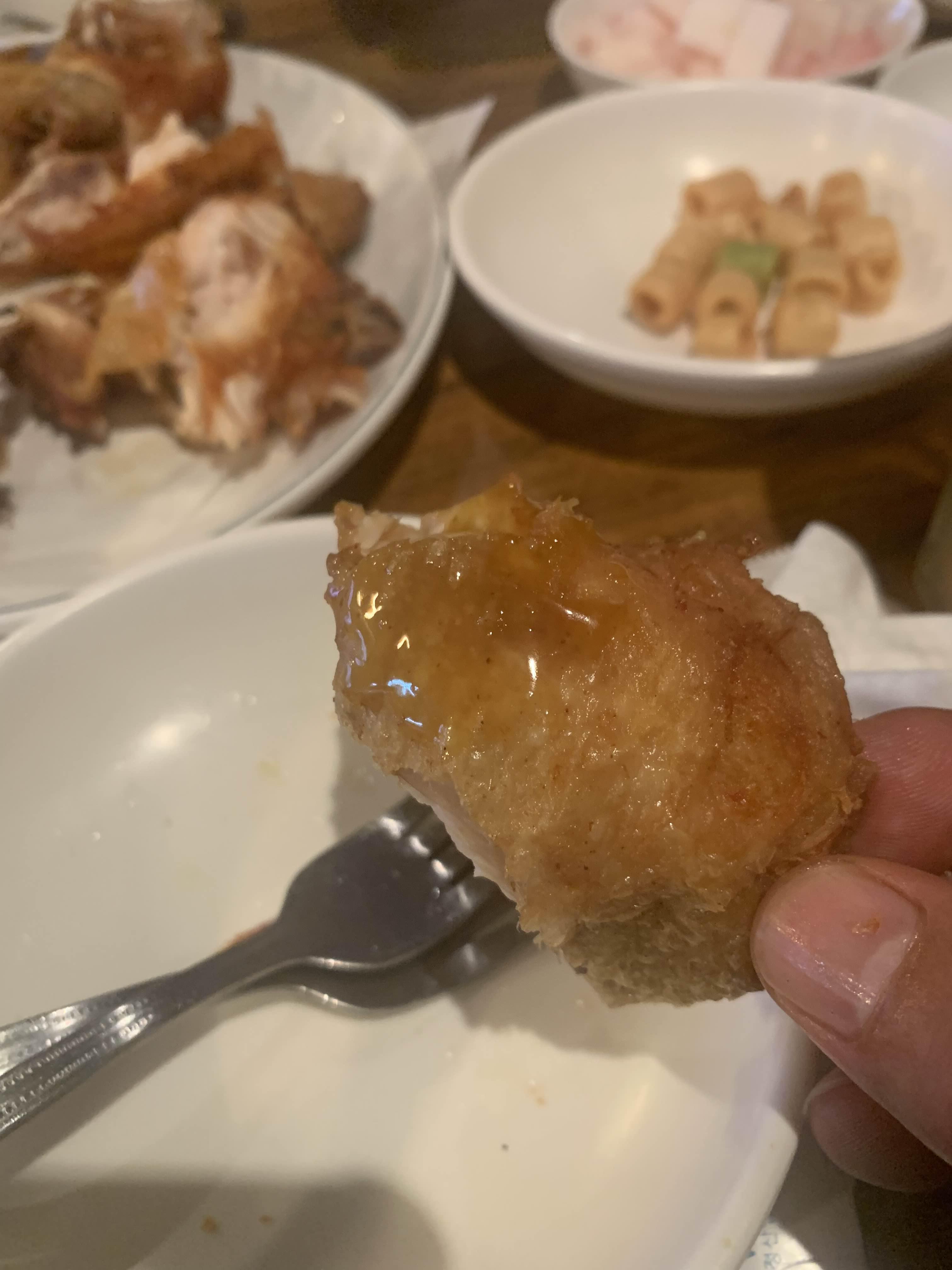 치킨의 닭고기가 싱싱한지 확인하려면.... 뭐니 뭐니 해도 닭뼈 상태를 보면 확인이 가능하죠! 싱싱한 닭뼈는 하얀색이 보이는데... 이 치킨집 닭뼈는 싱싱한 하얀 뼈가 보이더군요. 싱싱한 닭은 기름에 어떻게 튀기는 맛이 좋죠. 더욱이 가마솥에 튀기면 더 맛이 좋죠.