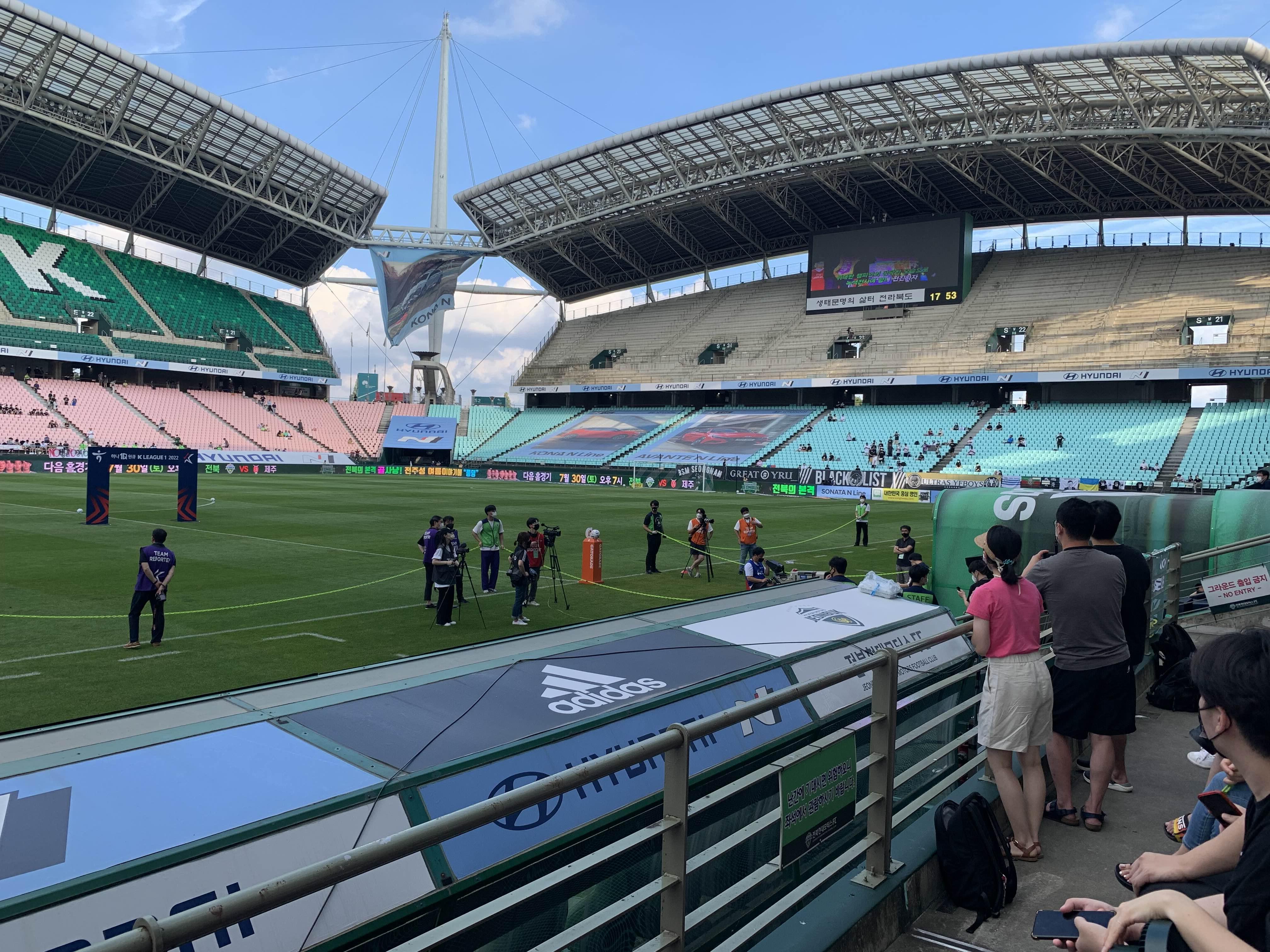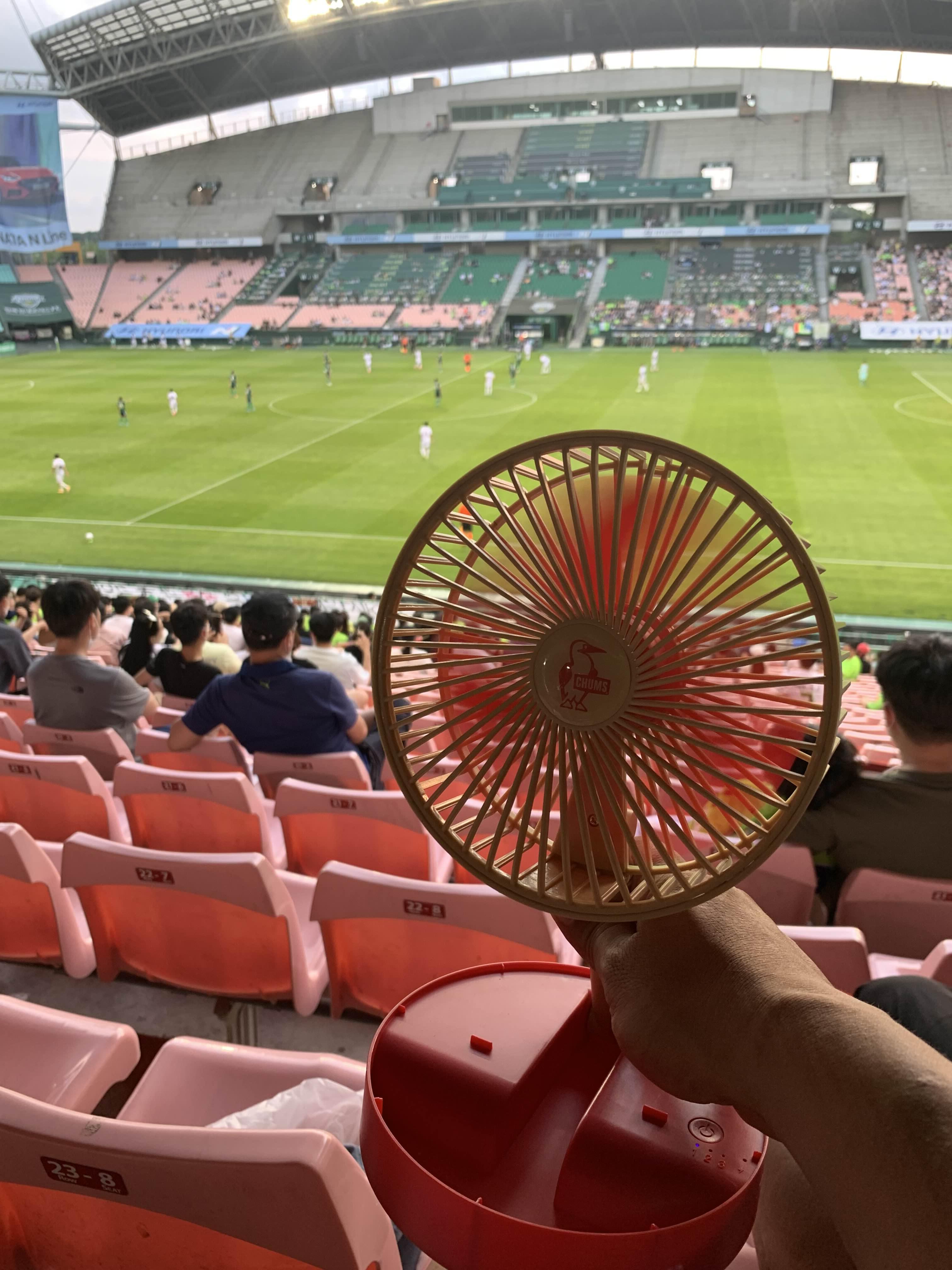 휴대용 선풍기를 가장 잘 사용할 장소는 휴가지가 아닌 여름 축구장!!! 무더운 여름 축구경기는 땀이 주르륵!! 더욱이 축구장 N석이 좌석이라면 더더욱 선풍기가 필요하죠. 그래서 던킨에서 구매한 휴대용 선풍기를 가지고 축구장에 향했습니다.