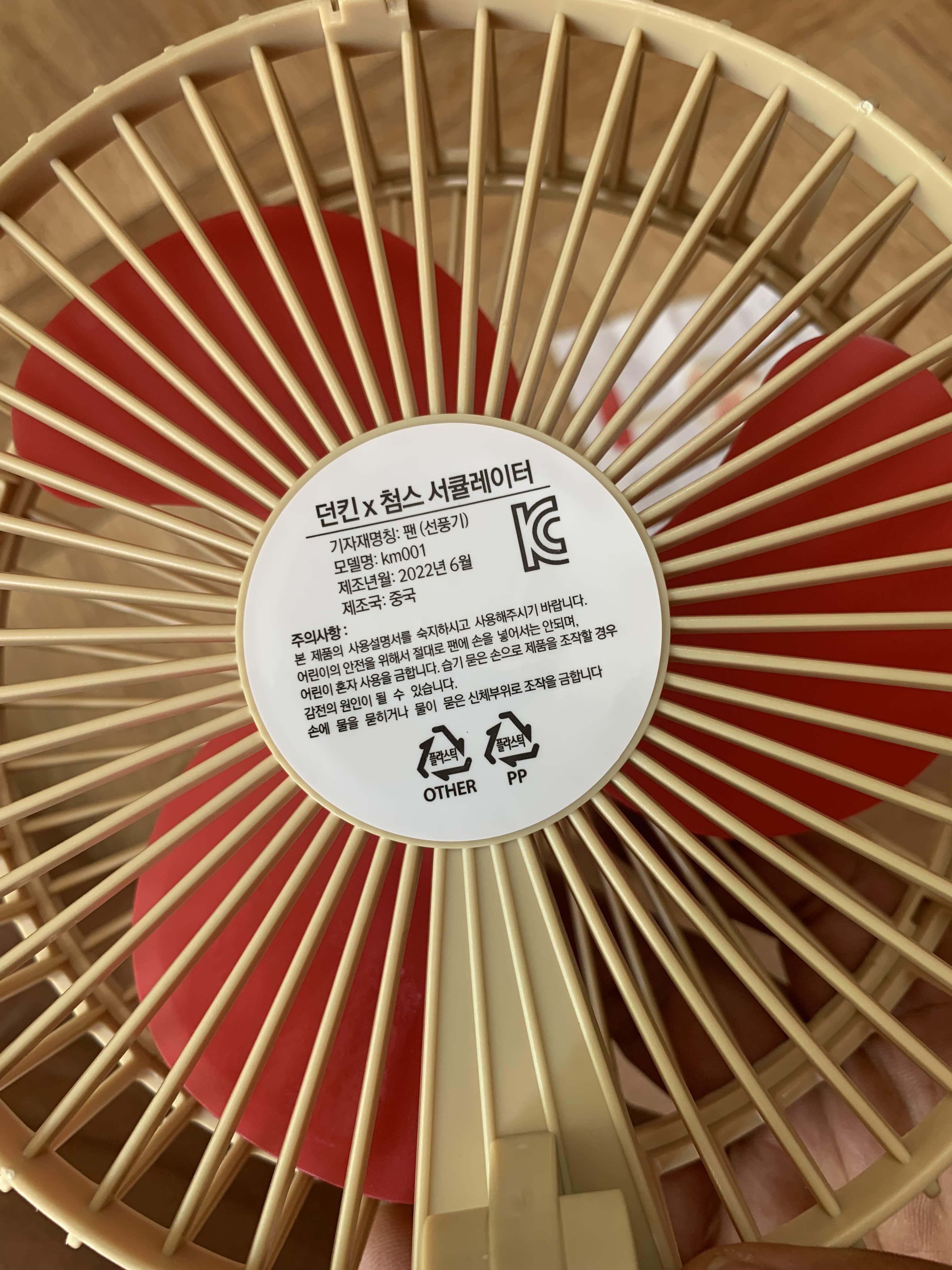 아내가 휴대용 선풍기를 구매했습니다. 던킨도너츠에서 12,000원 이상 구매 시 증정용으로 지급하는 선풍기가 아닌!!! 일정 금액 구매한 고객을 상대로 선풍기를 구매할 수 있다 하여 구매했다고 하더군요.ㅎㅎ